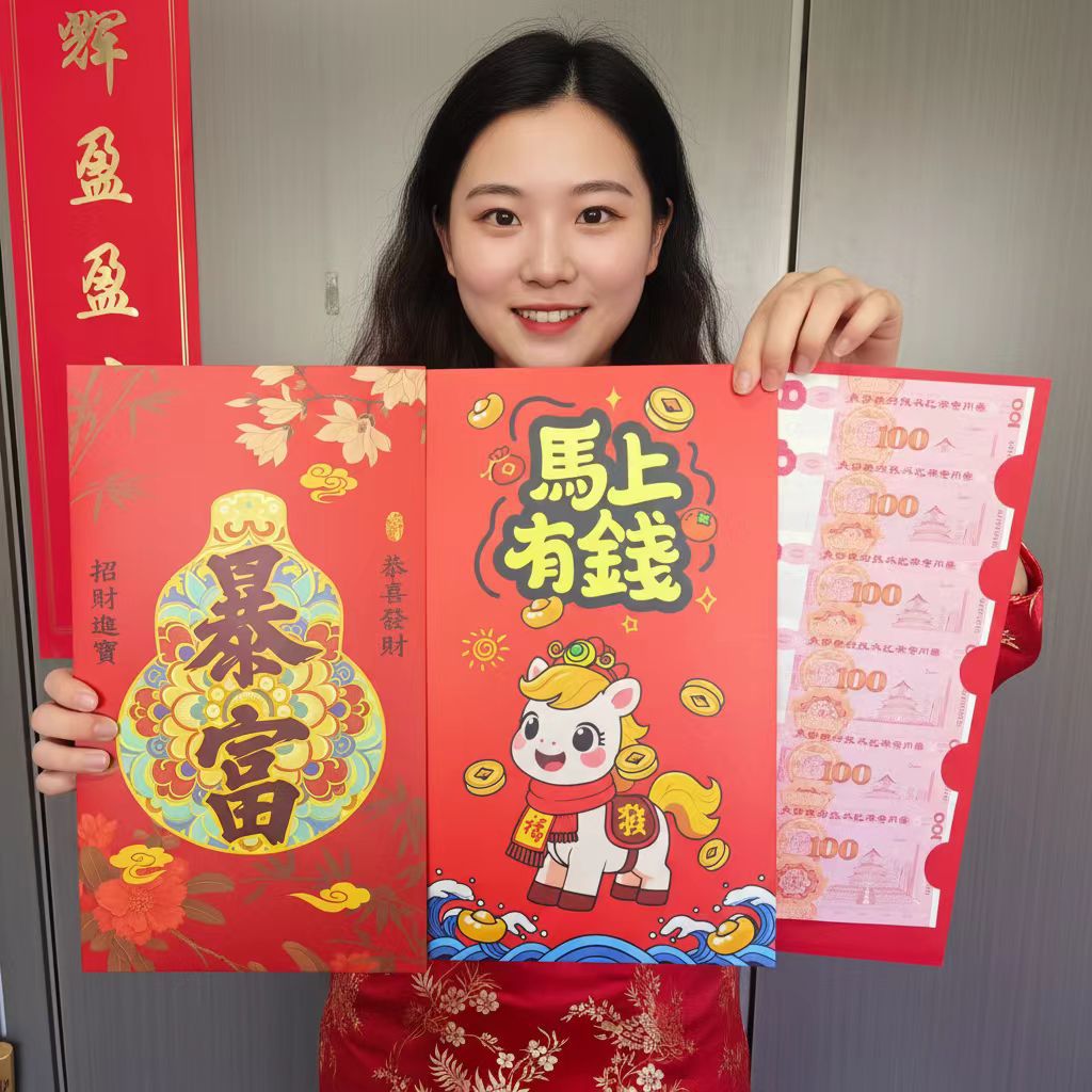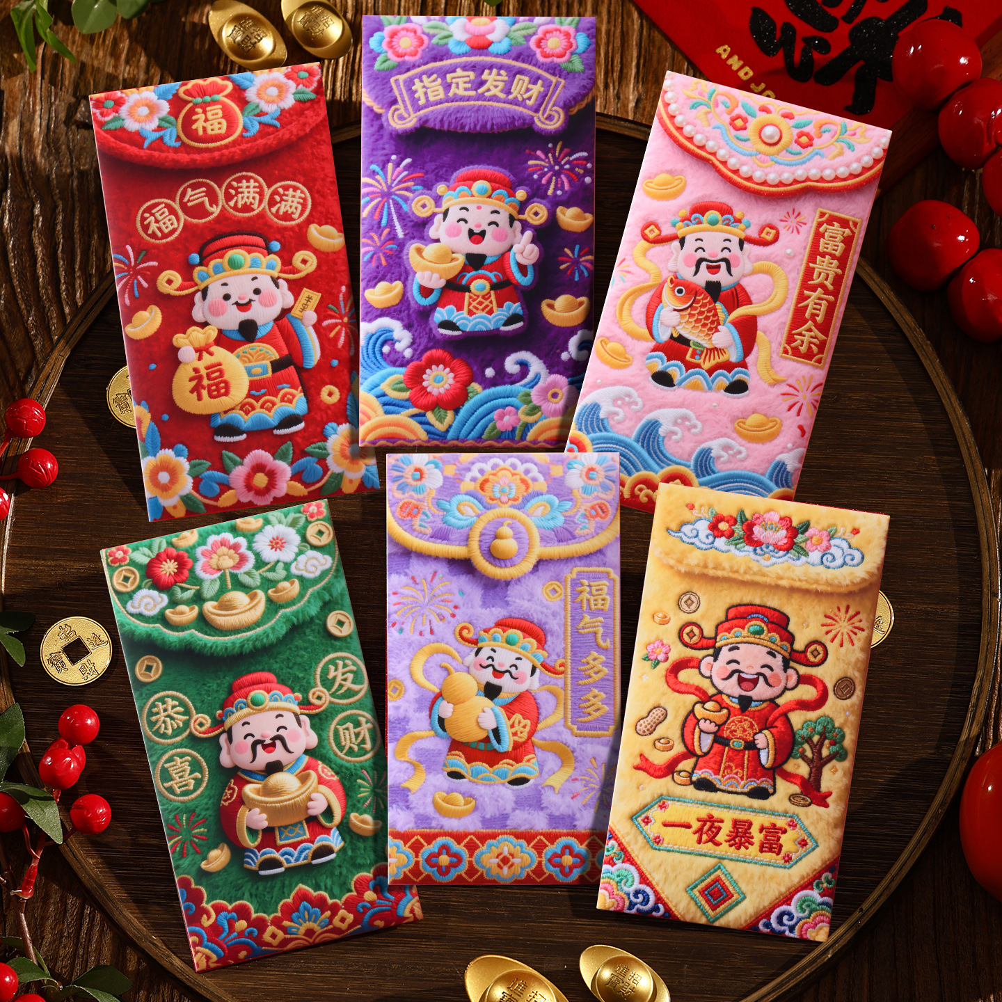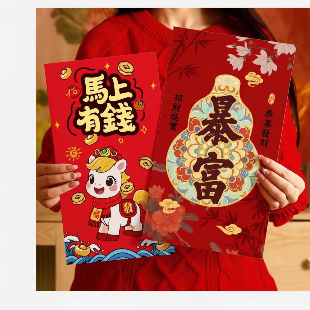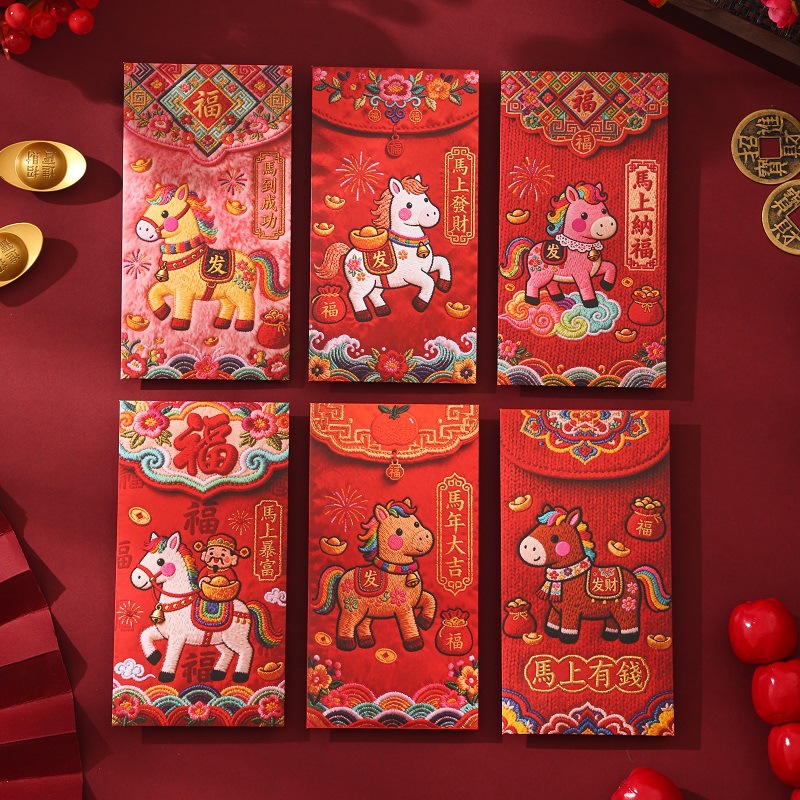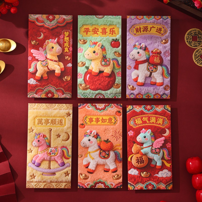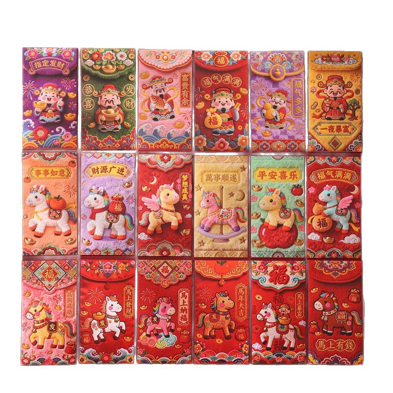 抖音爆款马年新年红包国风立体刺绣小马卡通3D效果红包过年红包
