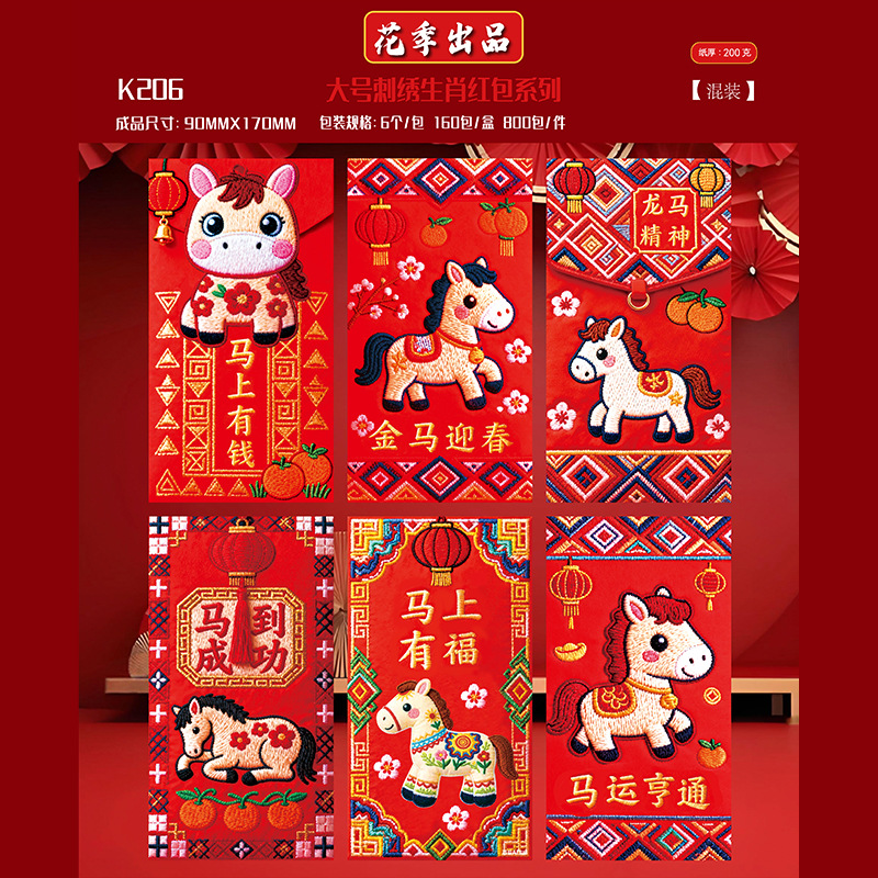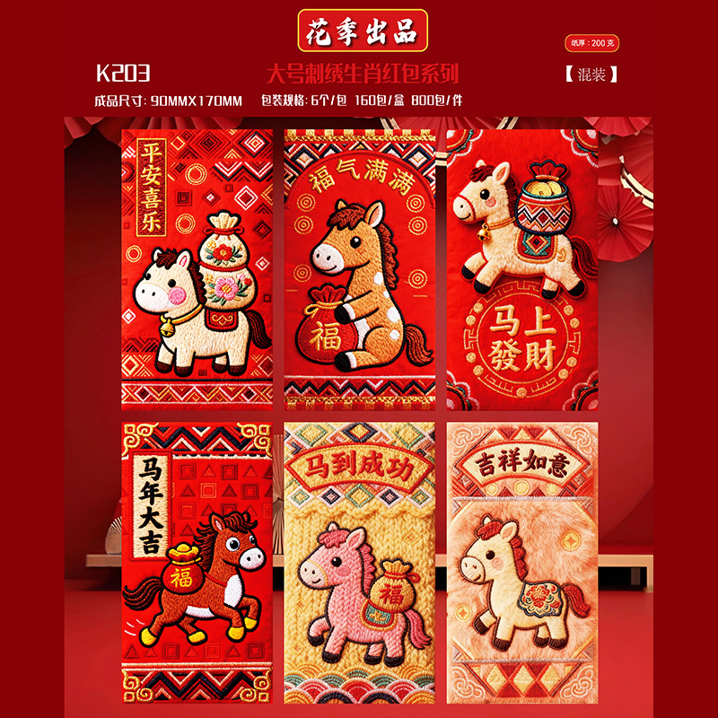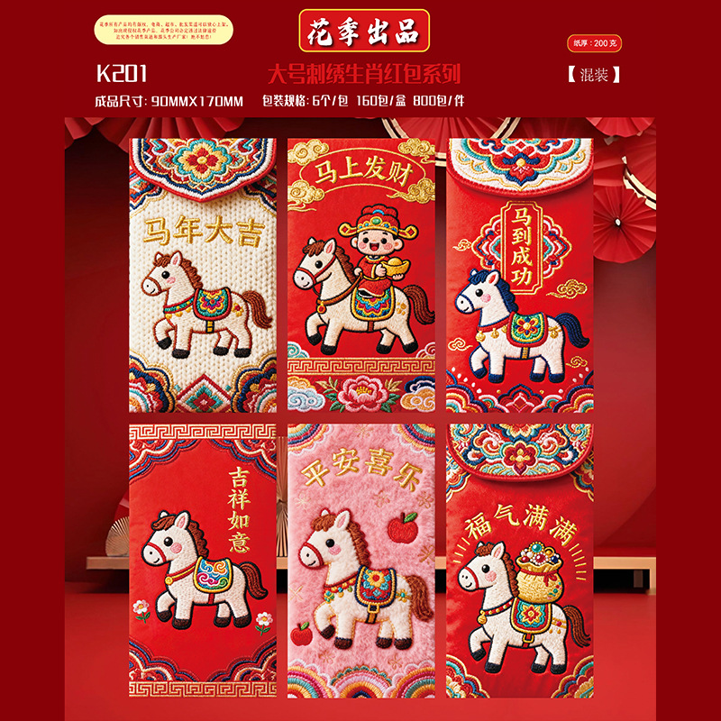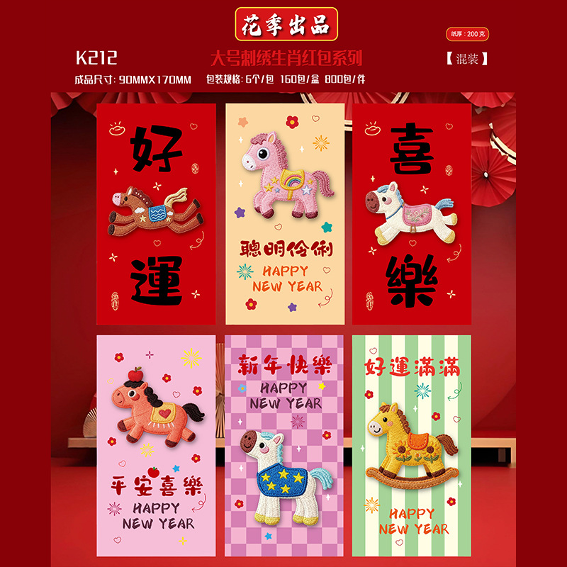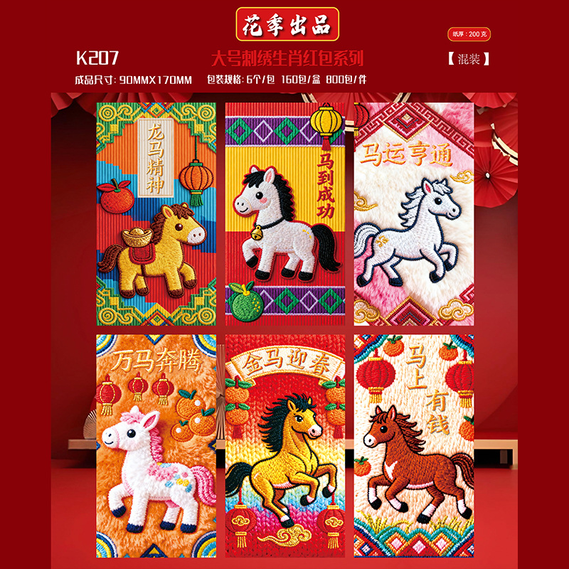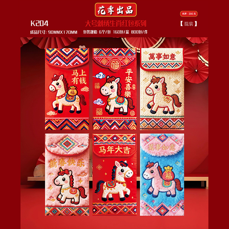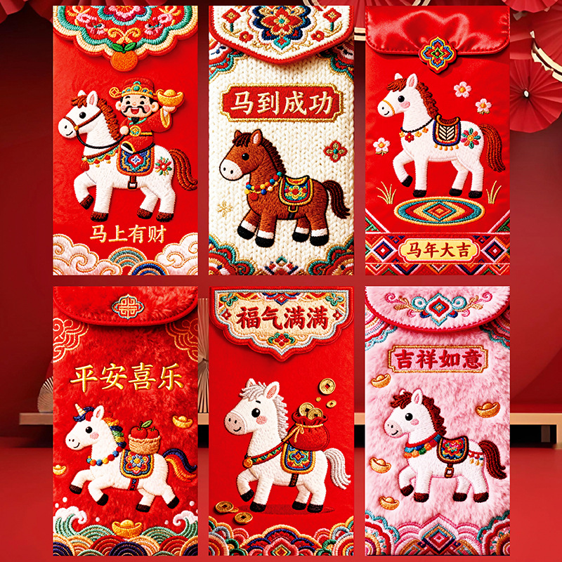 花季厂家2026马年红包 创意仿真刺绣平面5D卡通红包袋 压岁红包