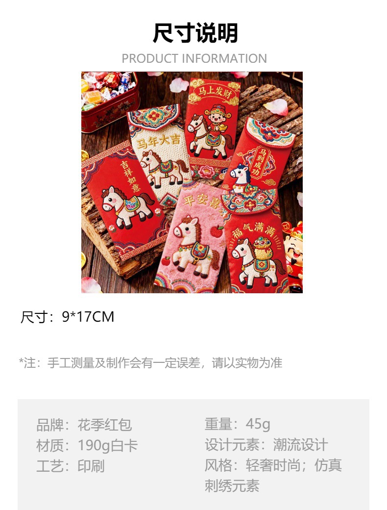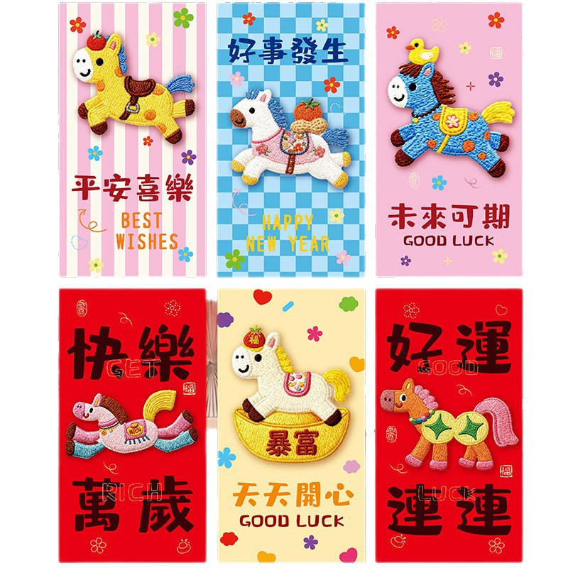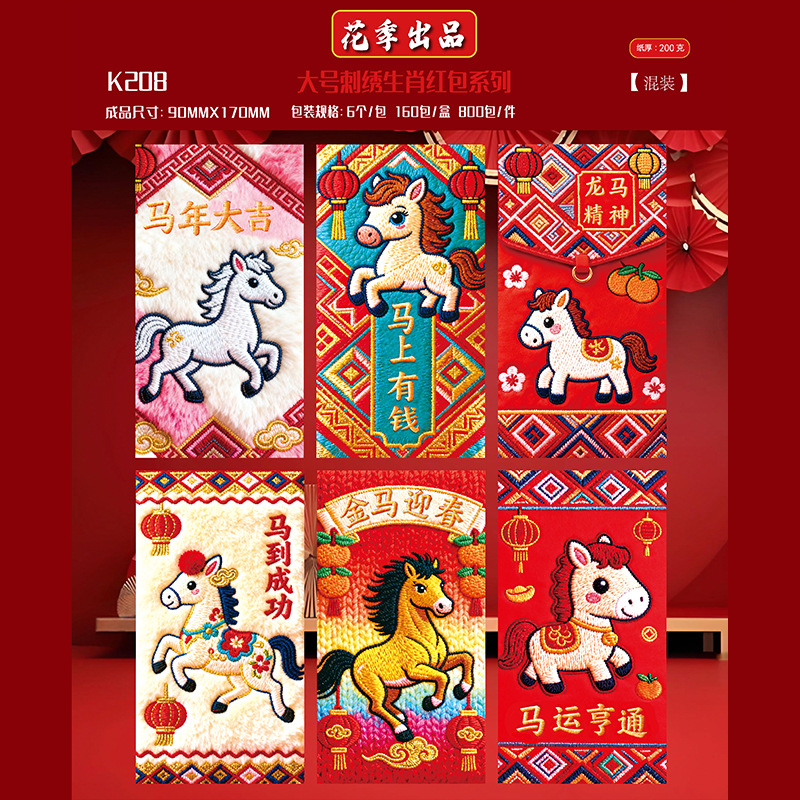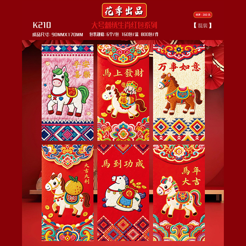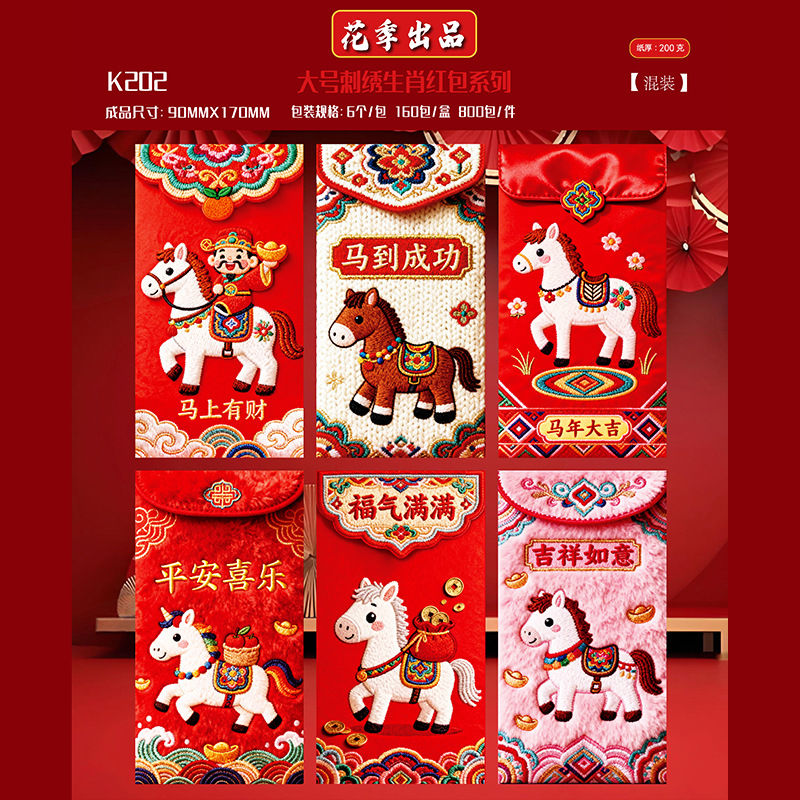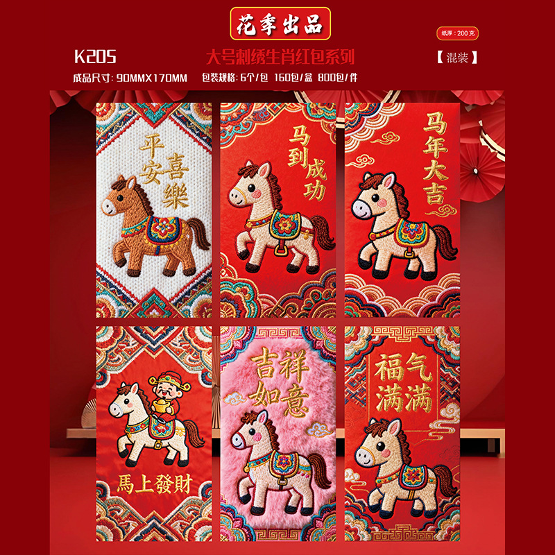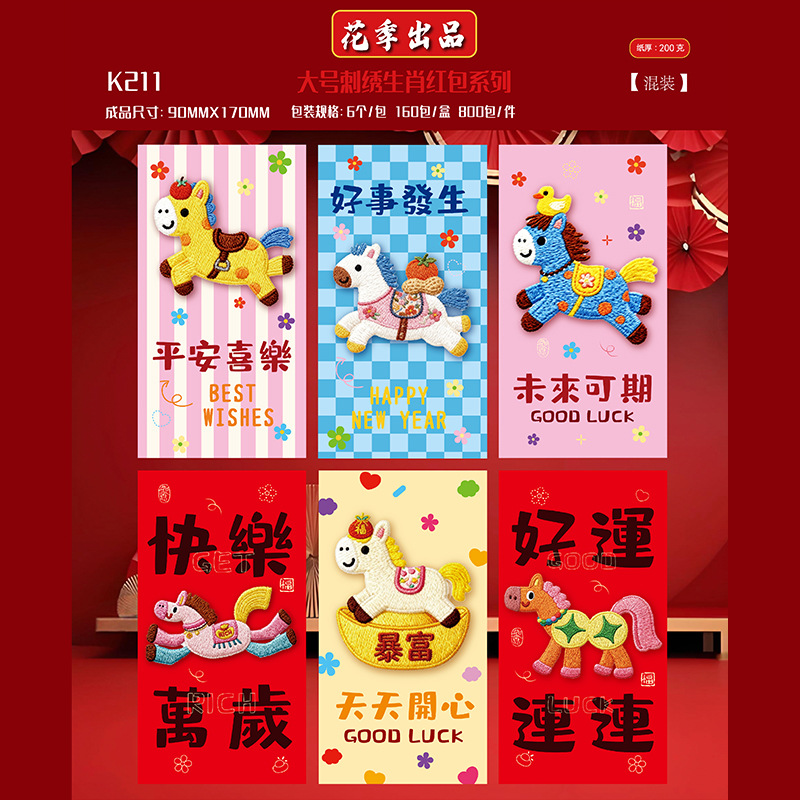 花季厂家2026马年红包 创意仿真刺绣平面5D卡通红包袋 压岁红包