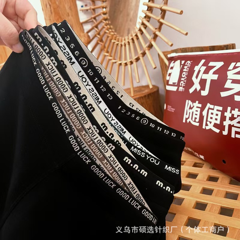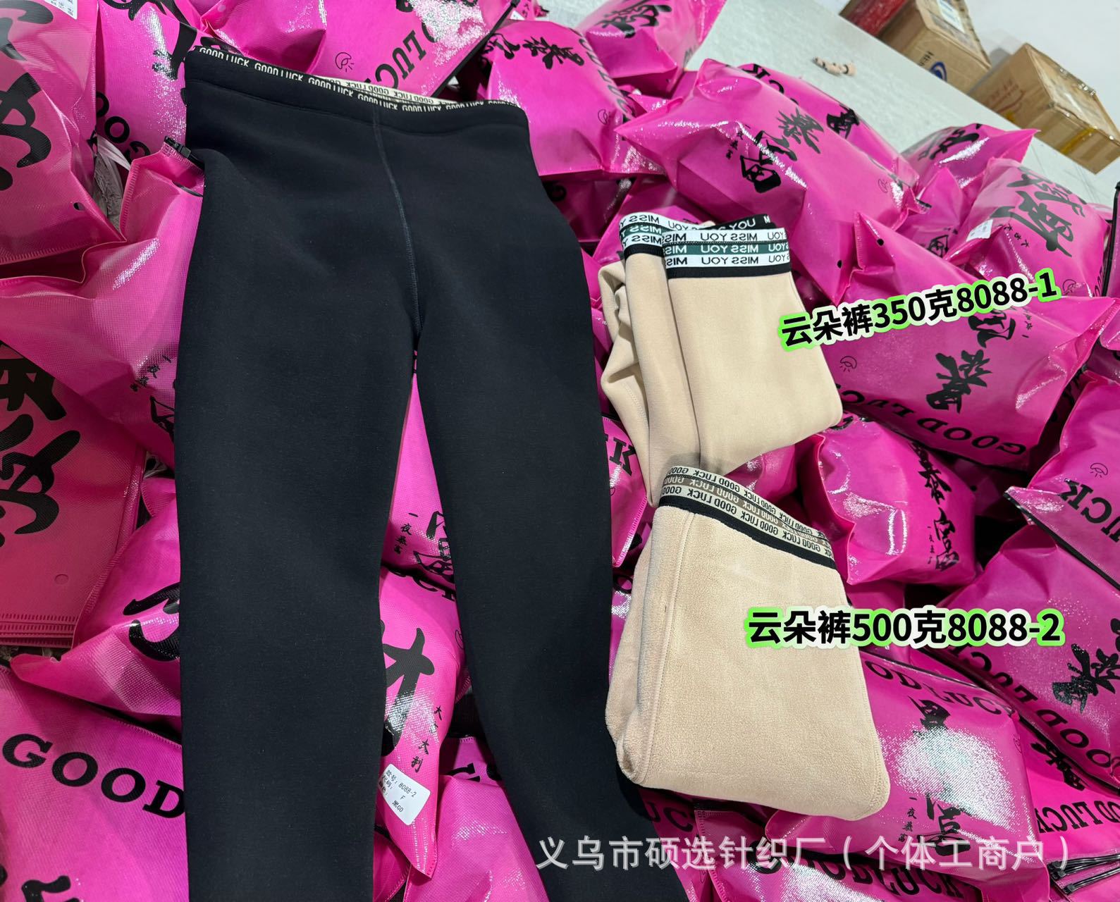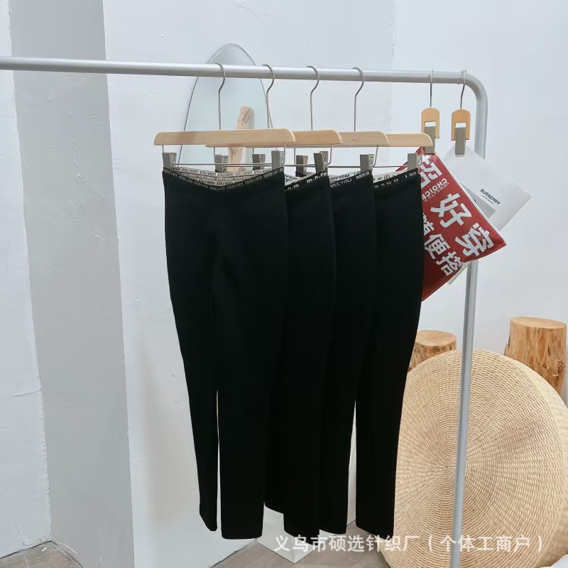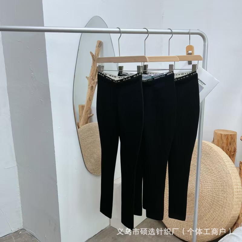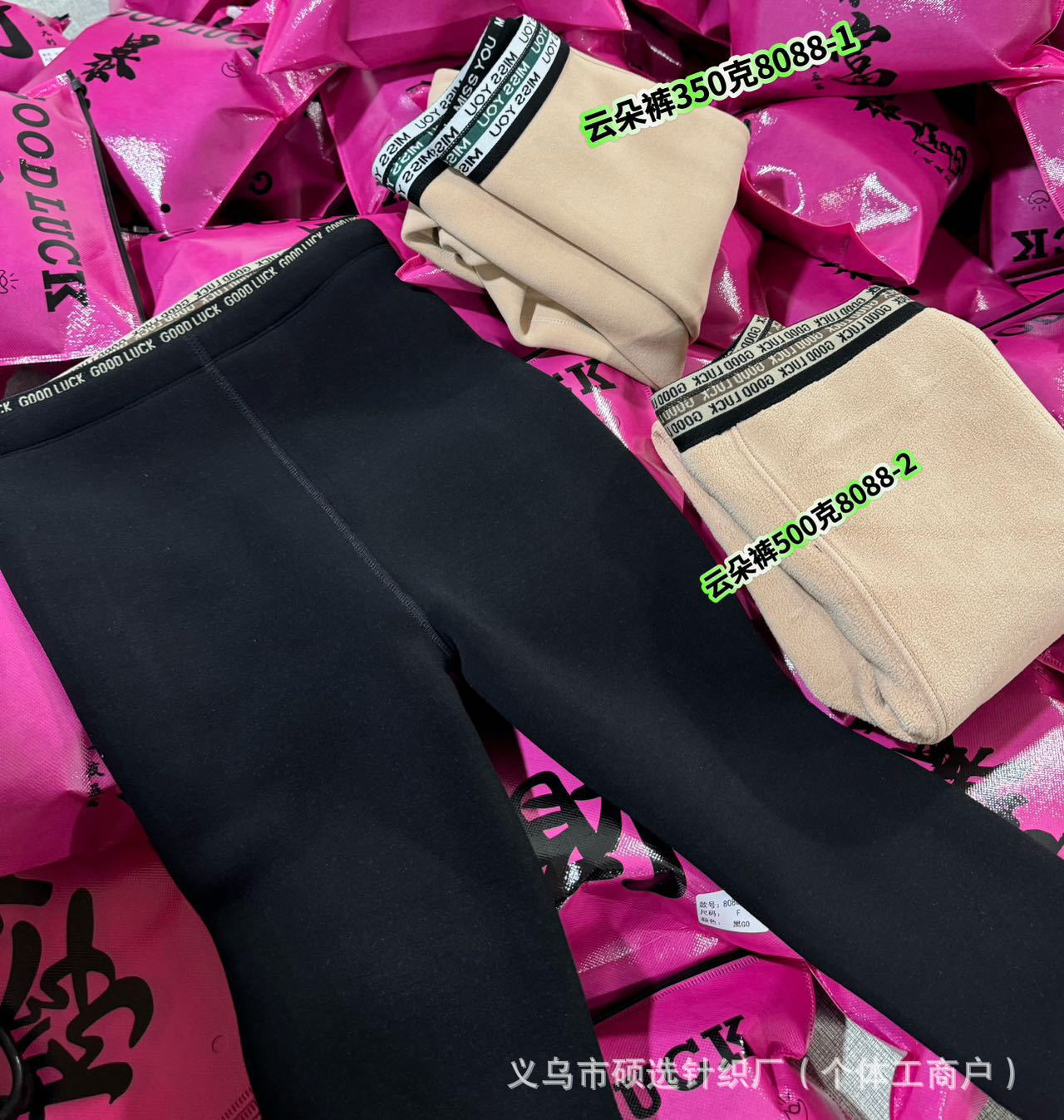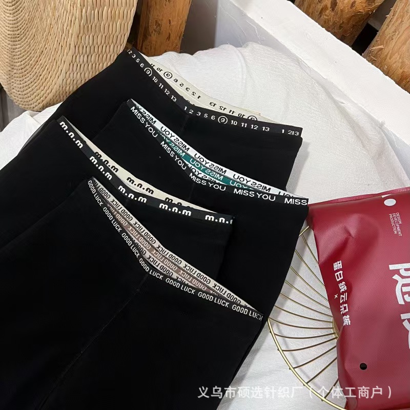 云朵裤黑色字母高腰加绒保暖紧身打底裤女款秋冬外穿小黑裤子九分