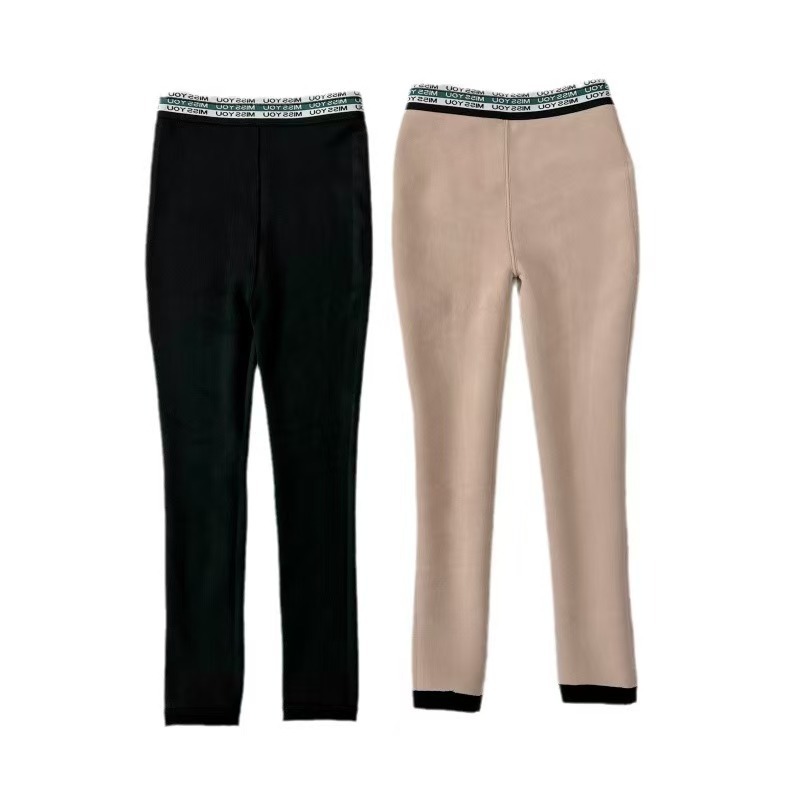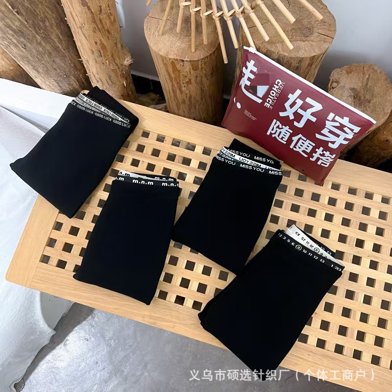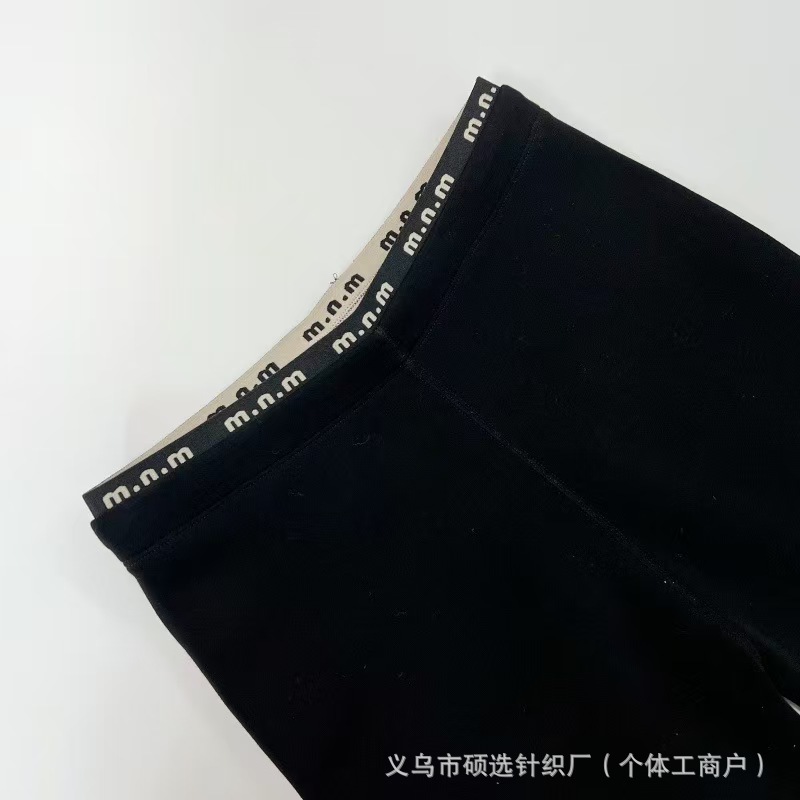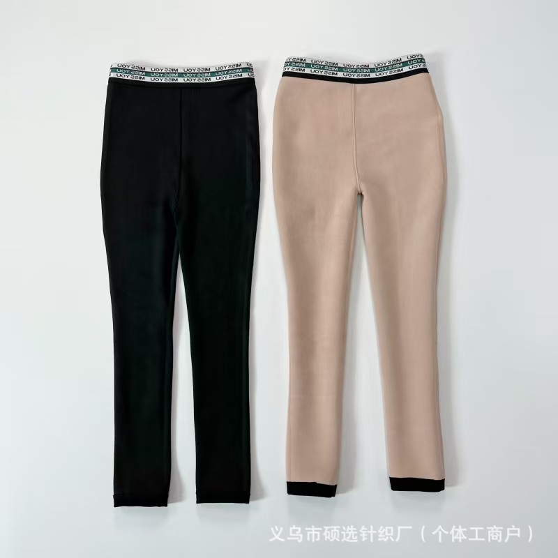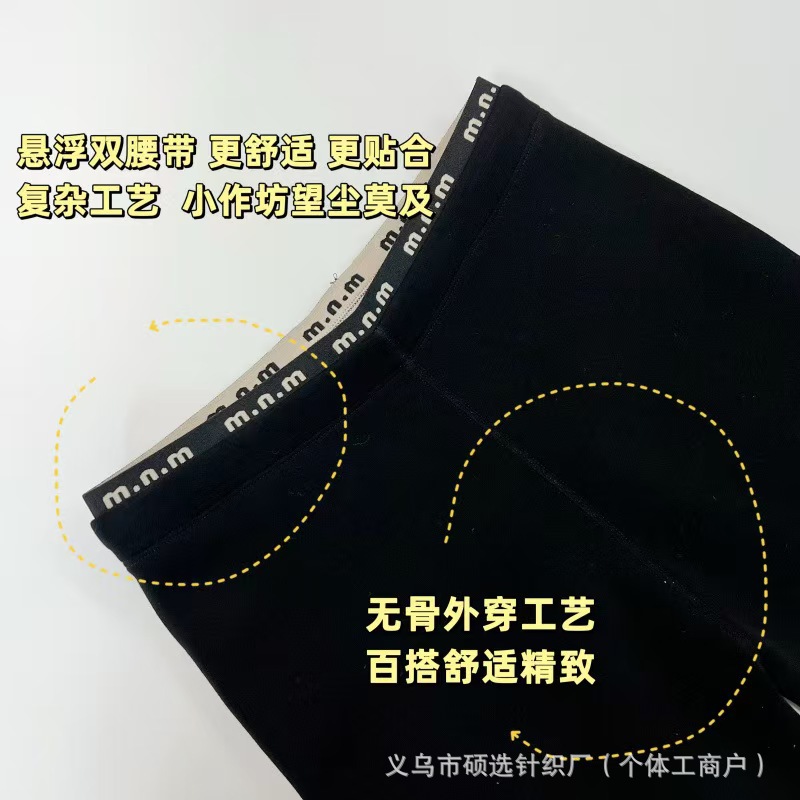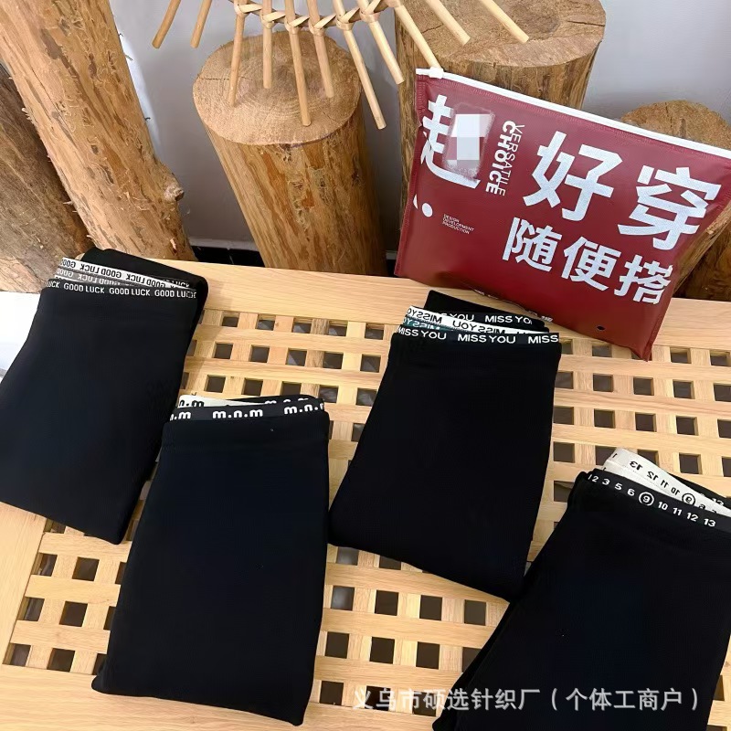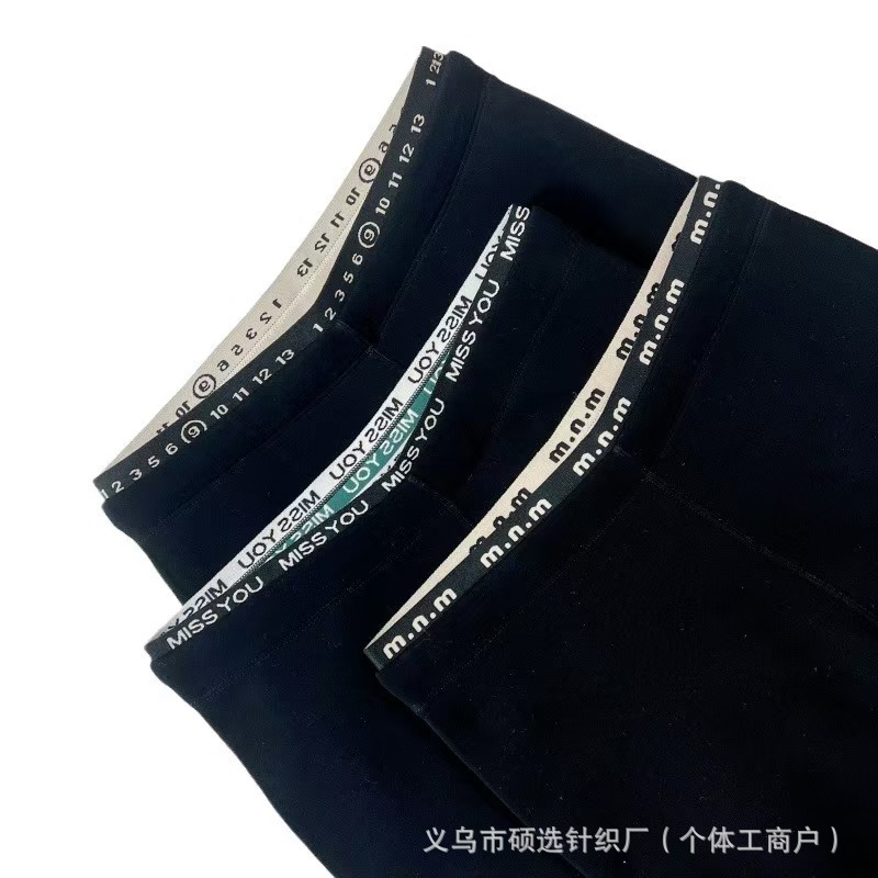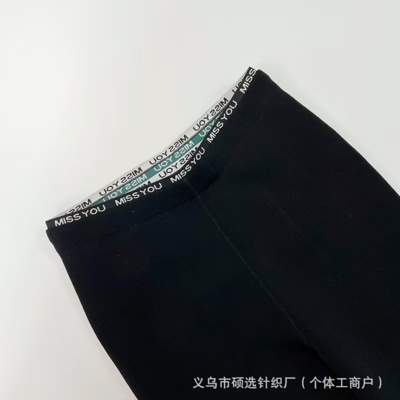 云朵裤黑色字母高腰加绒保暖紧身打底裤女款秋冬外穿小黑裤子九分