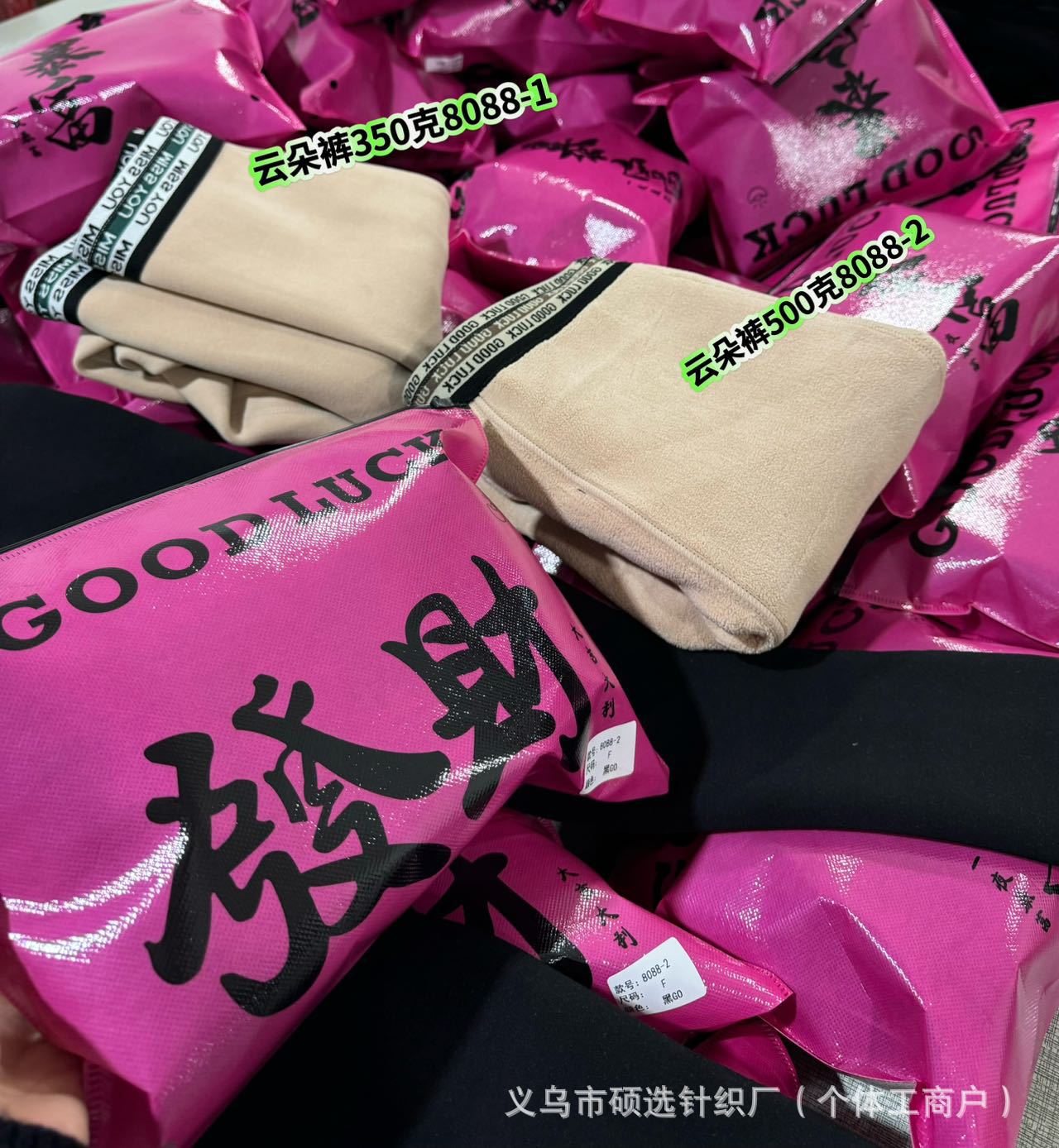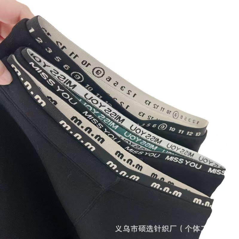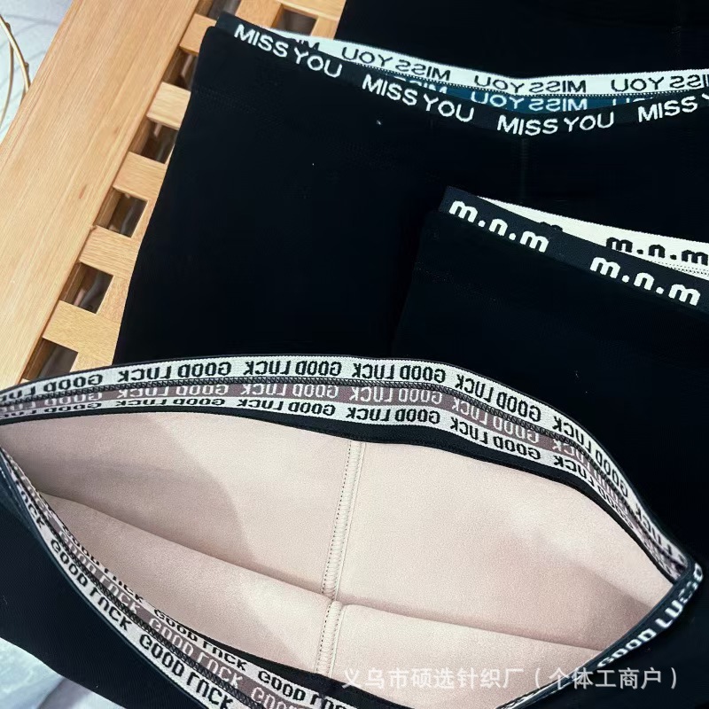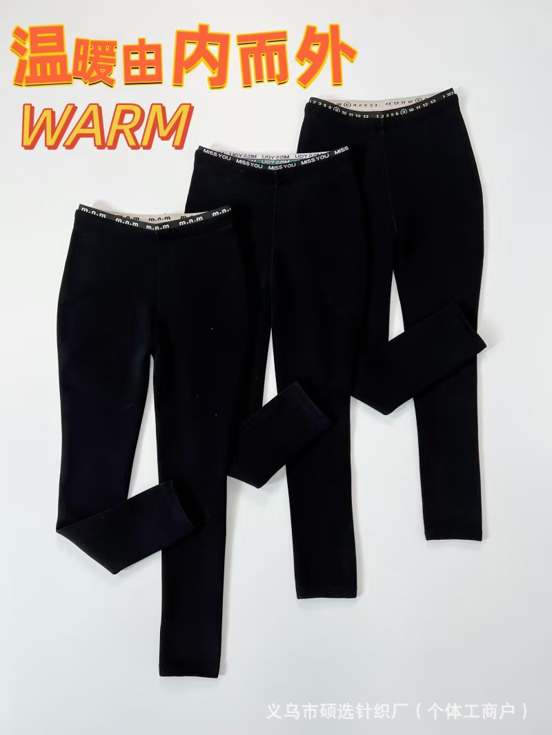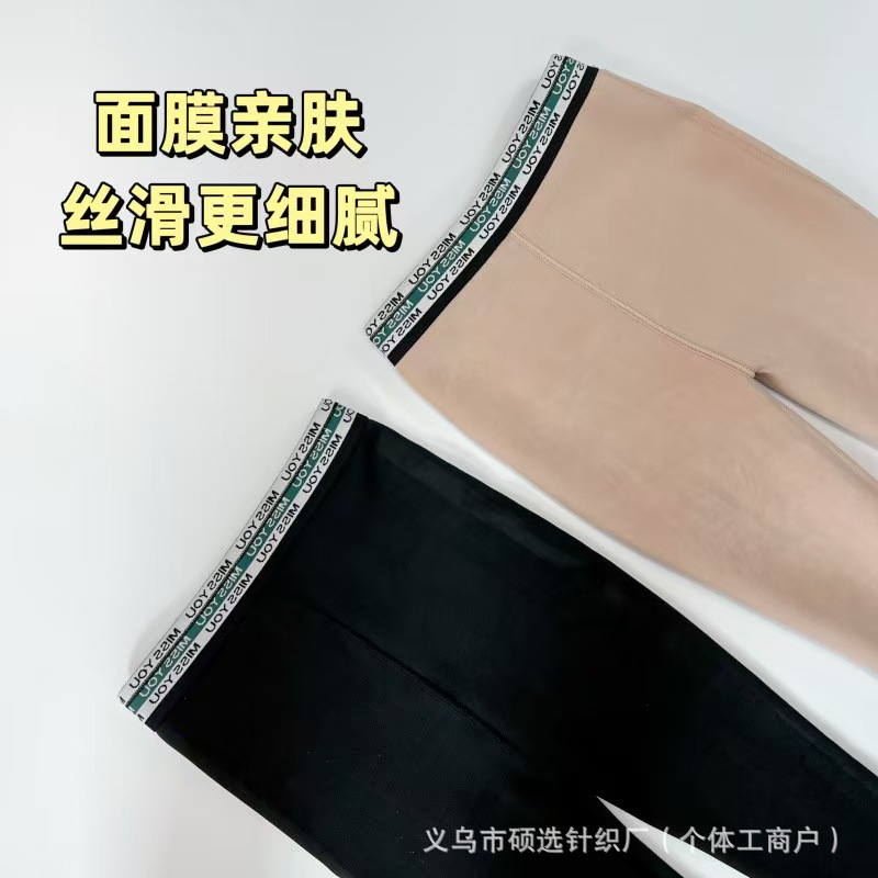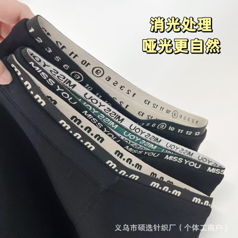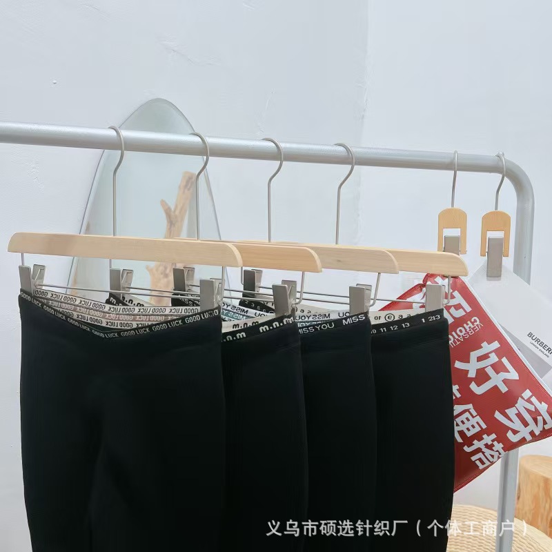 云朵裤黑色字母高腰加绒保暖紧身打底裤女款秋冬外穿小黑裤子九分
