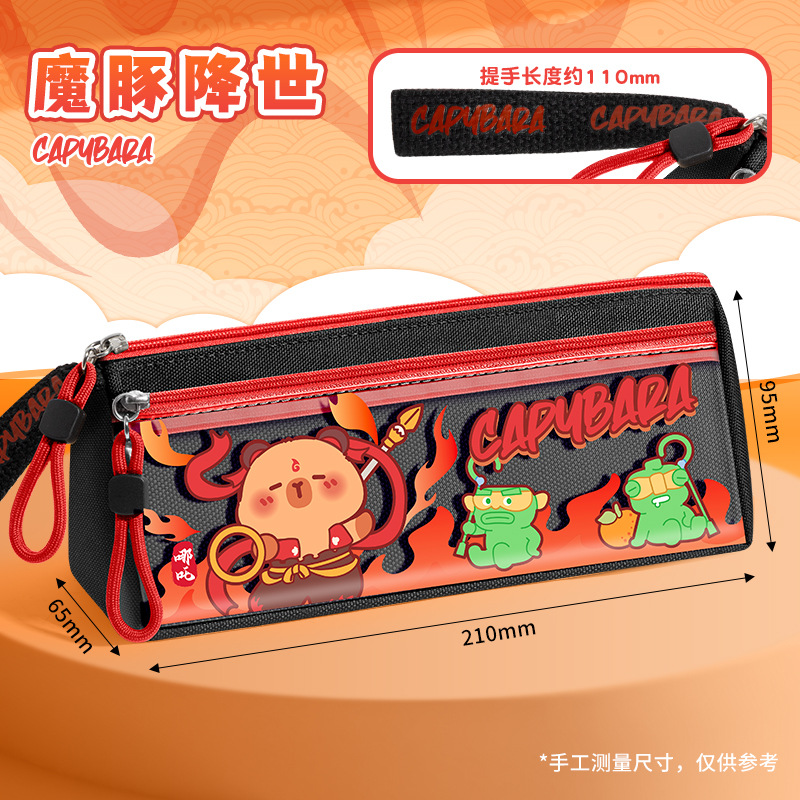 咔巴熊三角卡通笔袋一年级大容量前袋透明可视窗可爱手提文具盒