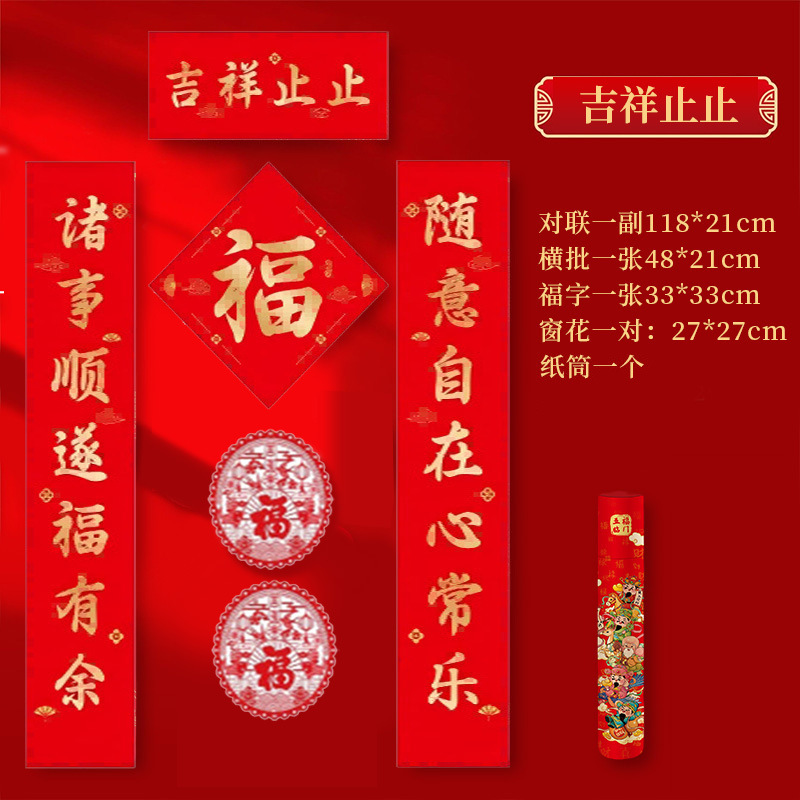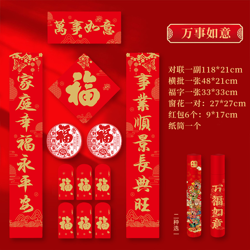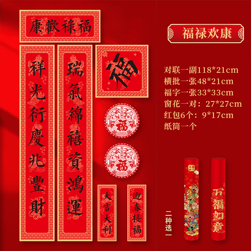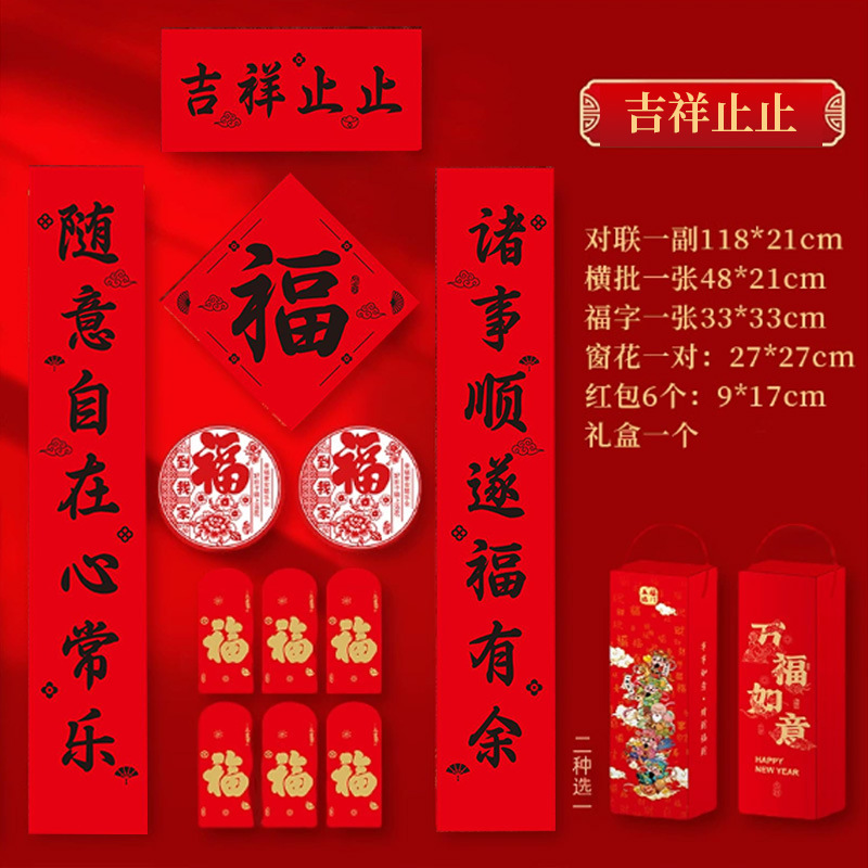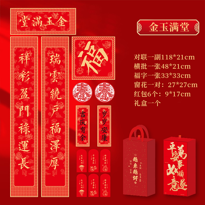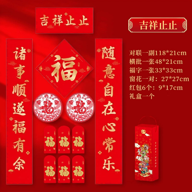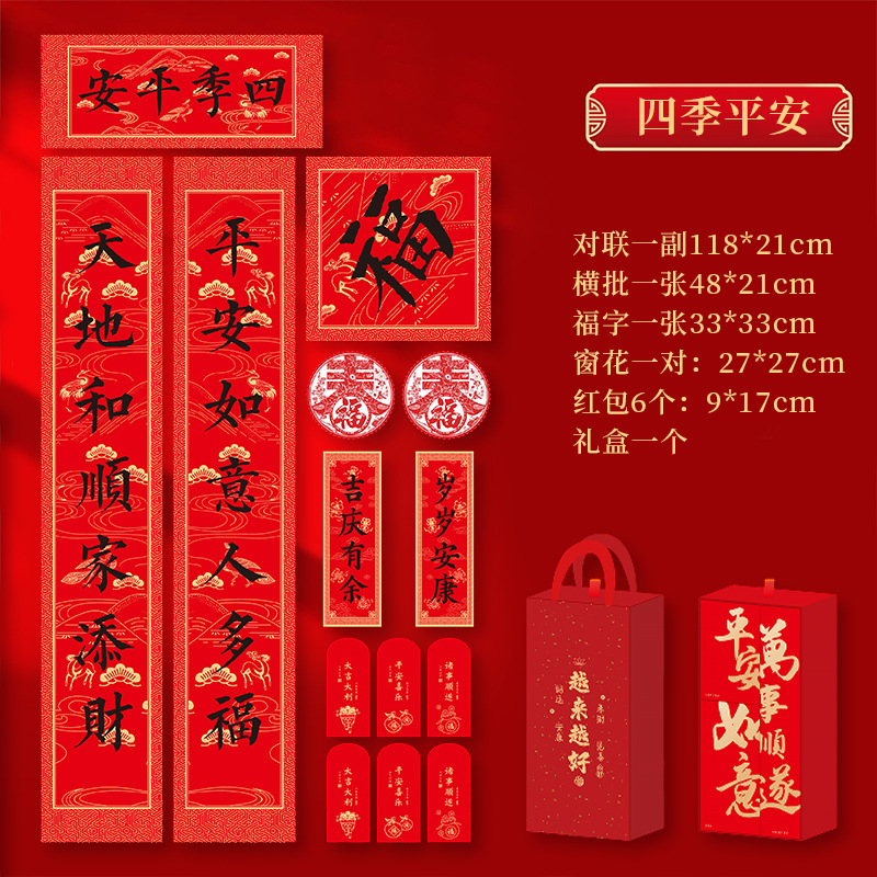 2026对联定制大礼包国风丝印手工异形春联礼盒套装植绒挂抽印广告