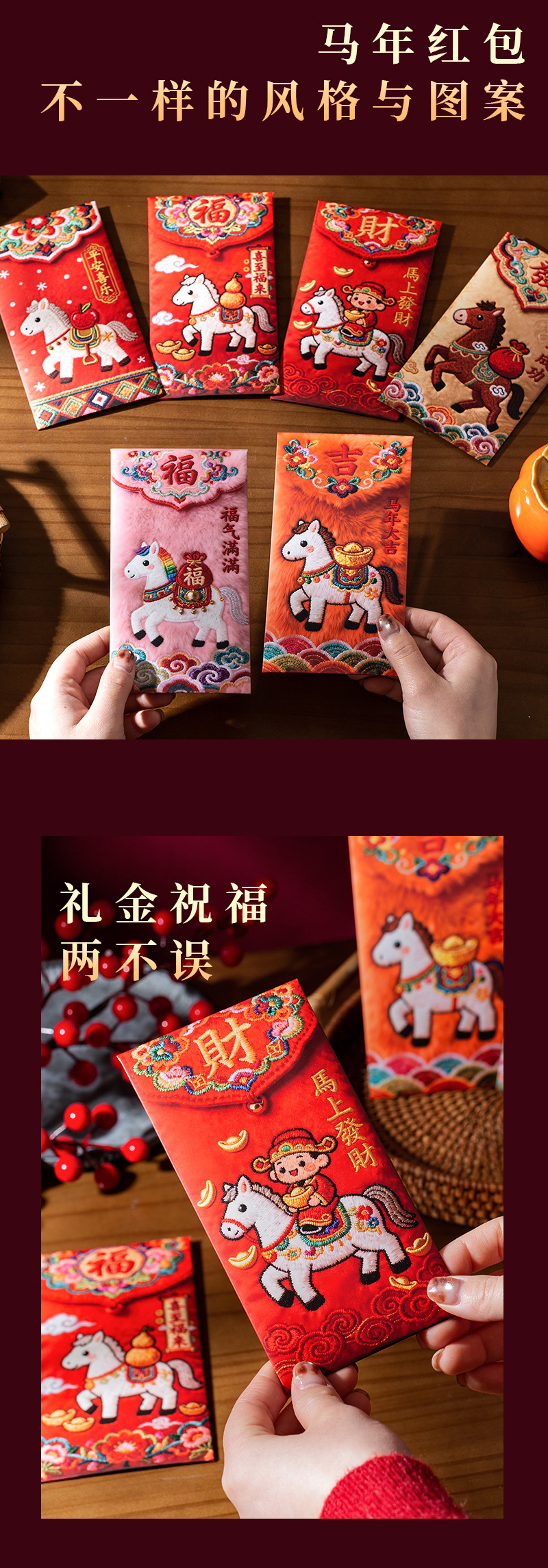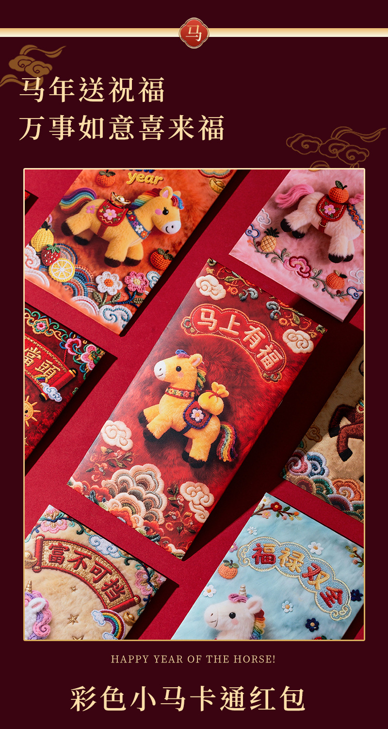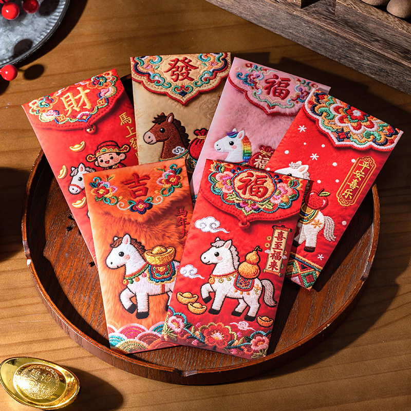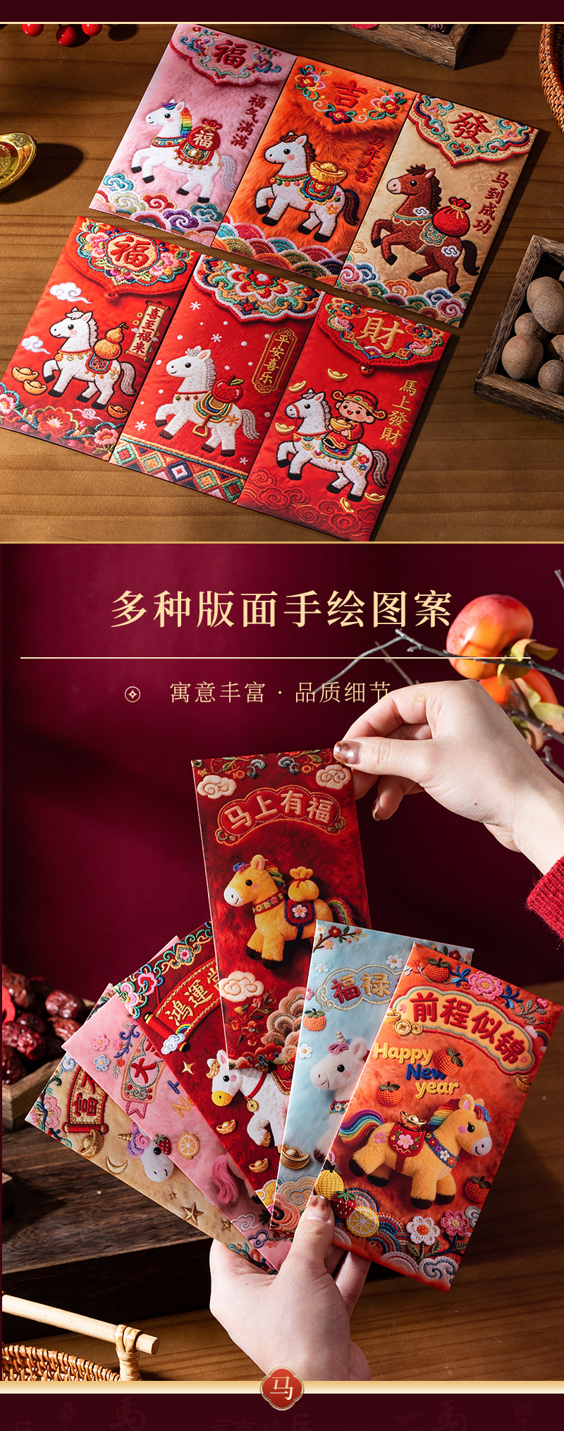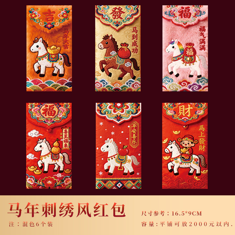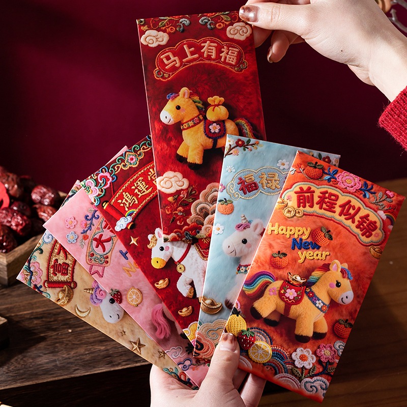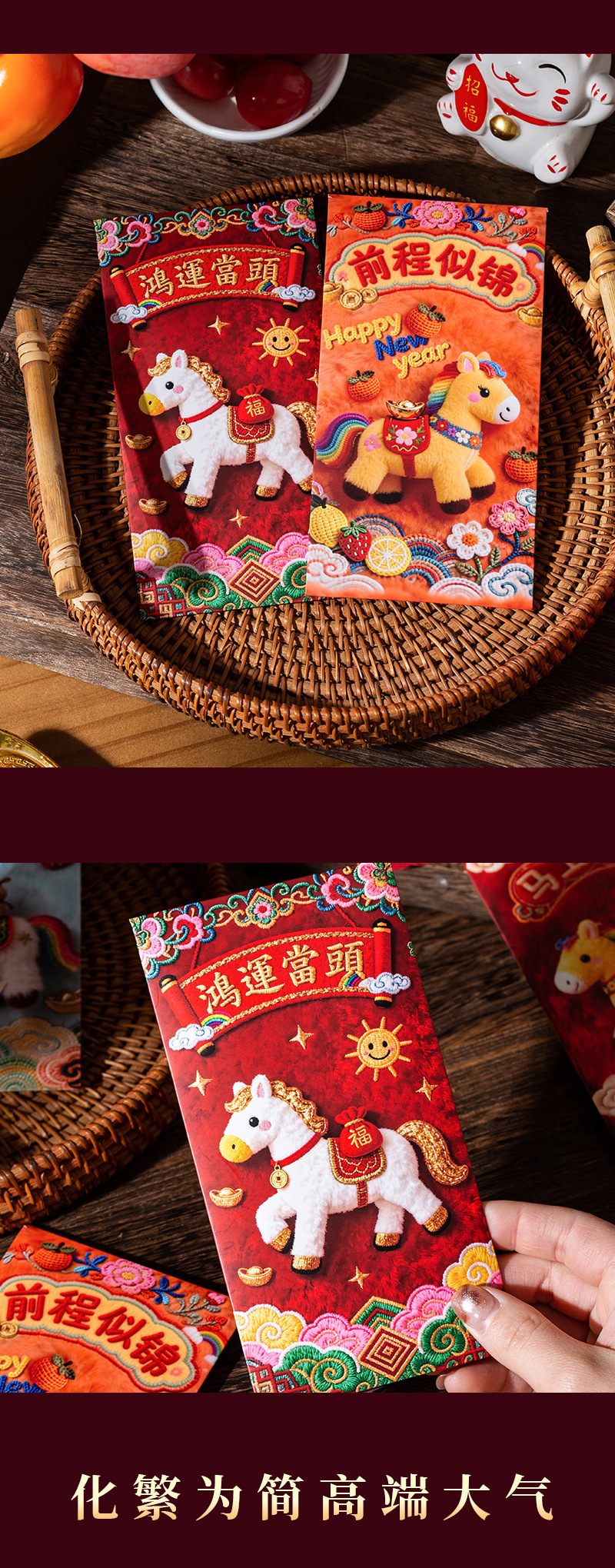 2026马年红包仿真立体刺绣毛绒卡通新年红包创意过年利是封红包袋