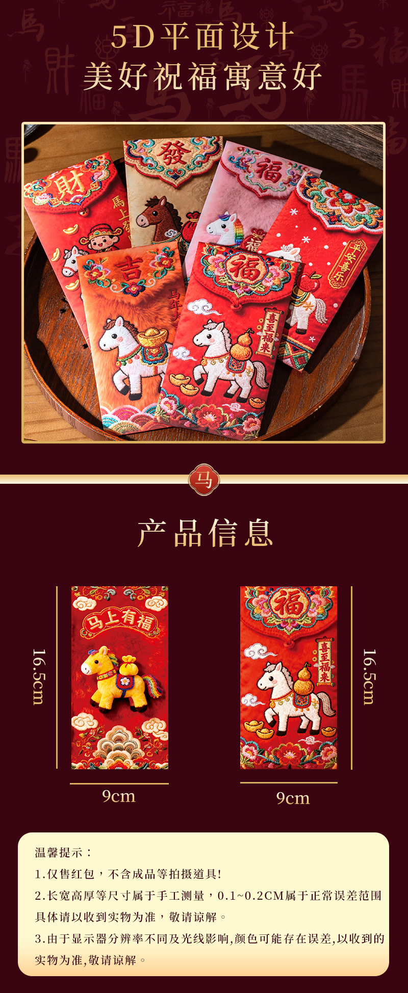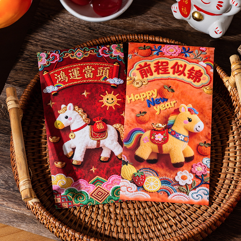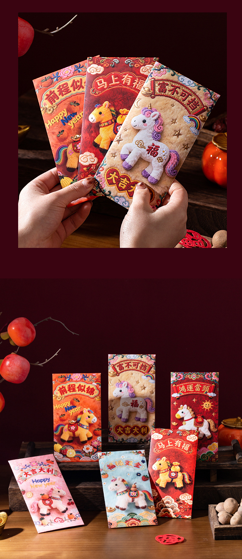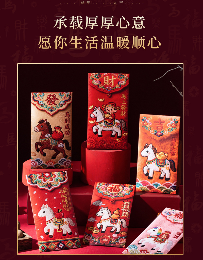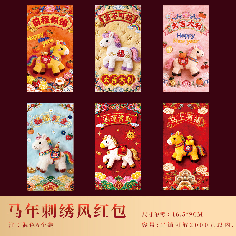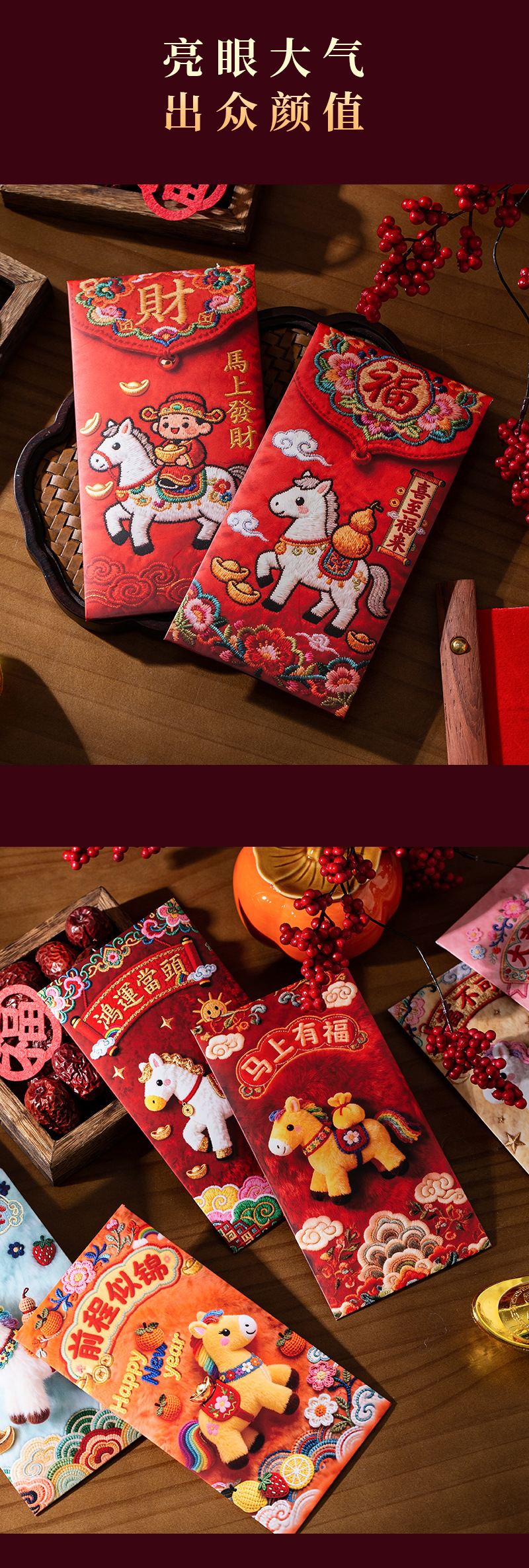 2026马年红包仿真立体刺绣毛绒卡通新年红包创意过年利是封红包袋