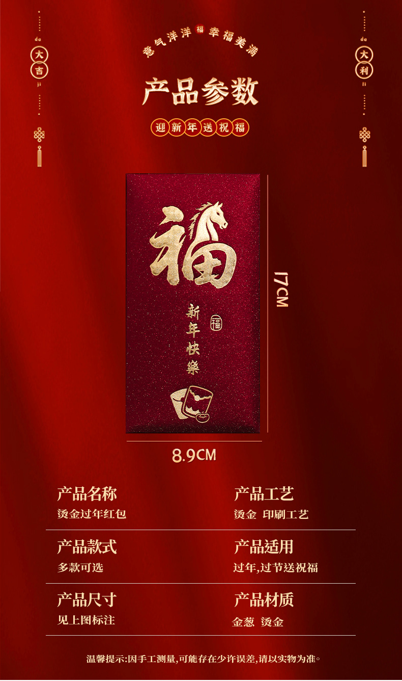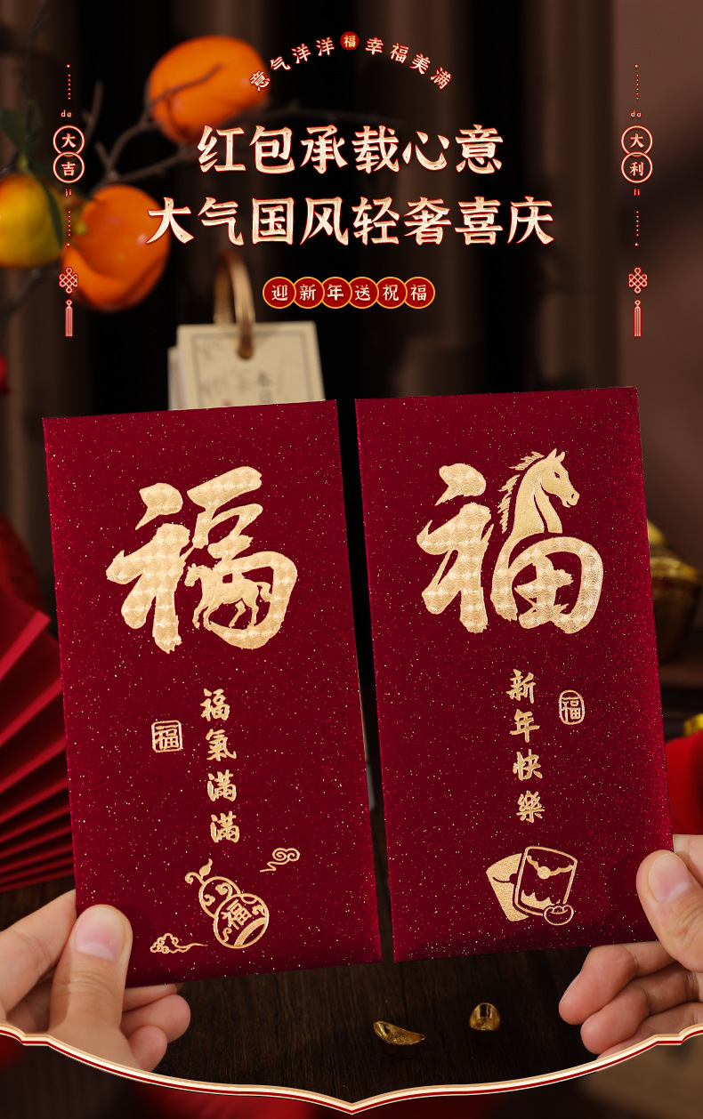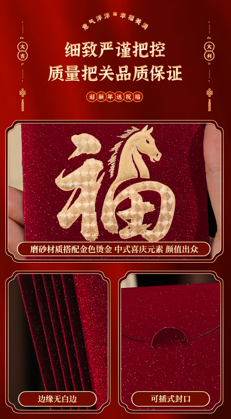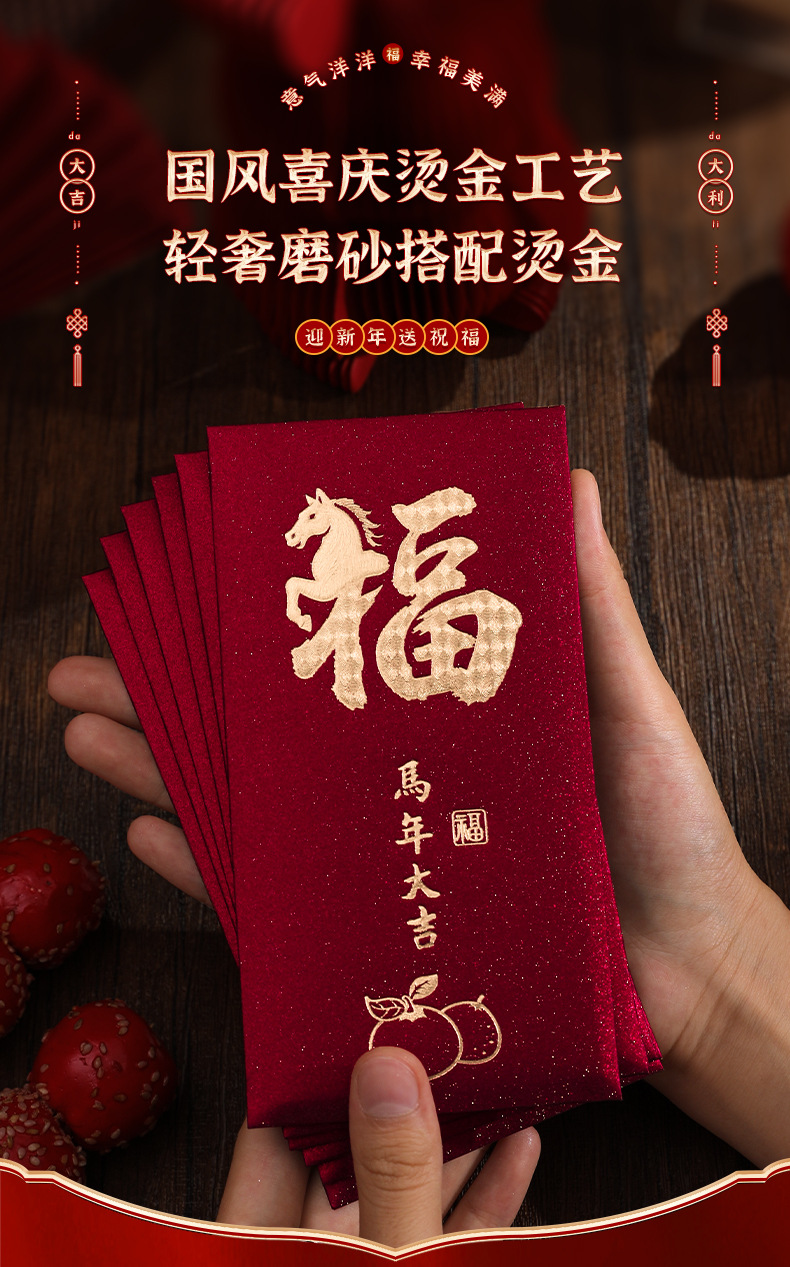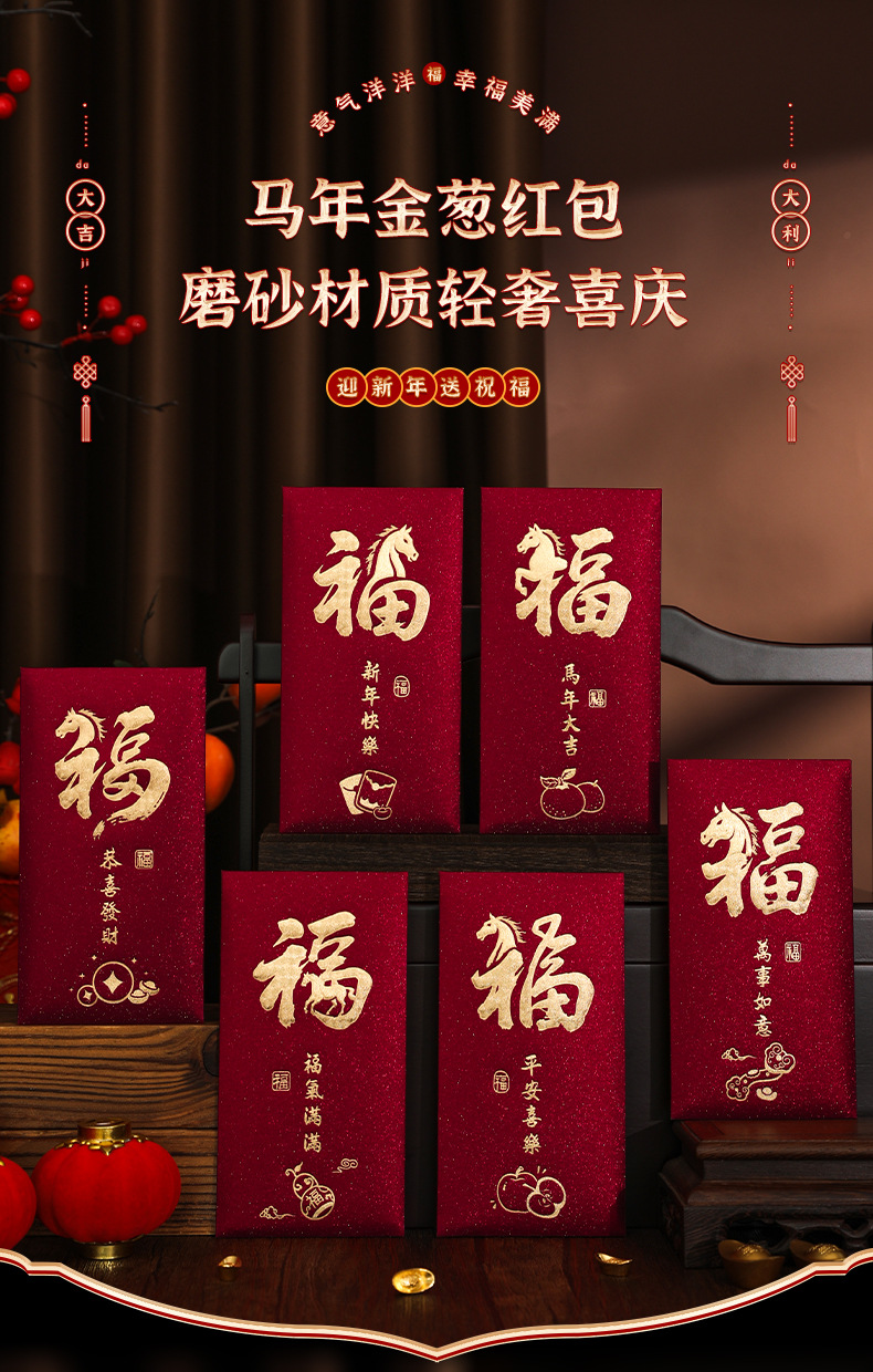 马年红包2026新款生肖春节通用中号红包袋金葱硬纸新年创意利是封