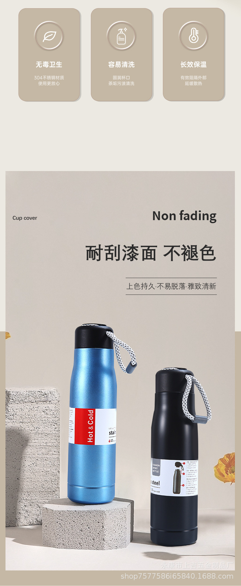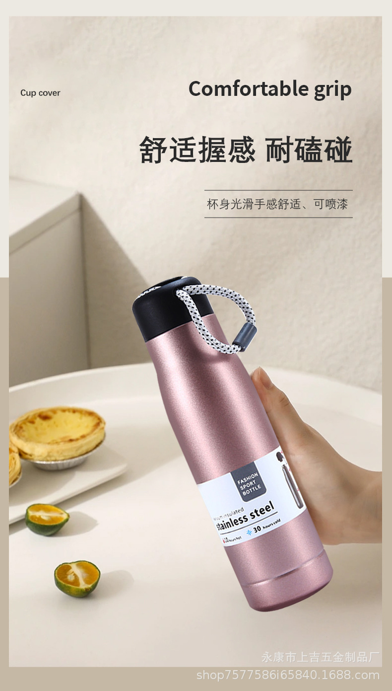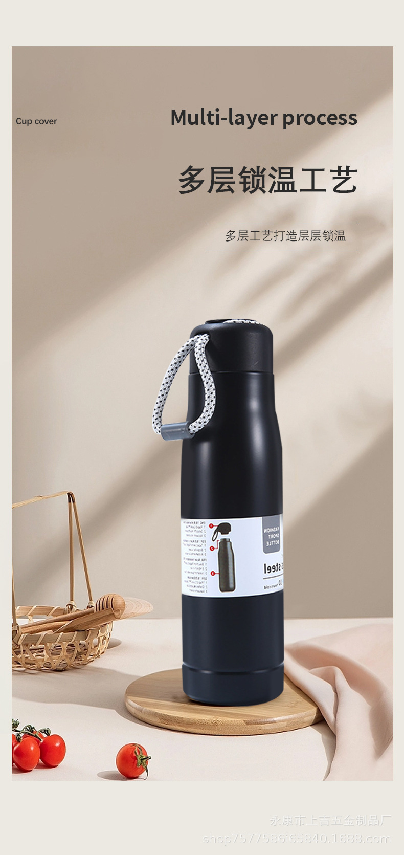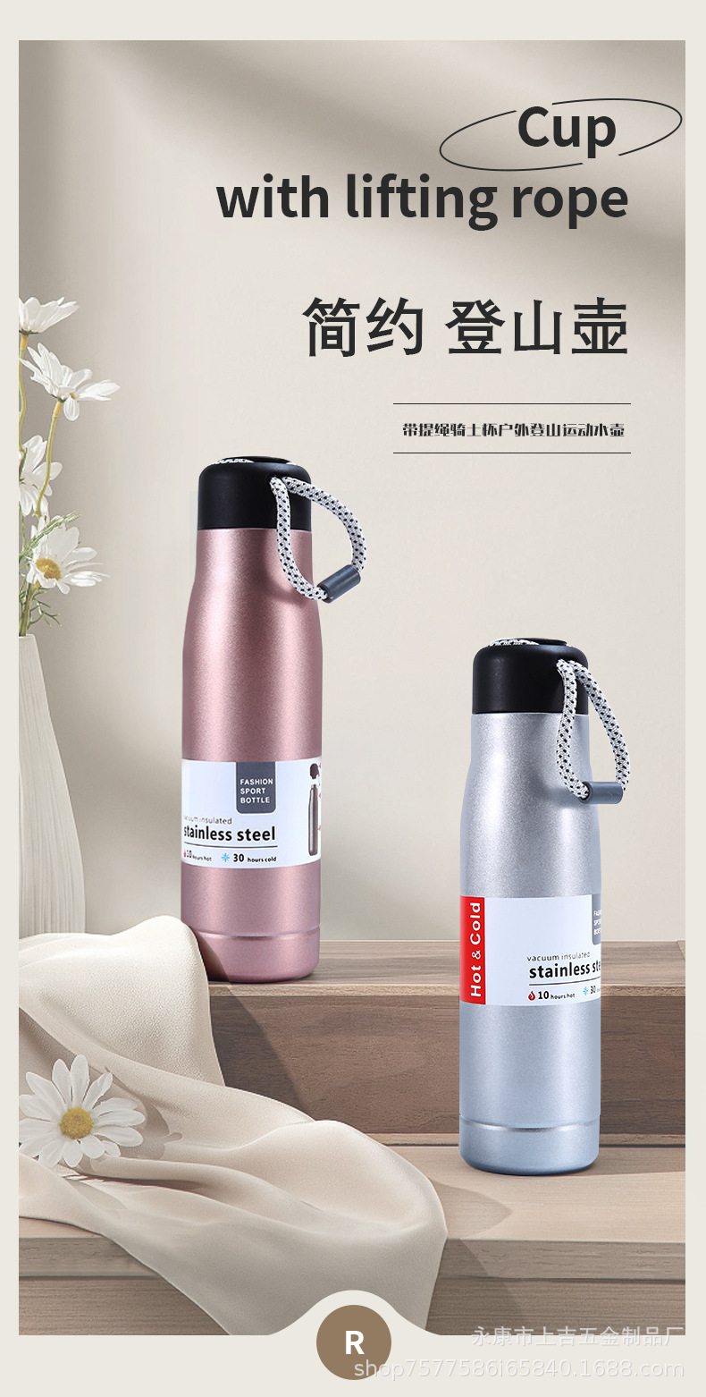 跨境直供304不锈钢保温杯大容量带提绳骑士杯户外登山运动水壶