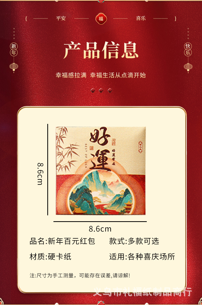 | 小红包6个装【百元对折】 | USD $0.21 | 9990 bag available |