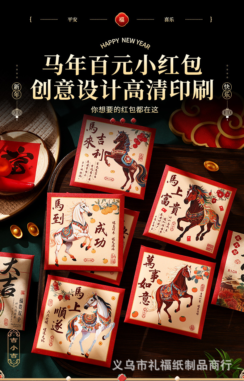 2026新款马年红包卡通生肖创意马到成功利是新春小号迷你压岁红包