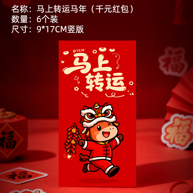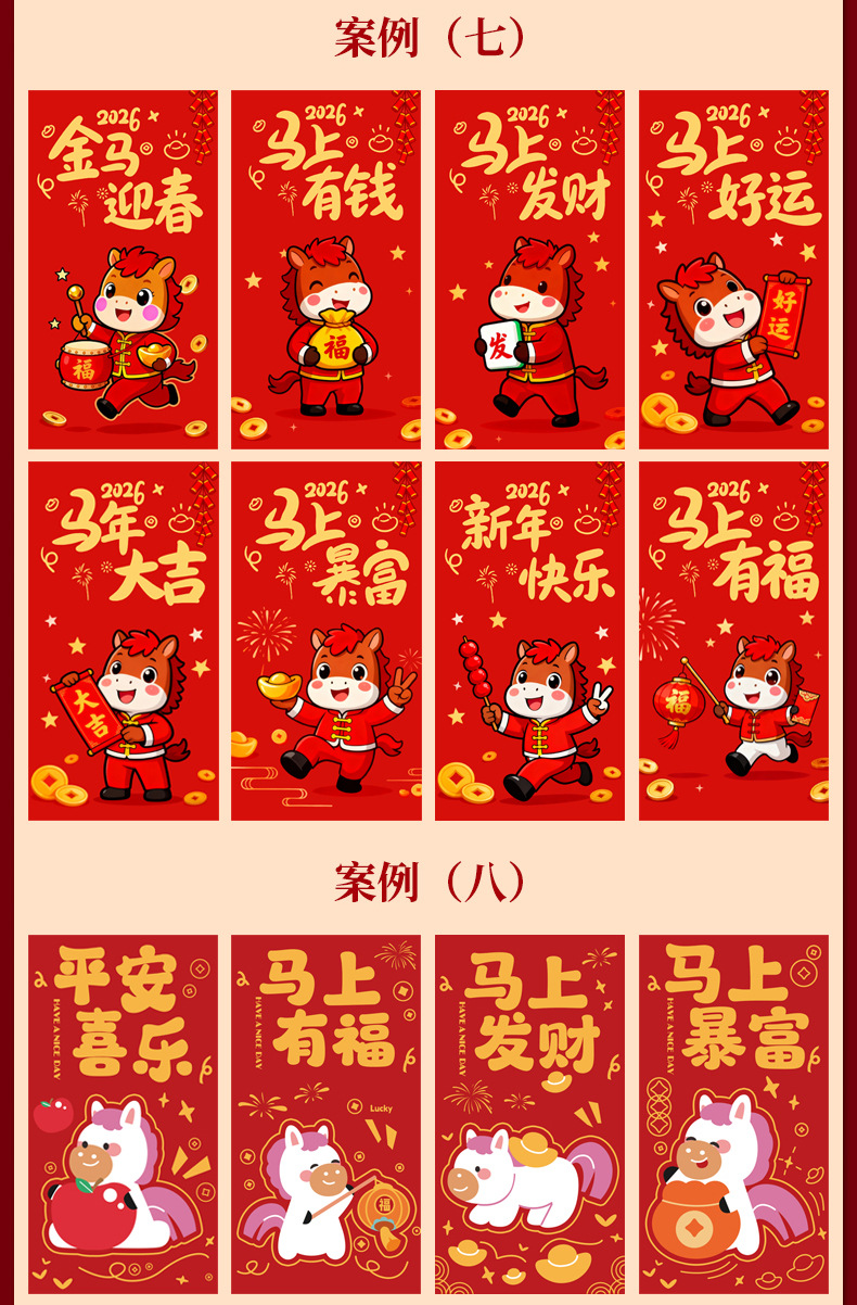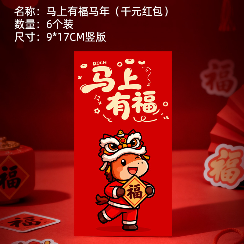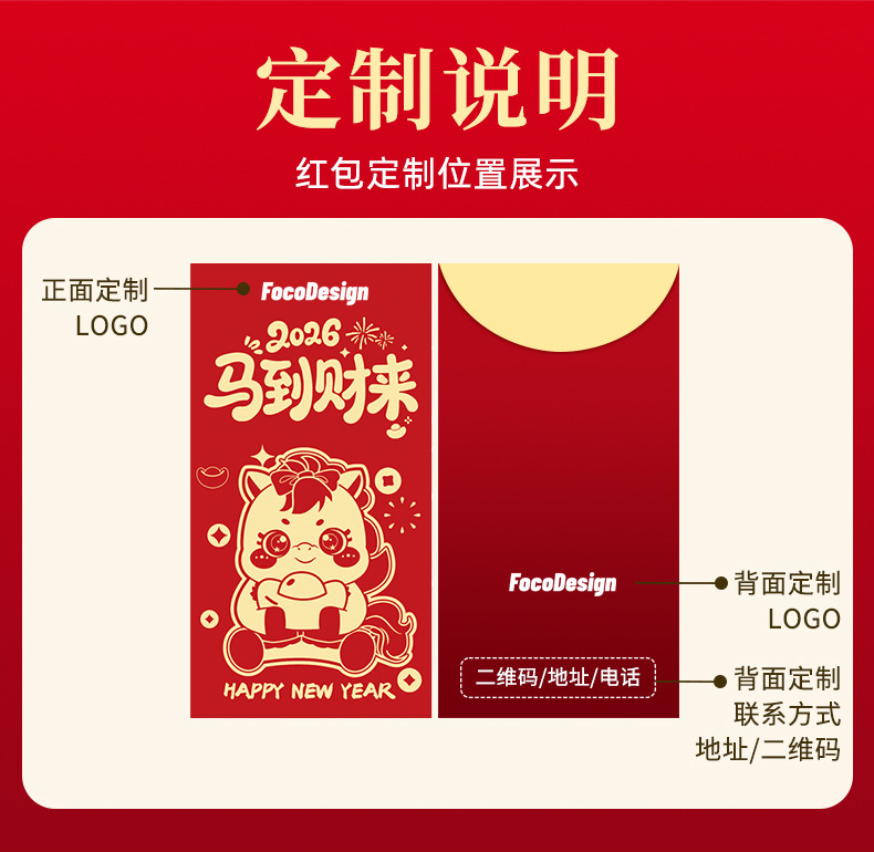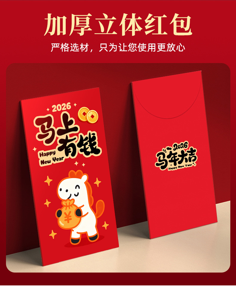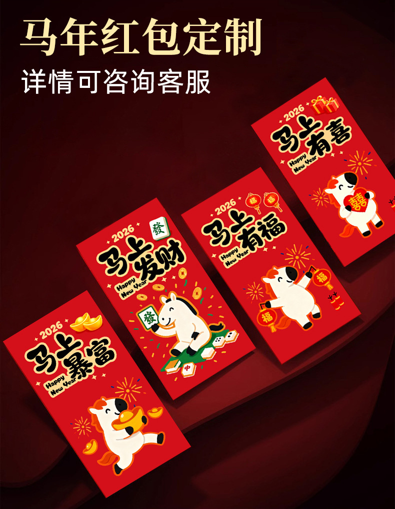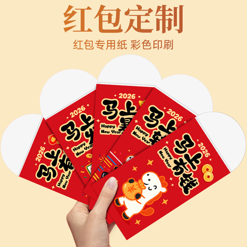 马年卡通图案红包定做创意新年2026利是封订做印logo烫金红包定制