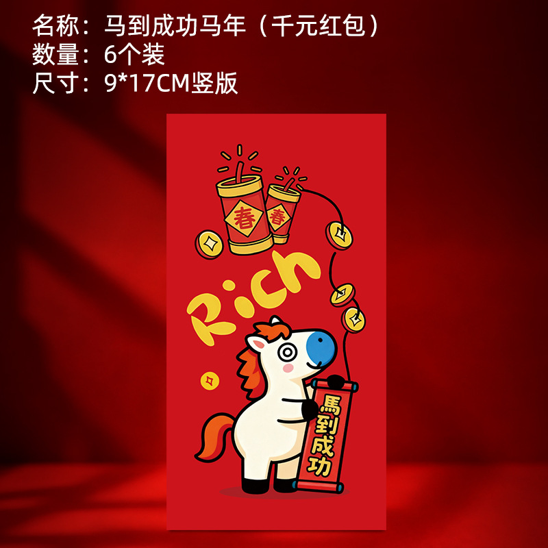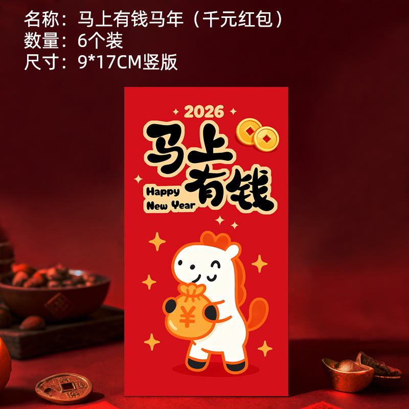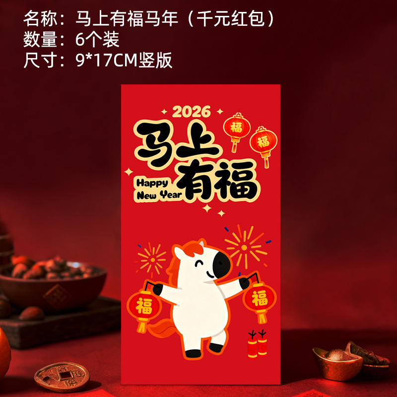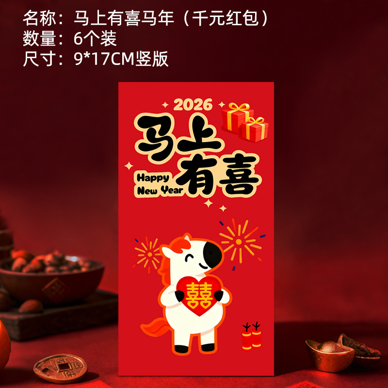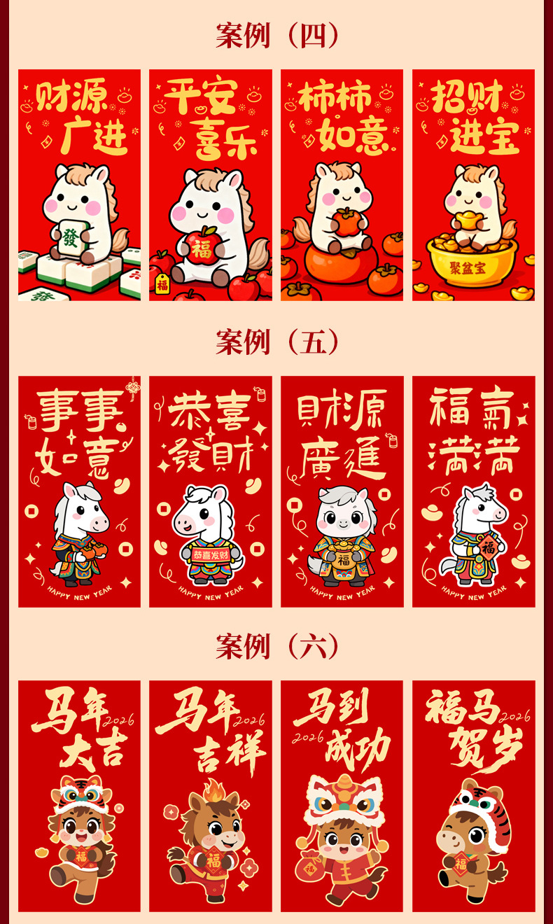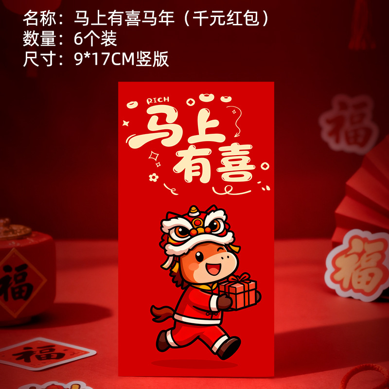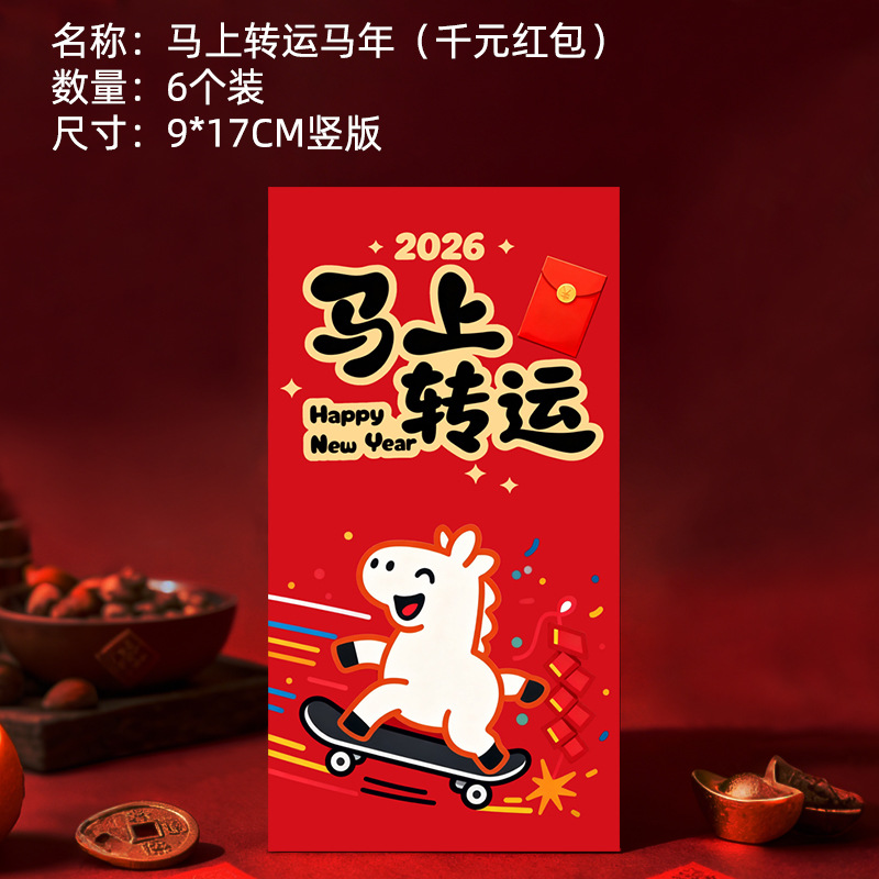 马年卡通图案红包定做创意新年2026利是封订做印logo烫金红包定制