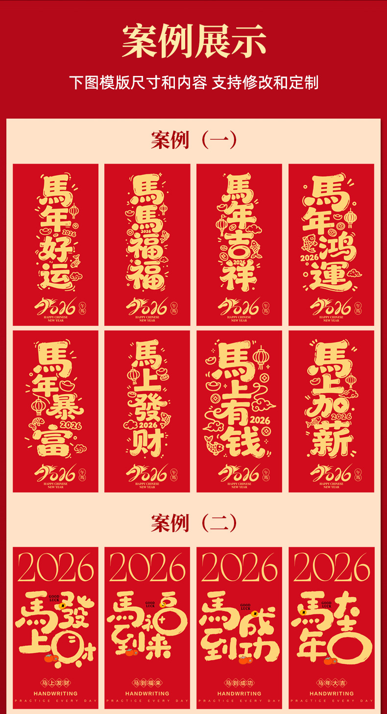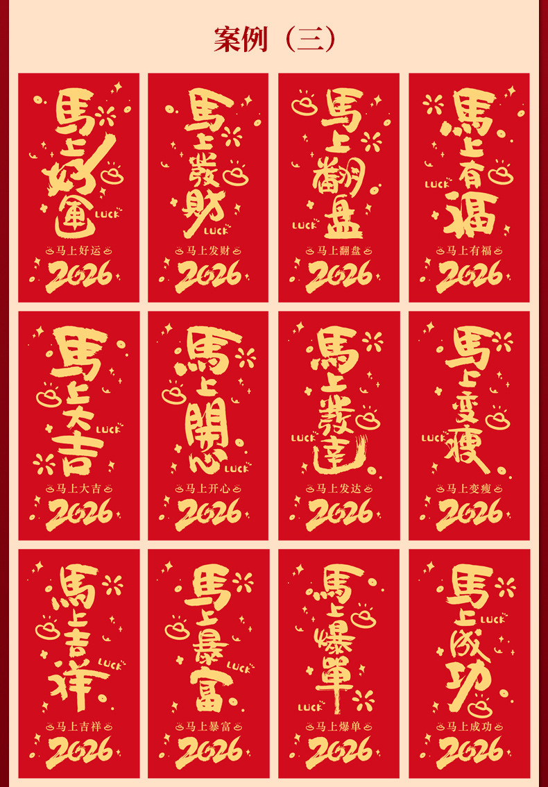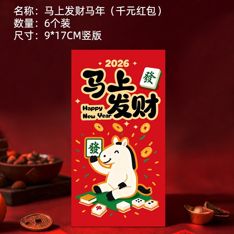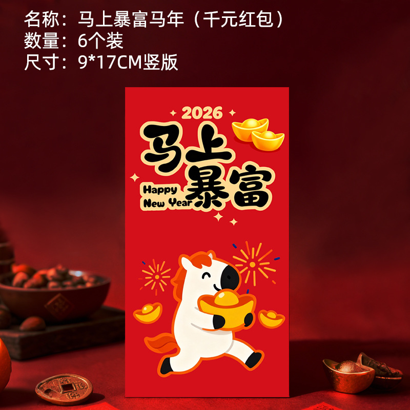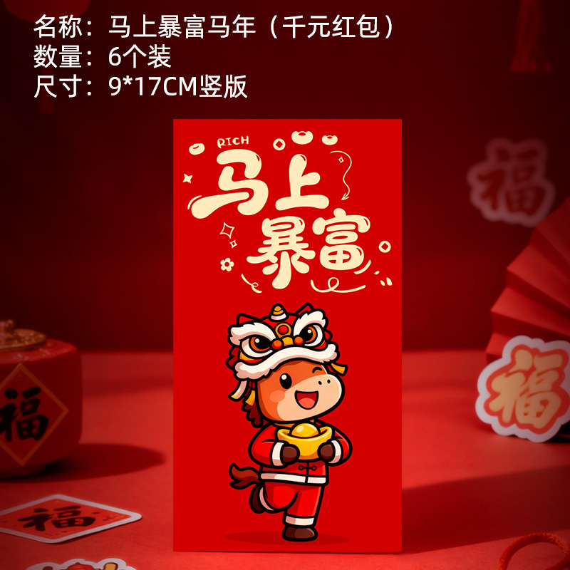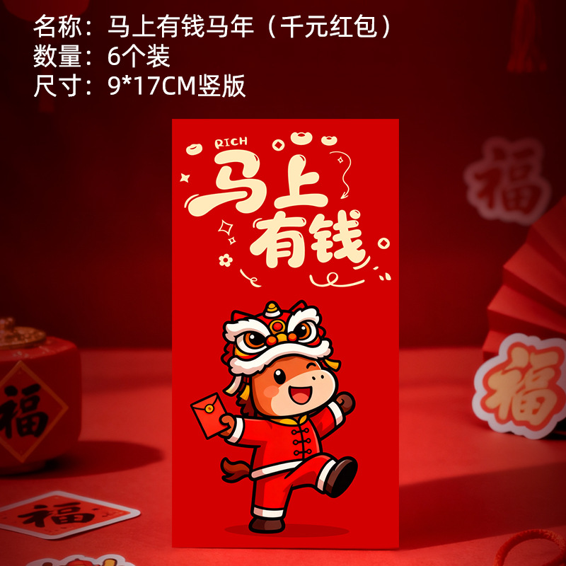马年卡通图案红包定做创意新年2026利是封订做印logo烫金红包定制
