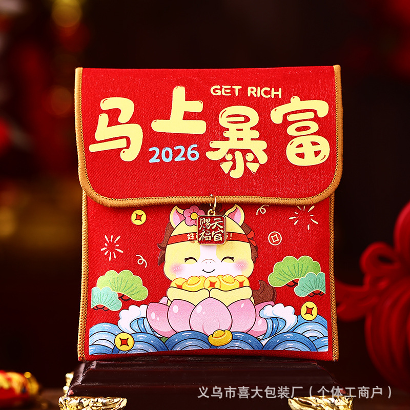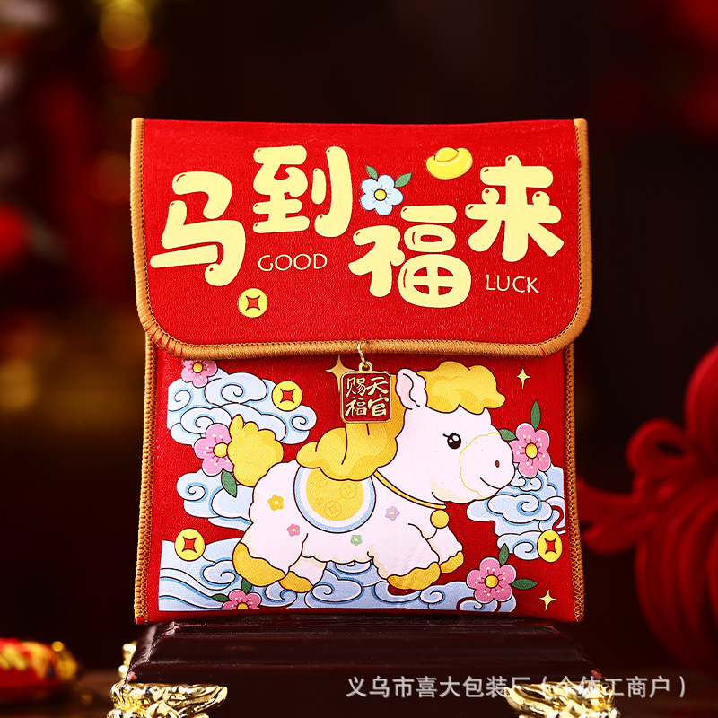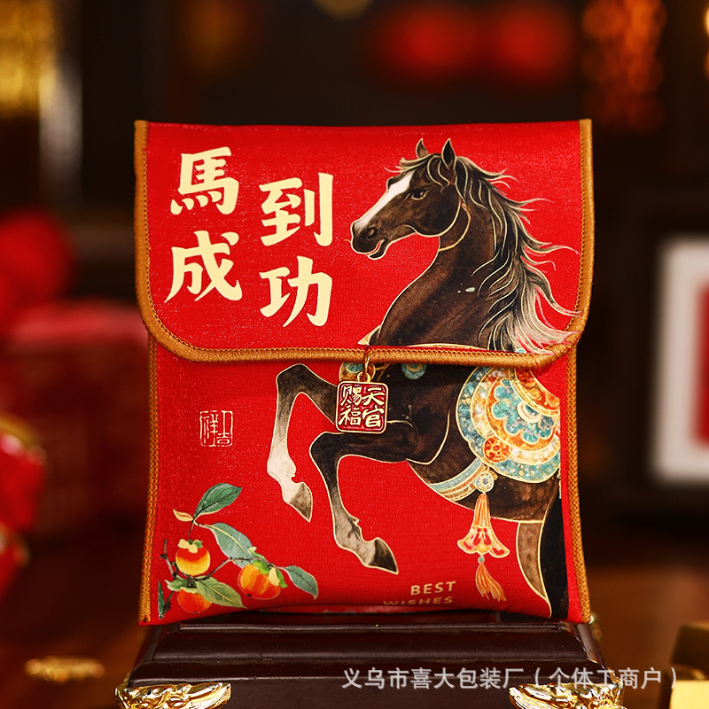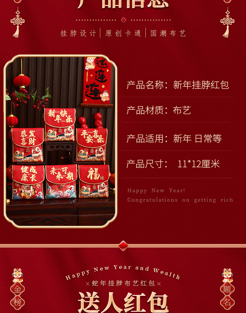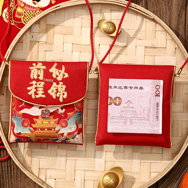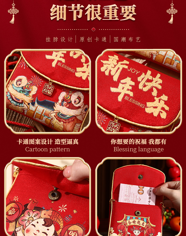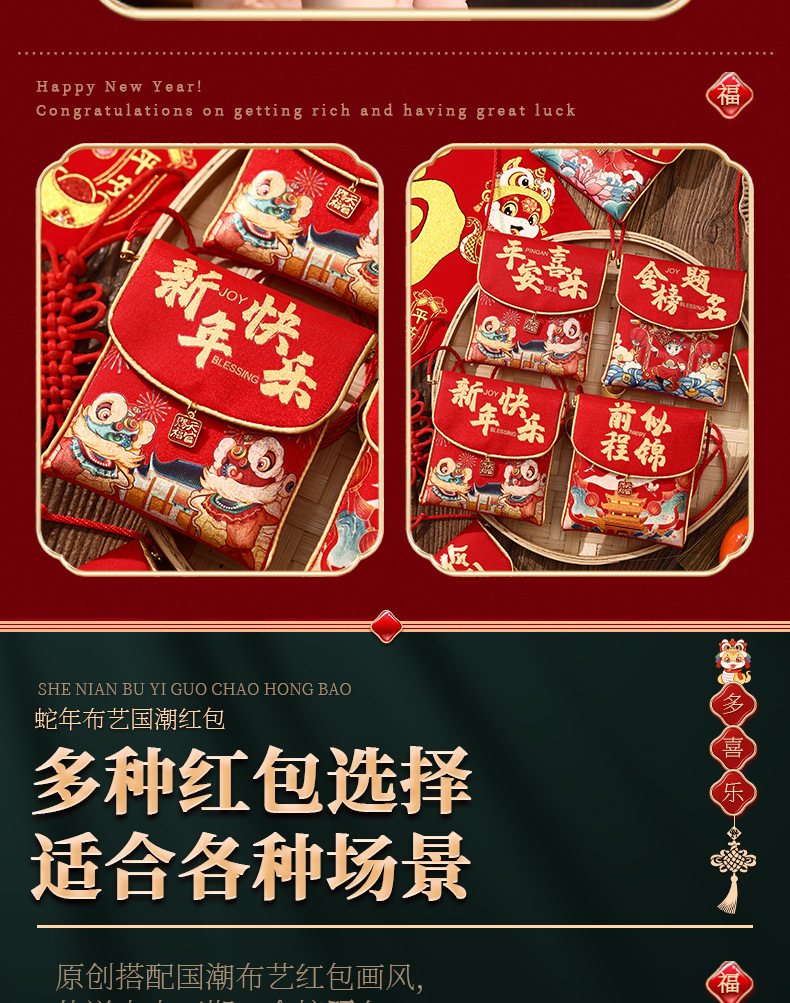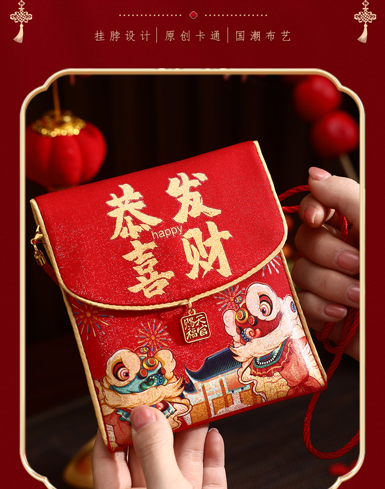 2025年国潮醒狮布艺红包春节利是封复古新年压岁福袋随身蛇年红包