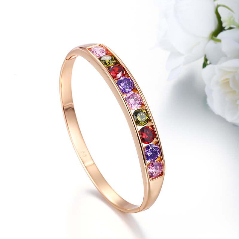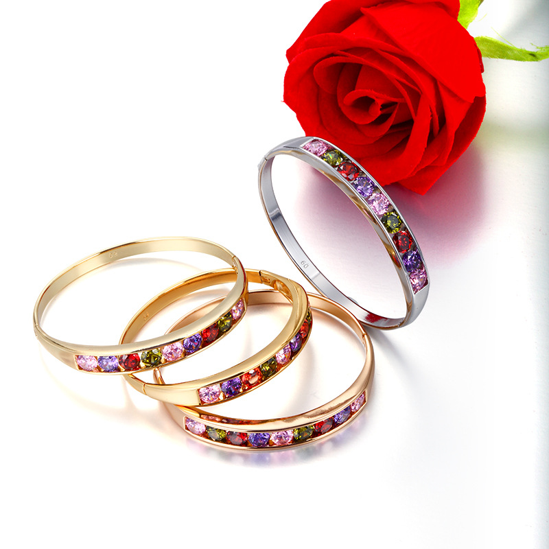 旭平镶嵌彩色锆石简约光面女士手镯轻奢气质高级感时尚手饰批发女