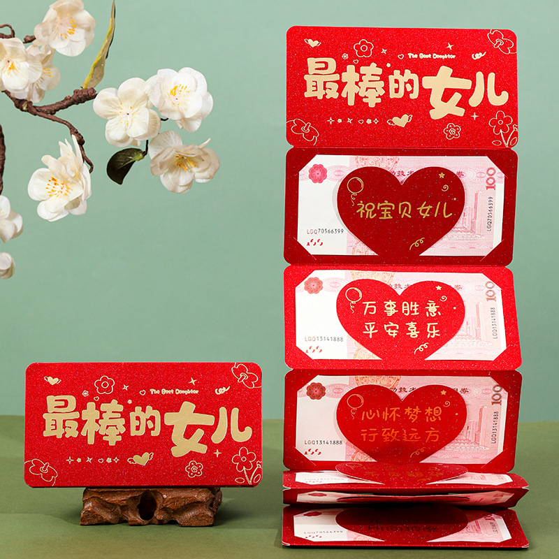 最棒的儿子女儿2026马年新年快乐金葱烫金磨砂生日红包折叠利是封