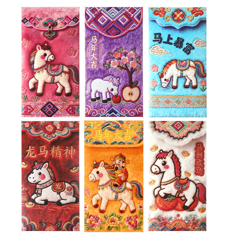 2026马年5D平面毛绒刺绣风格可爱卡通Q版春节元宵节利是封红包