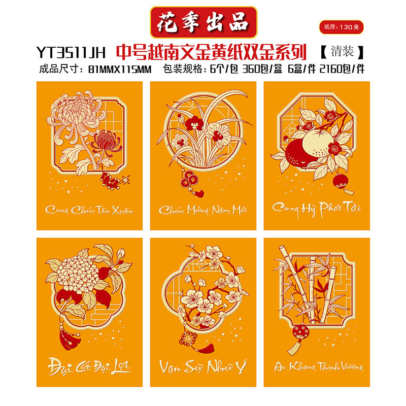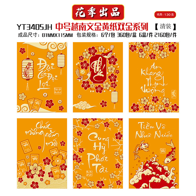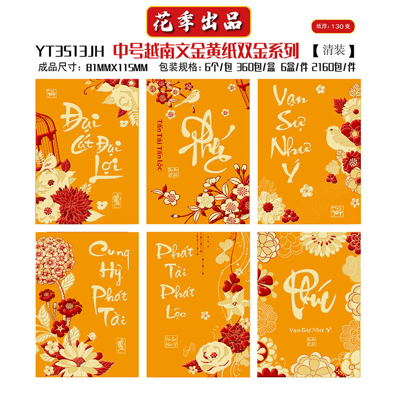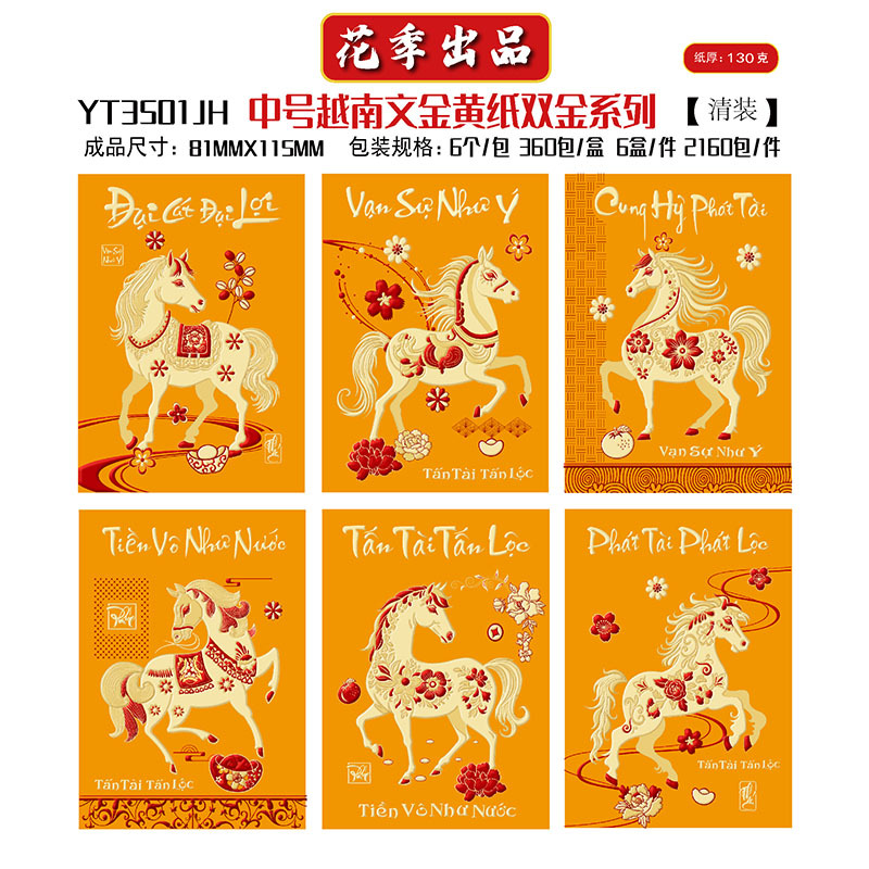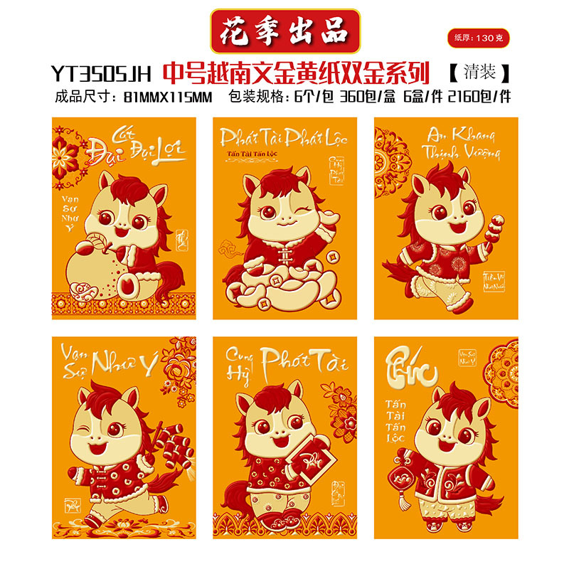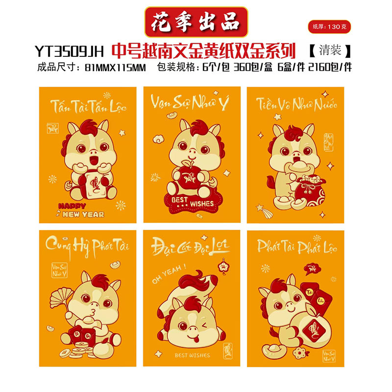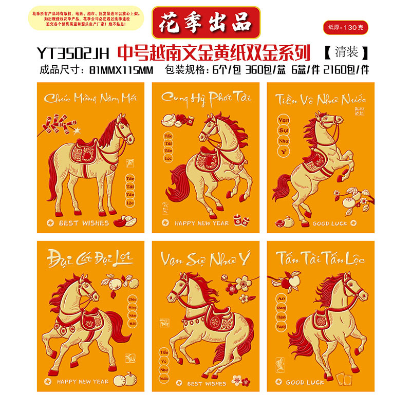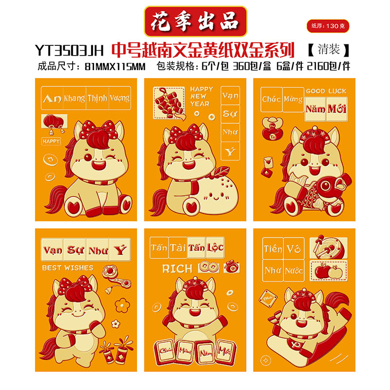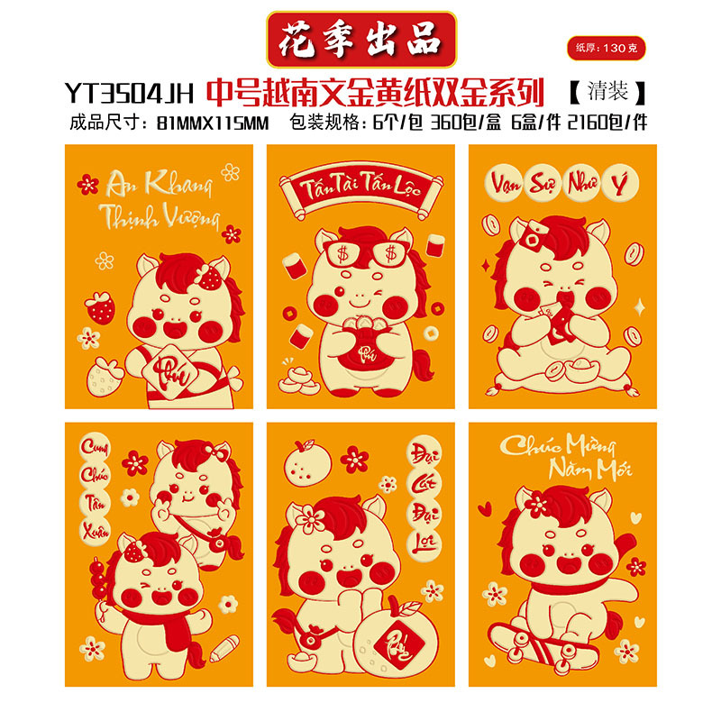 花季厂家批发直销马年新款越南文红包袋新年创意金黄压岁包利是封