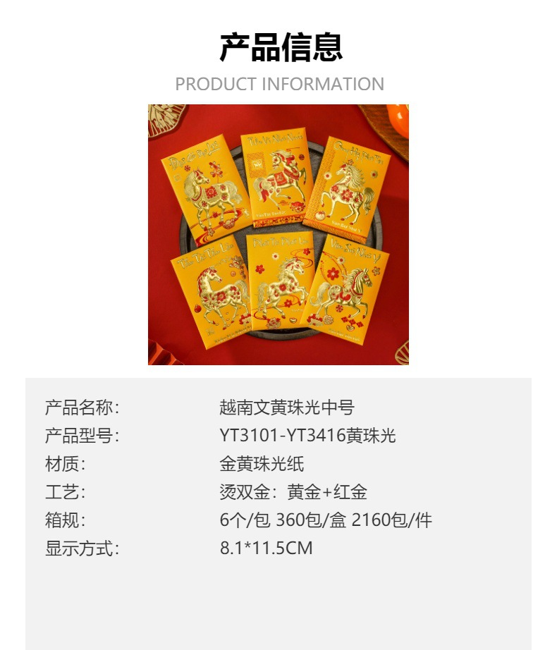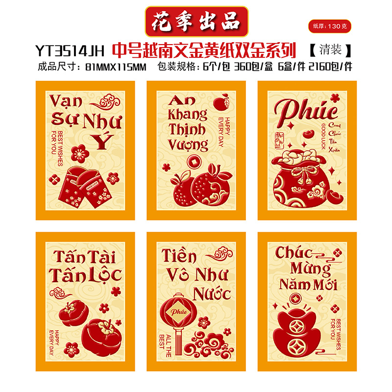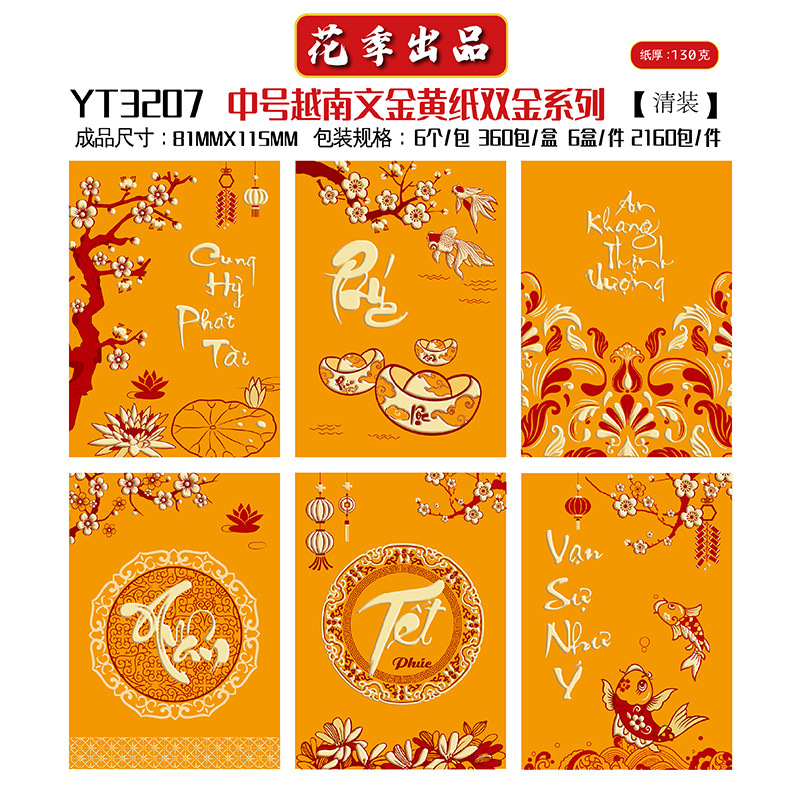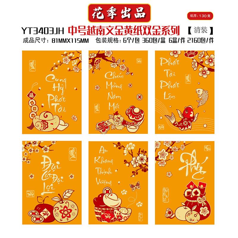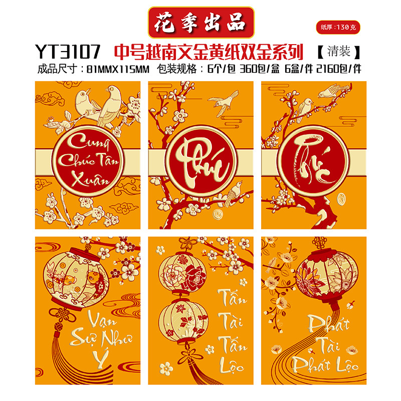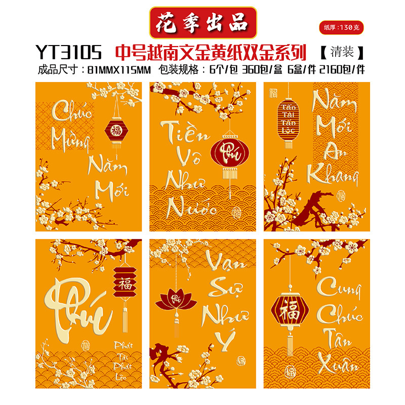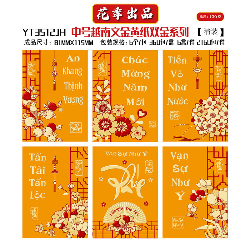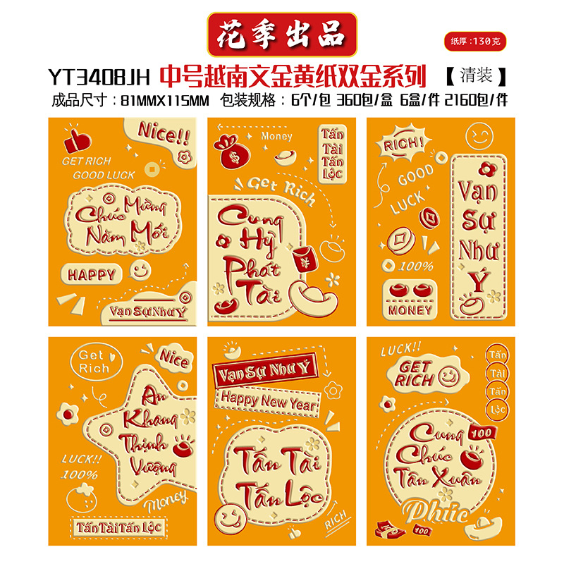 花季厂家批发直销马年新款越南文红包袋新年创意金黄压岁包利是封