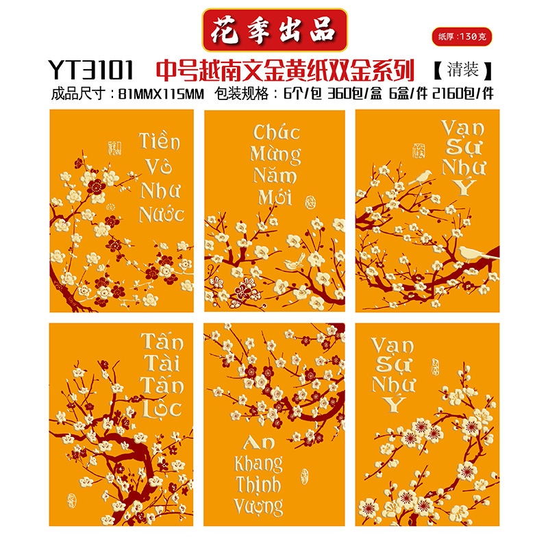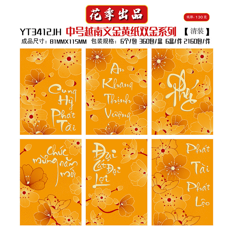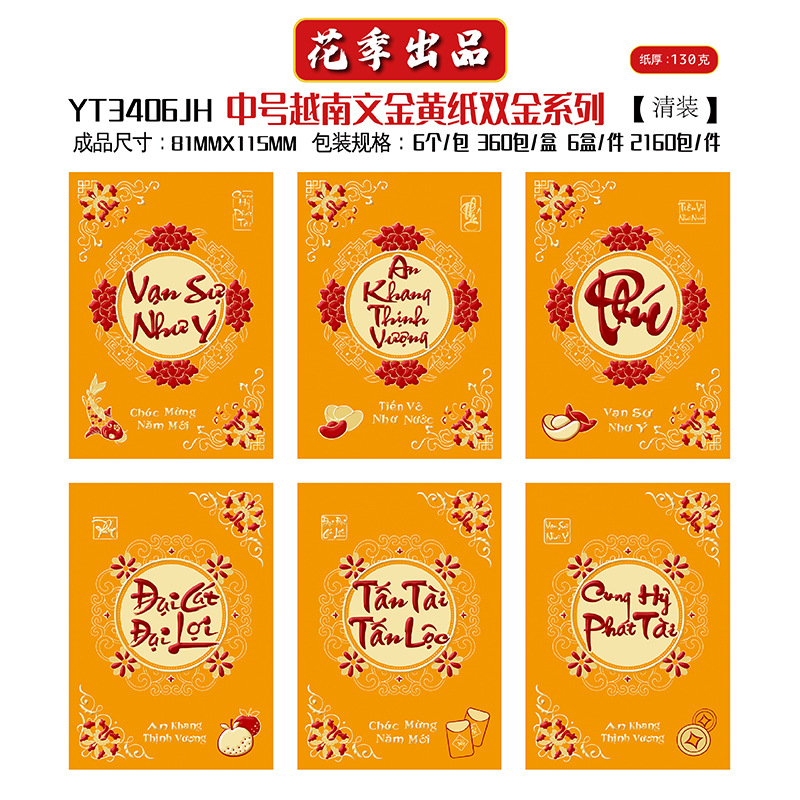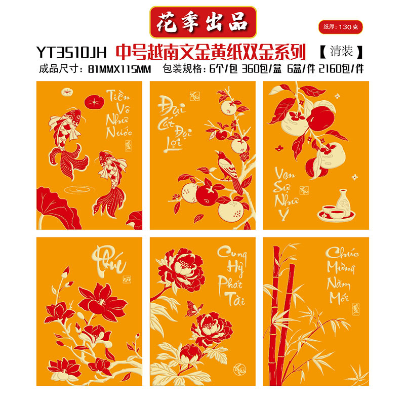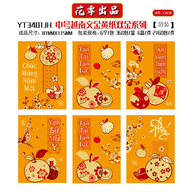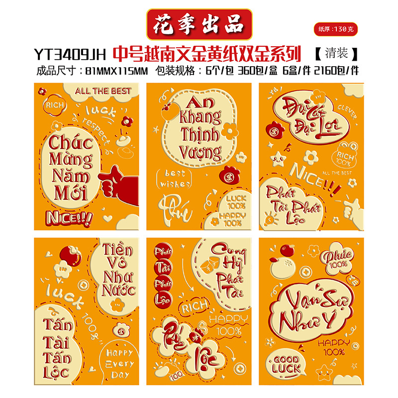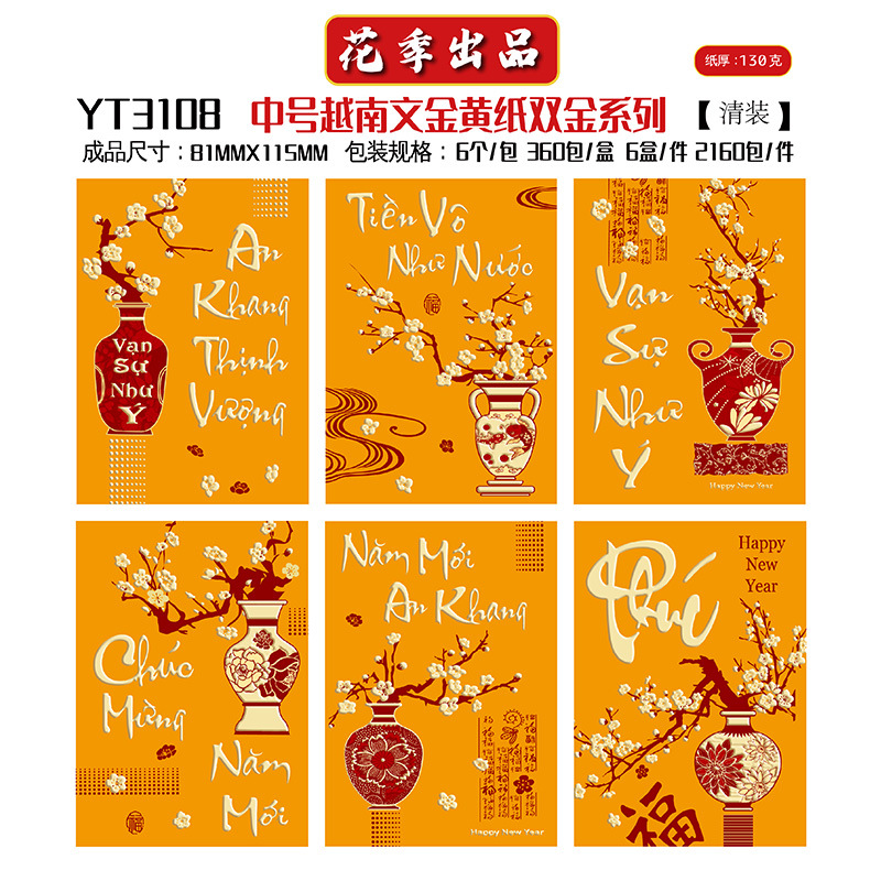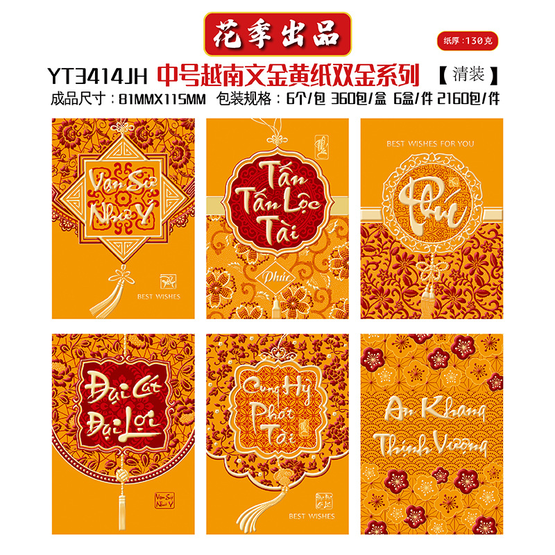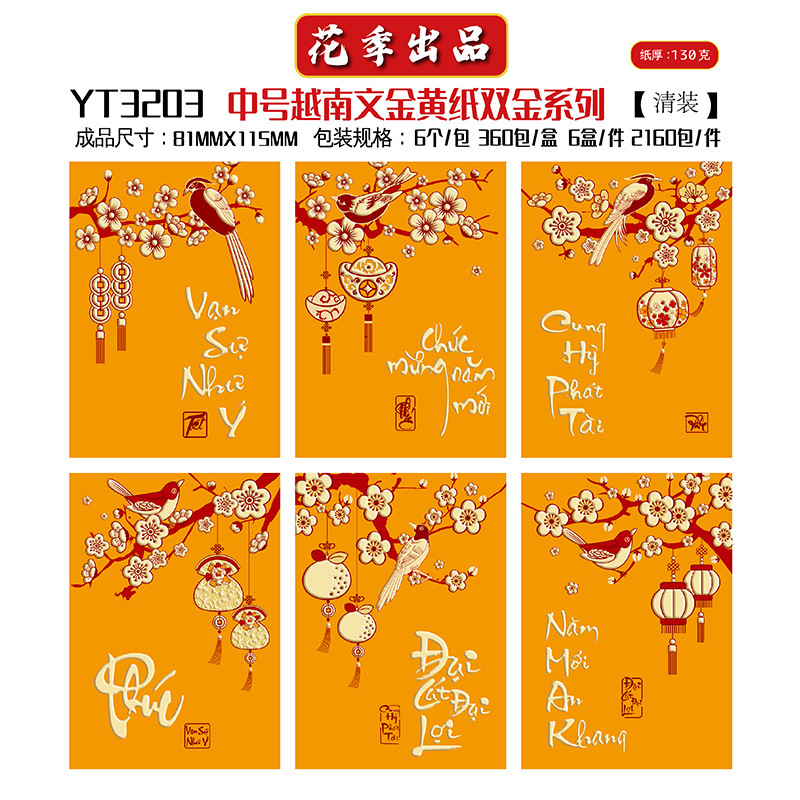 花季厂家批发直销马年新款越南文红包袋新年创意金黄压岁包利是封