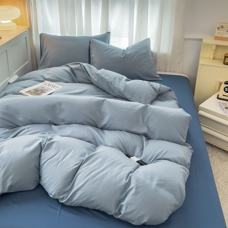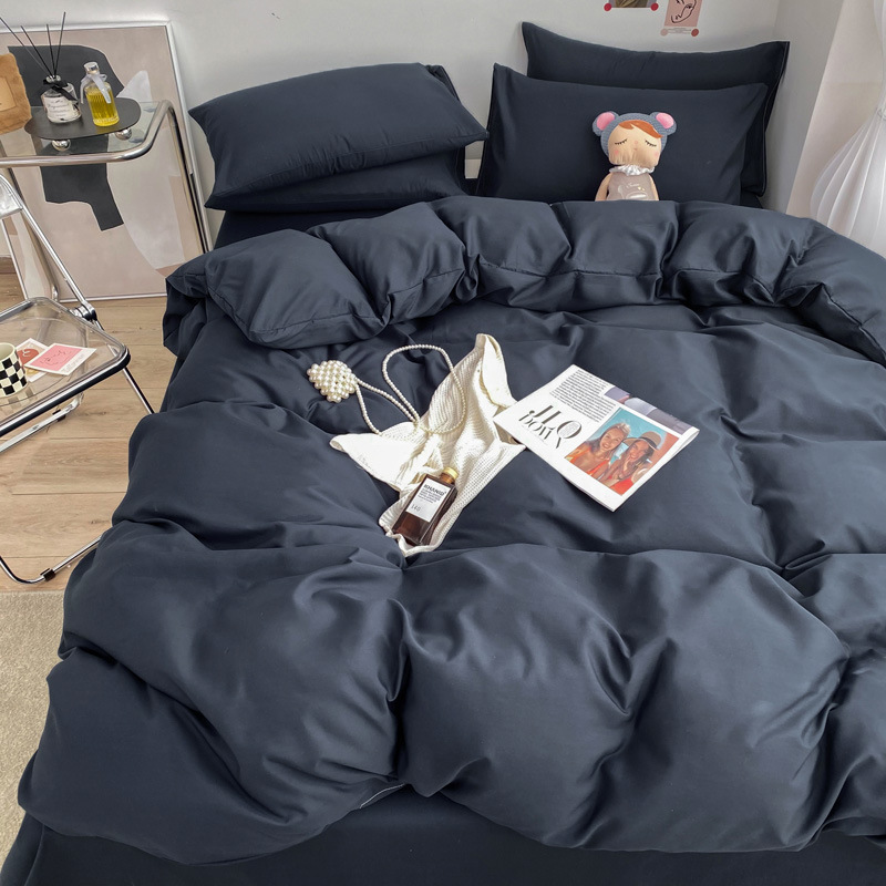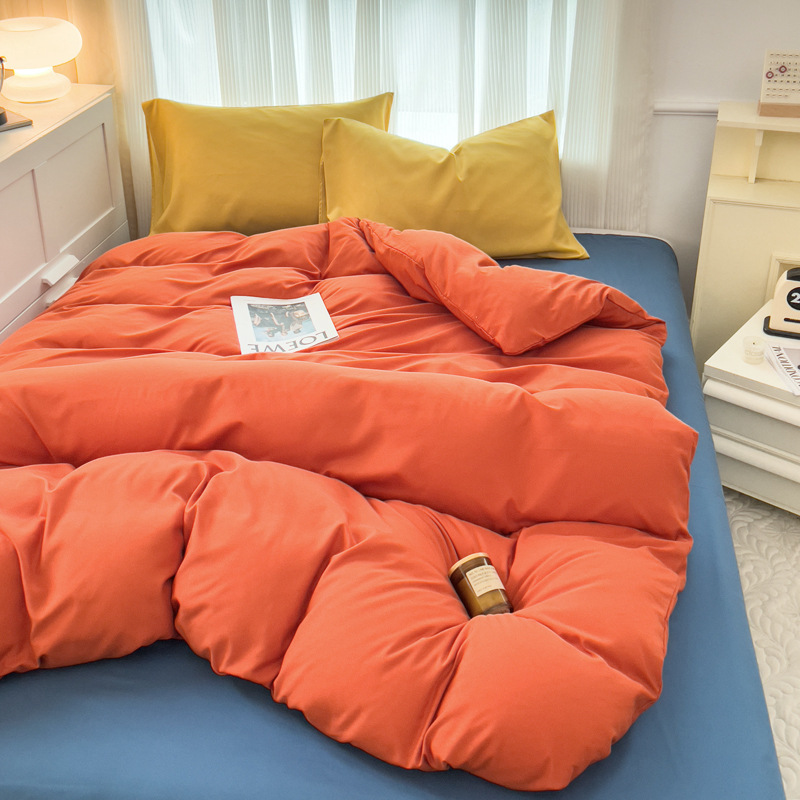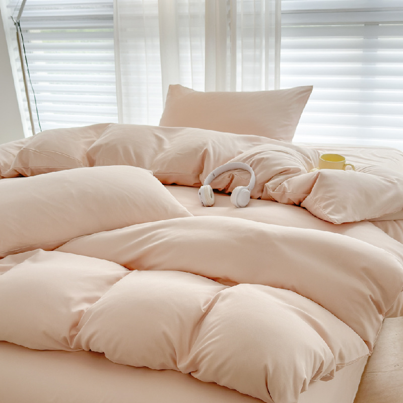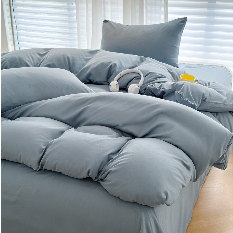 严选批发四件套春季纯色磨毛床单被套罩水洗棉ins风双人床上用品