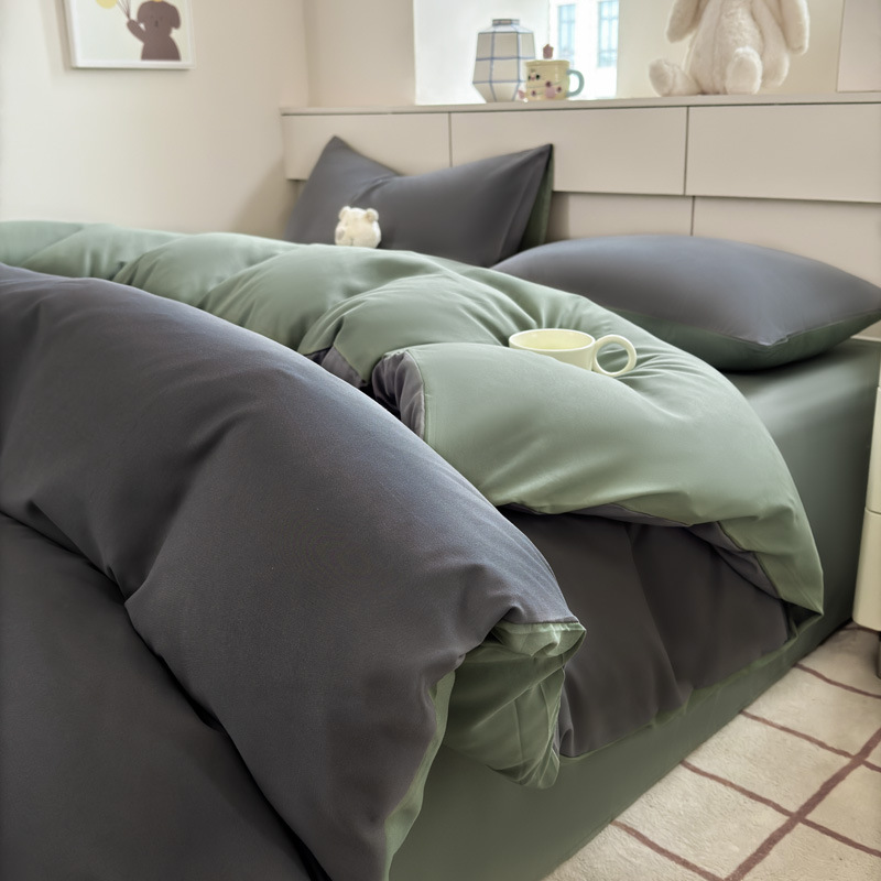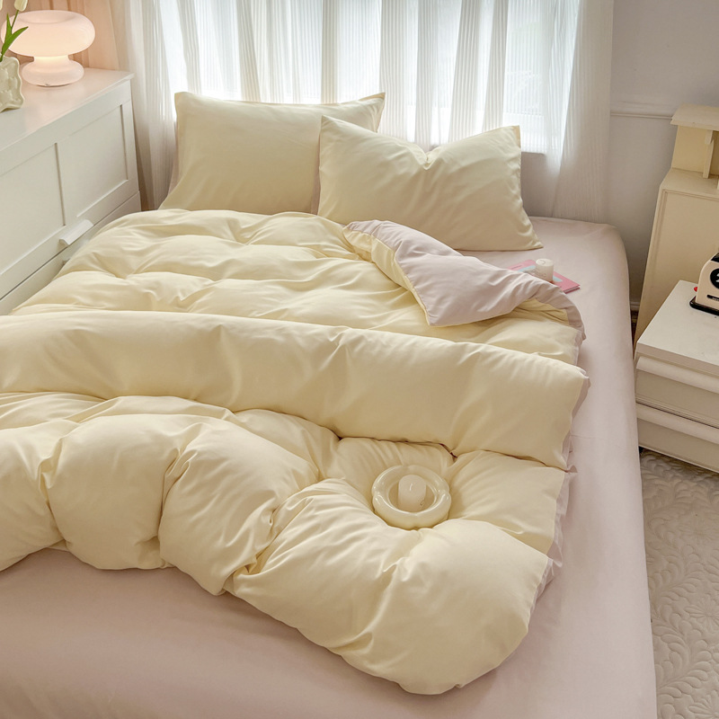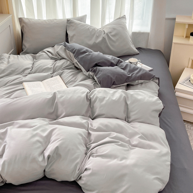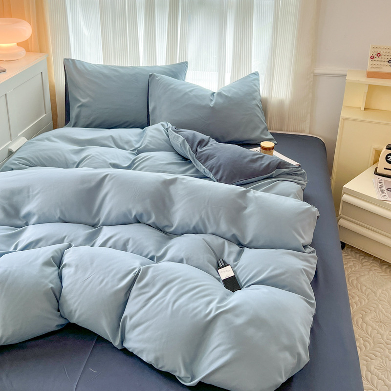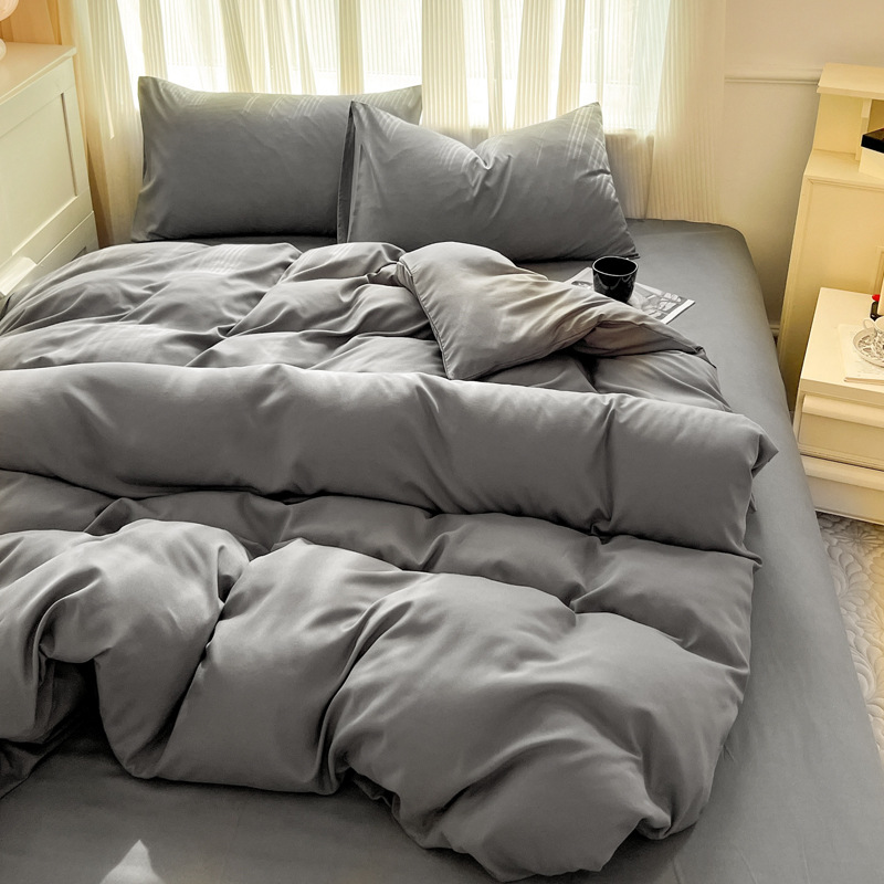严选批发四件套春季纯色磨毛床单被套罩水洗棉ins风双人床上用品