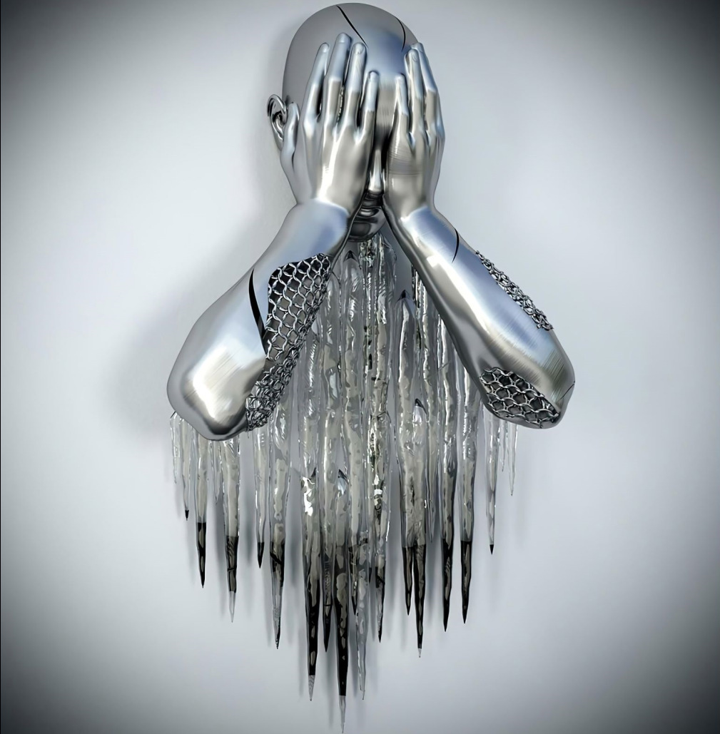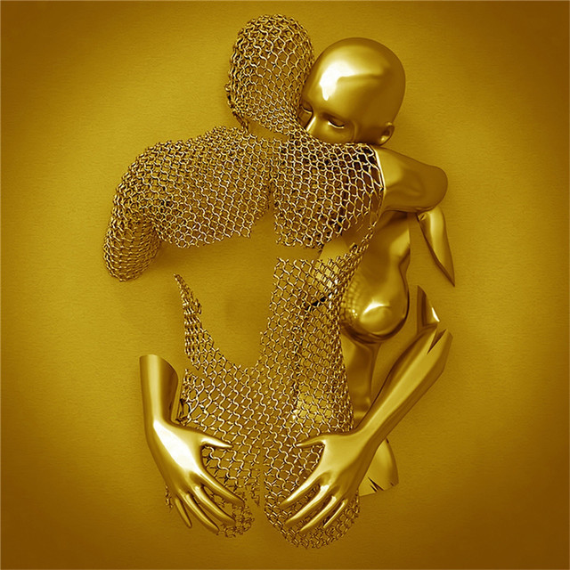 金属人物雕像艺术海报挂画 现代家居墙壁装饰无框帆布画 喷绘画芯