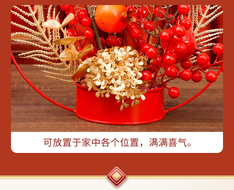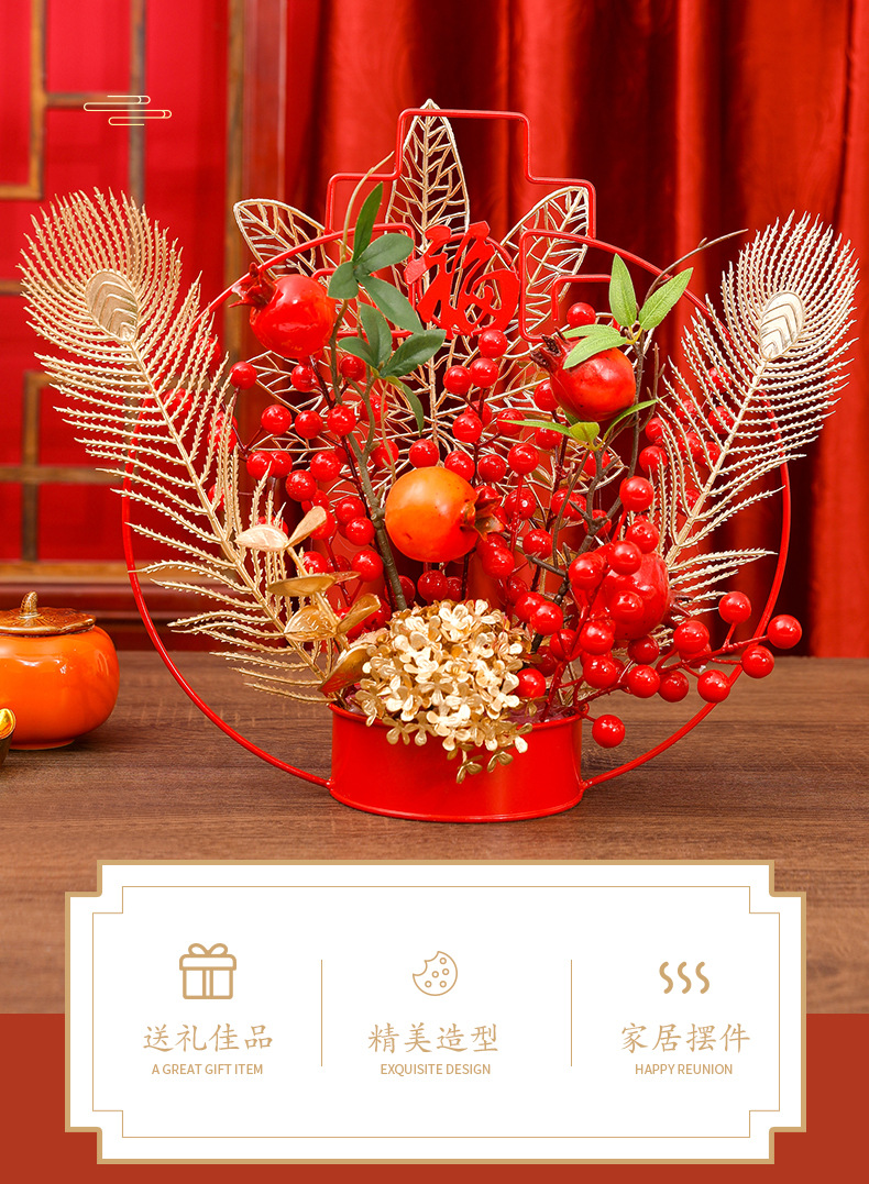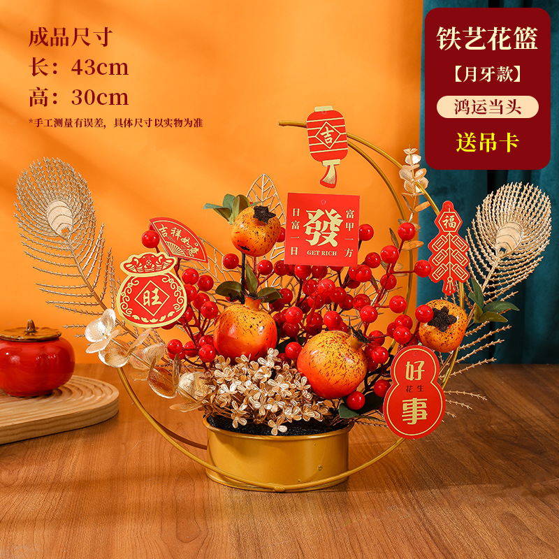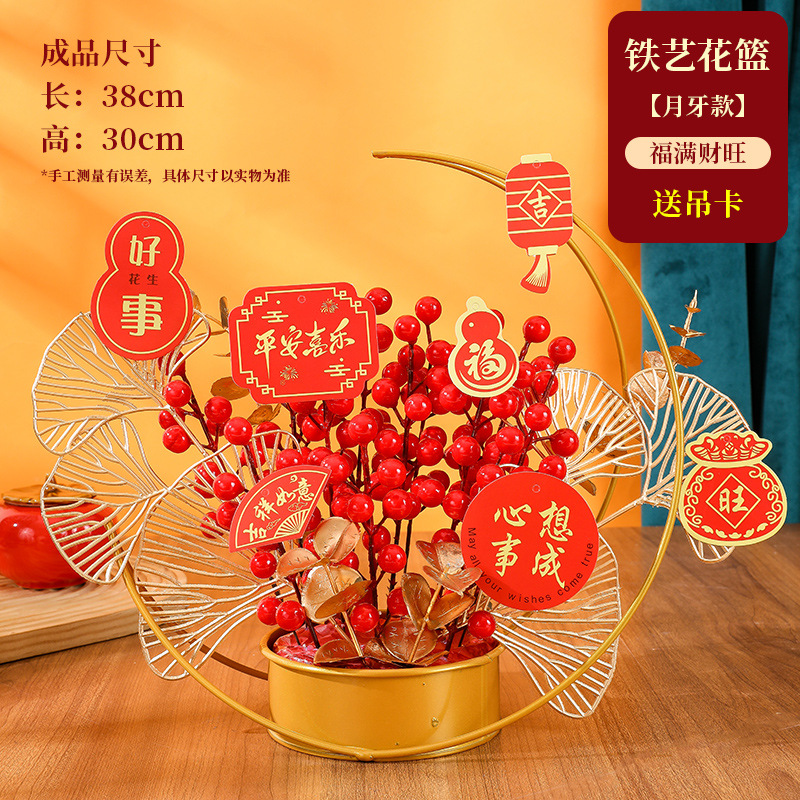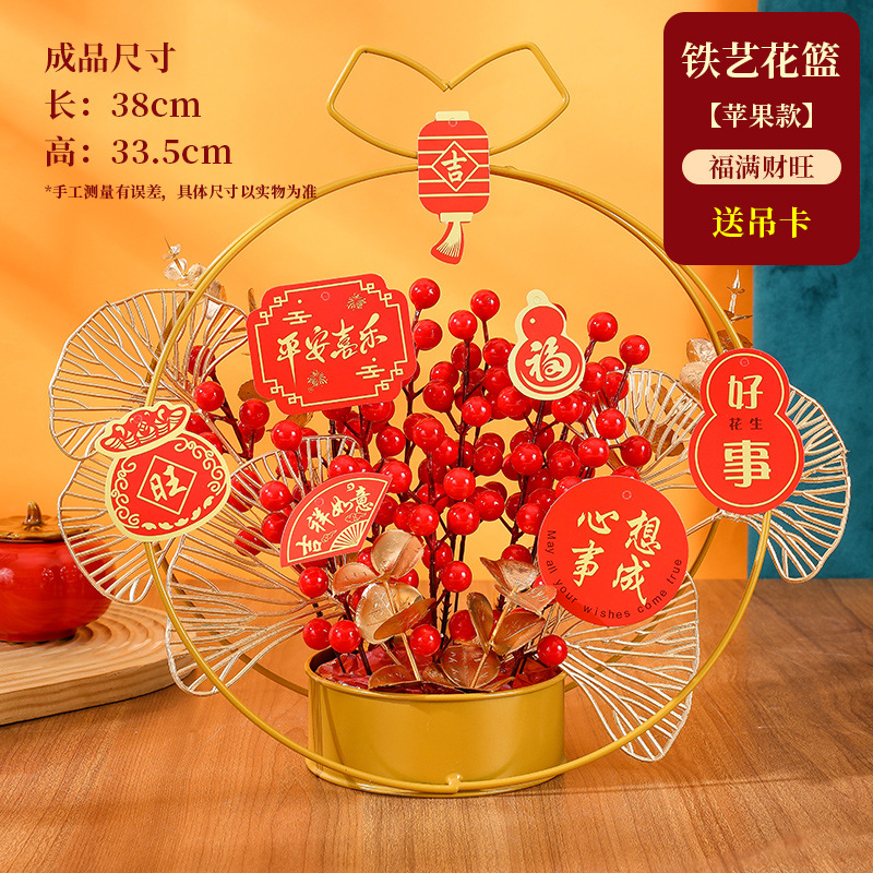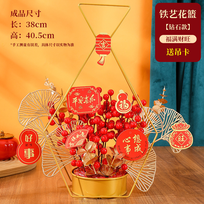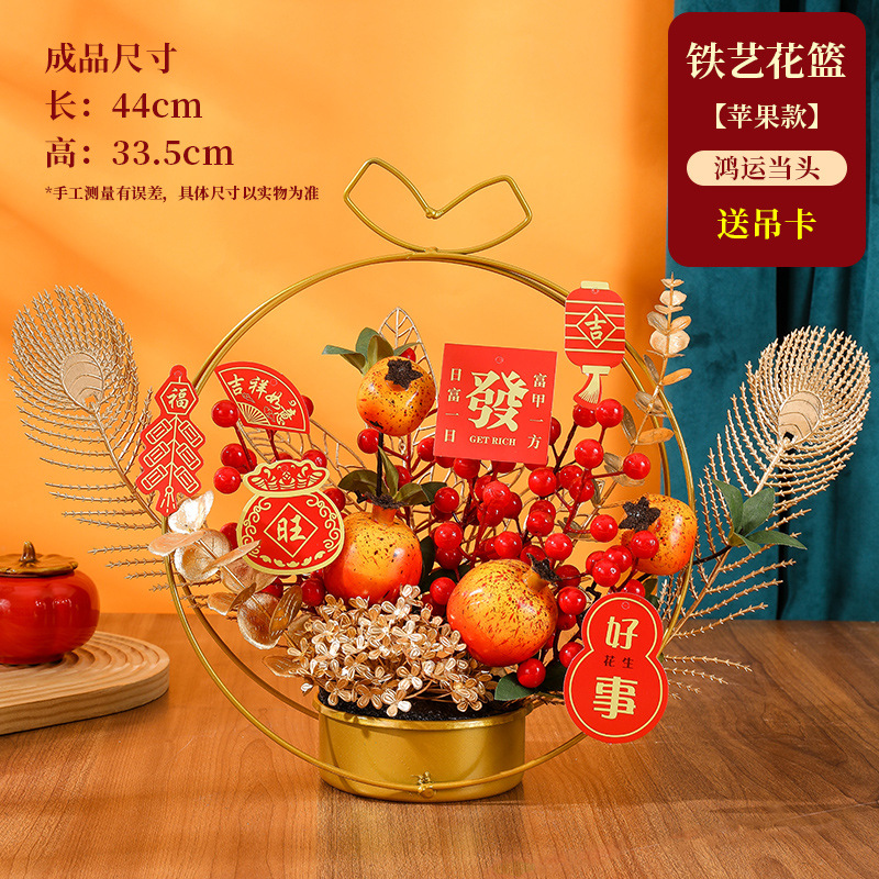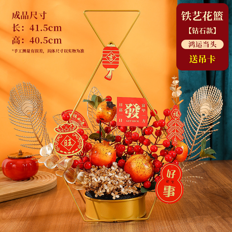 2026新年客厅摆件年宵花铁艺花篮diy发财果春节乔迁新居装饰用品