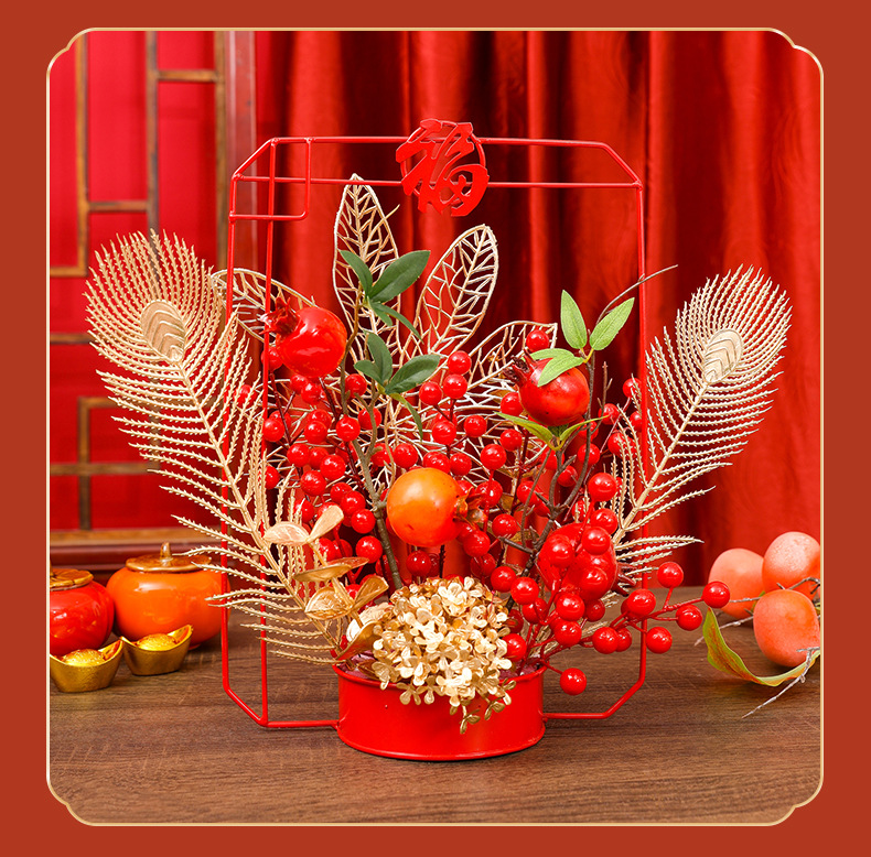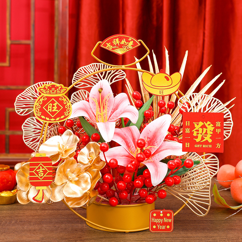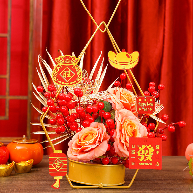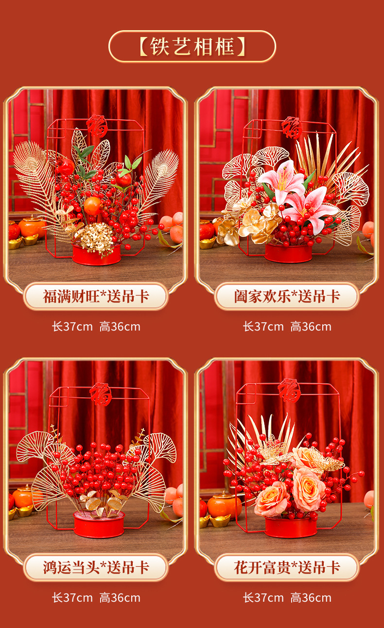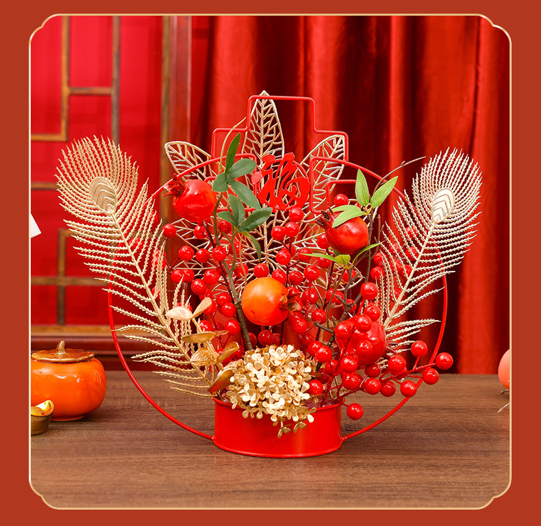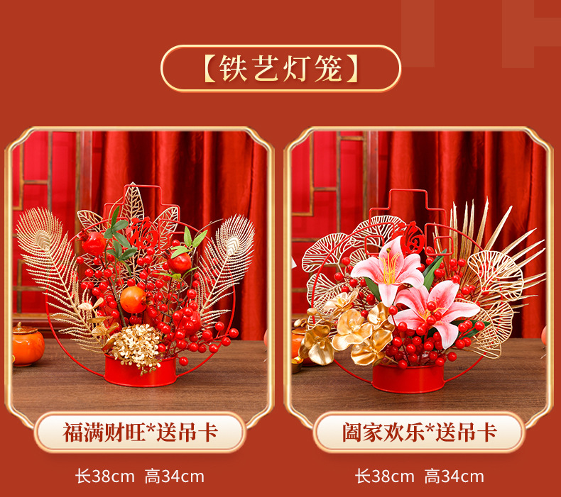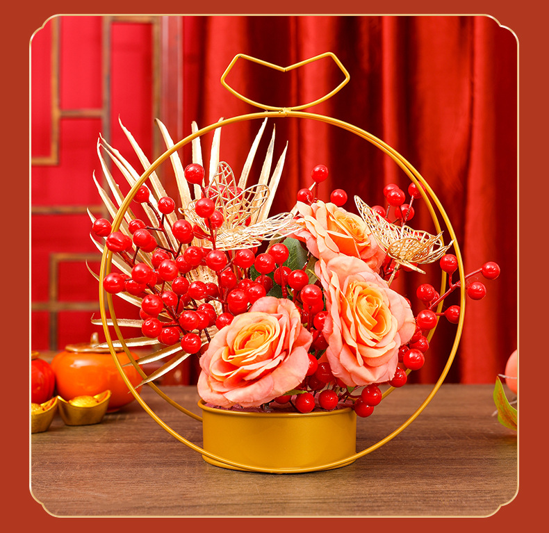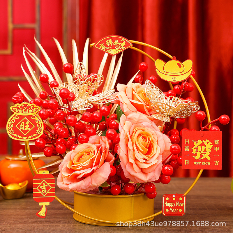 2026新年客厅摆件年宵花铁艺花篮diy发财果春节乔迁新居装饰用品
