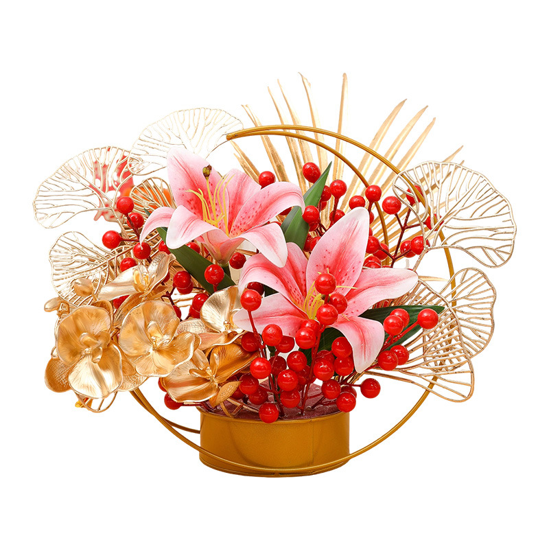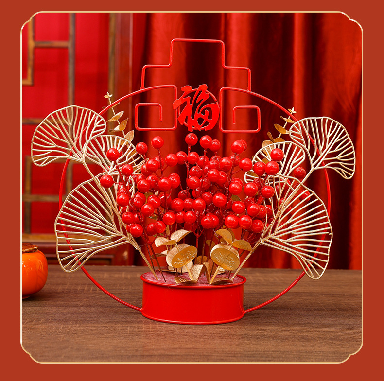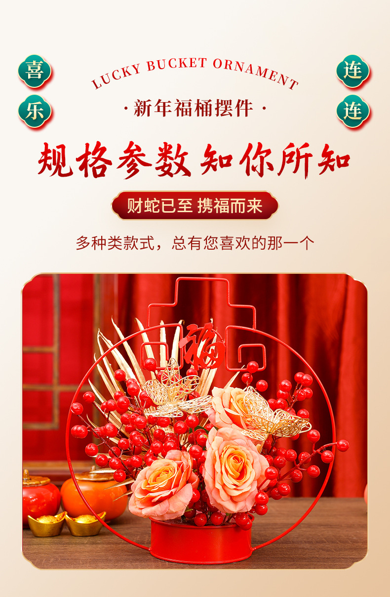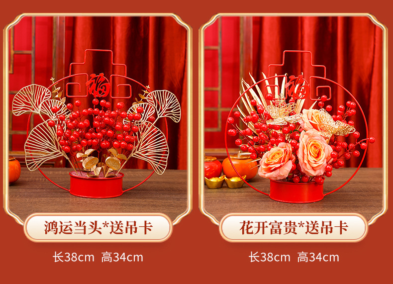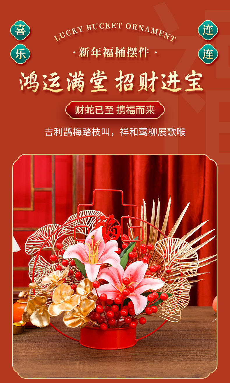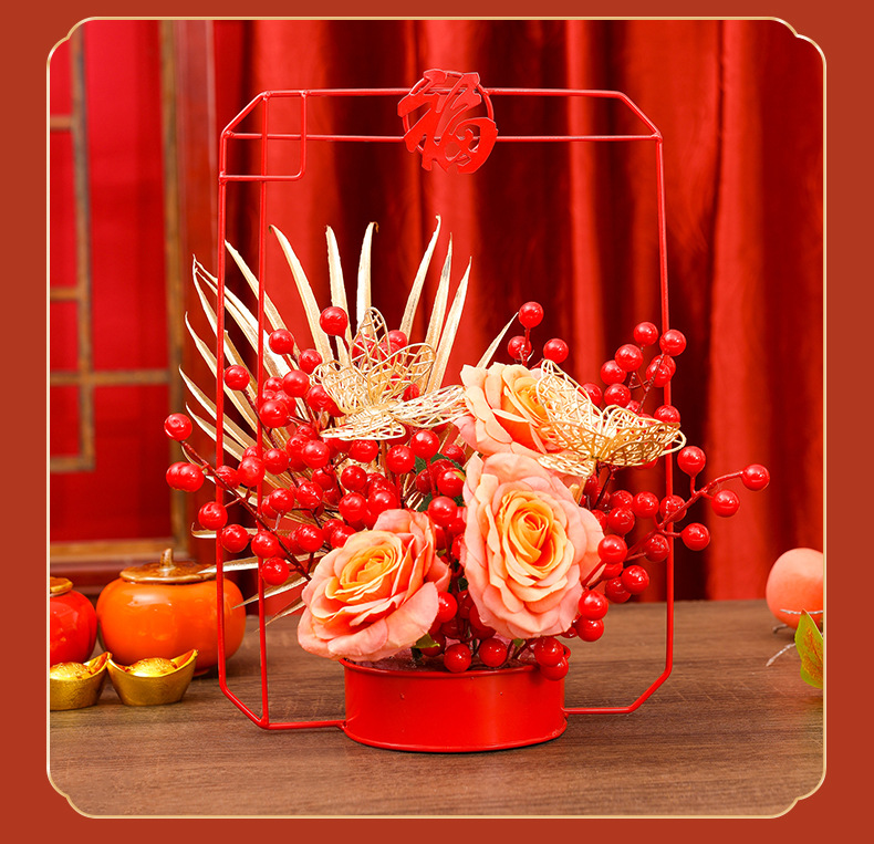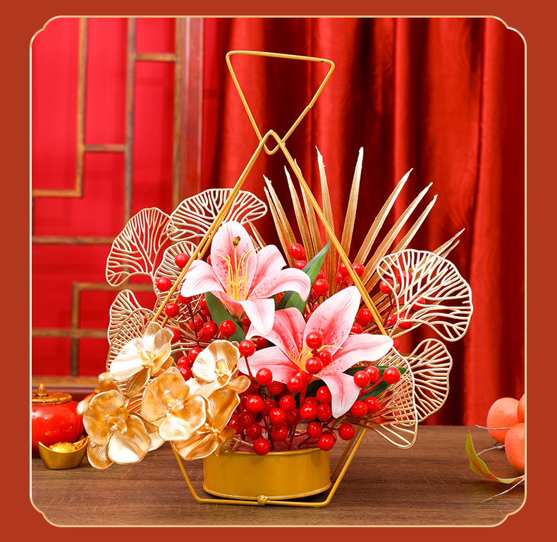 2026新年客厅摆件年宵花铁艺花篮diy发财果春节乔迁新居装饰用品