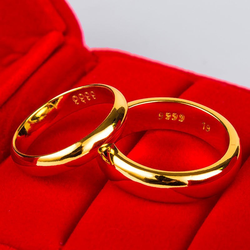 正宗越南沙金戒指闭口光面钢印四个九男女款情侣结婚对戒久不掉色