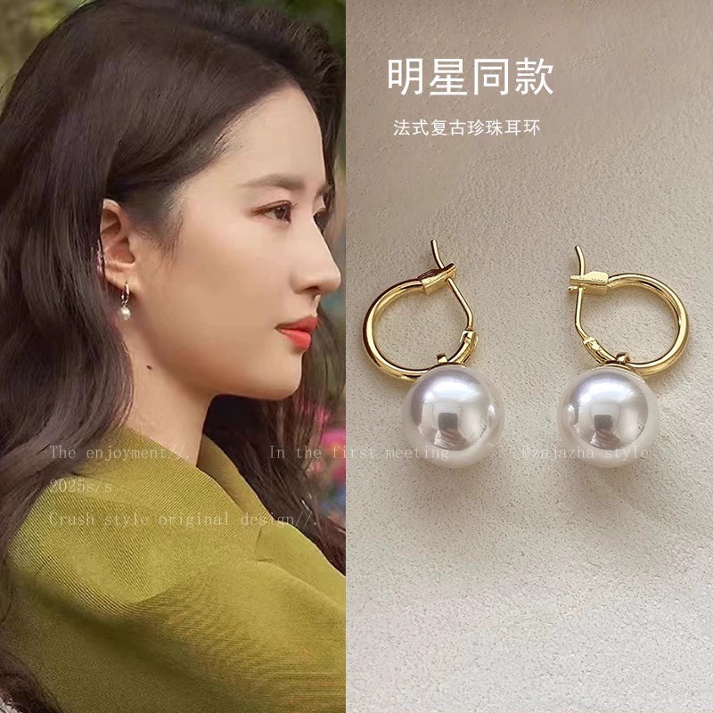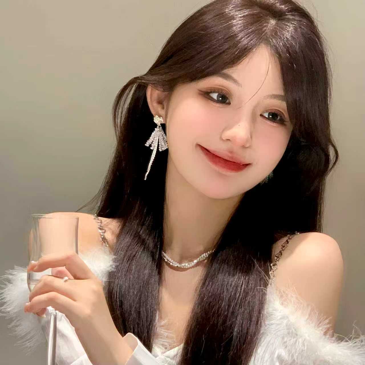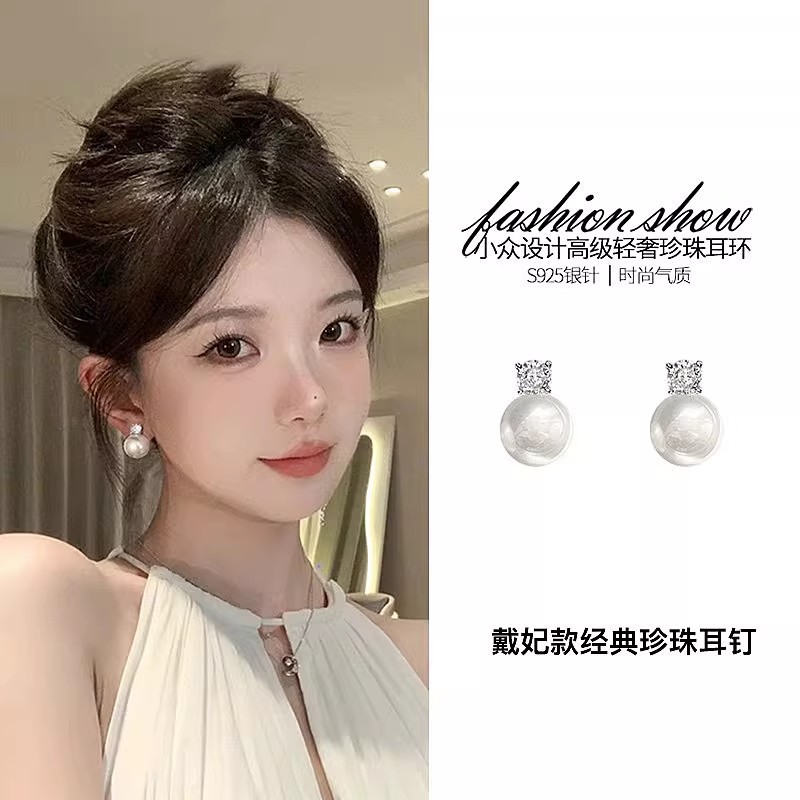 S925银针轻奢小众珍珠耳钉女百搭气质长款流苏耳环高级感耳饰批发