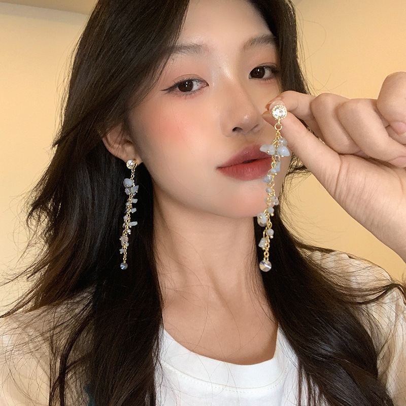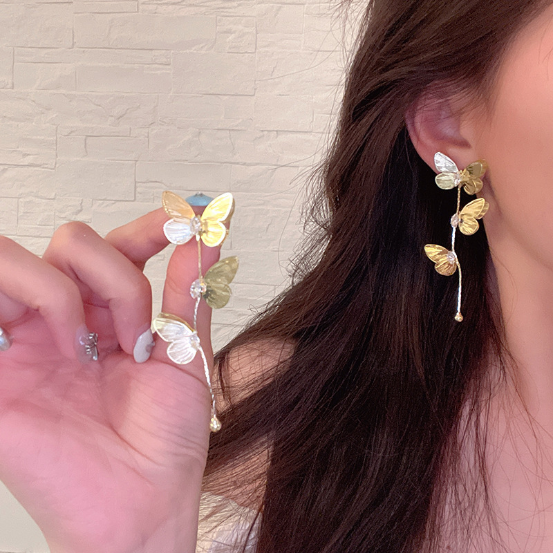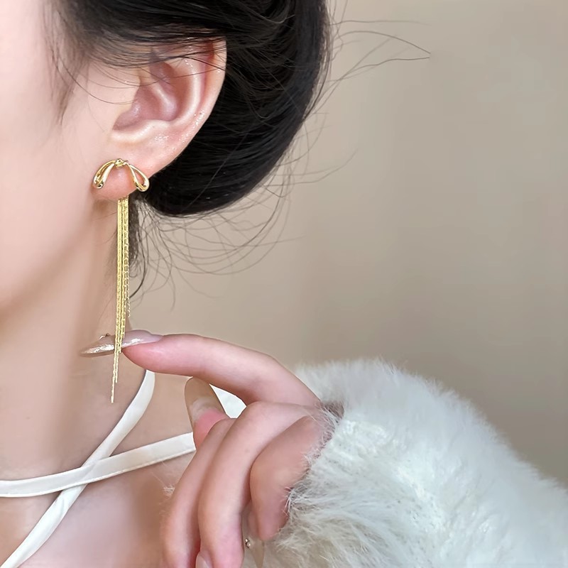 925银针长款流苏锆石耳环女ins潮轻奢小众百搭气质蝴蝶结耳钉耳饰
