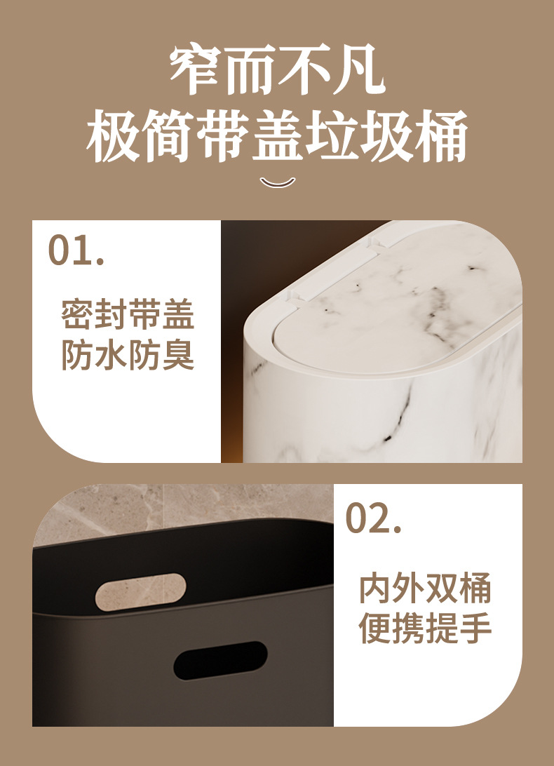 夹缝垃圾桶2025新款厨房客厅弹盖大容量厕所专用桶窄缝带盖卫生桶
