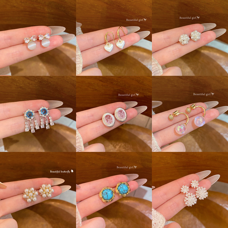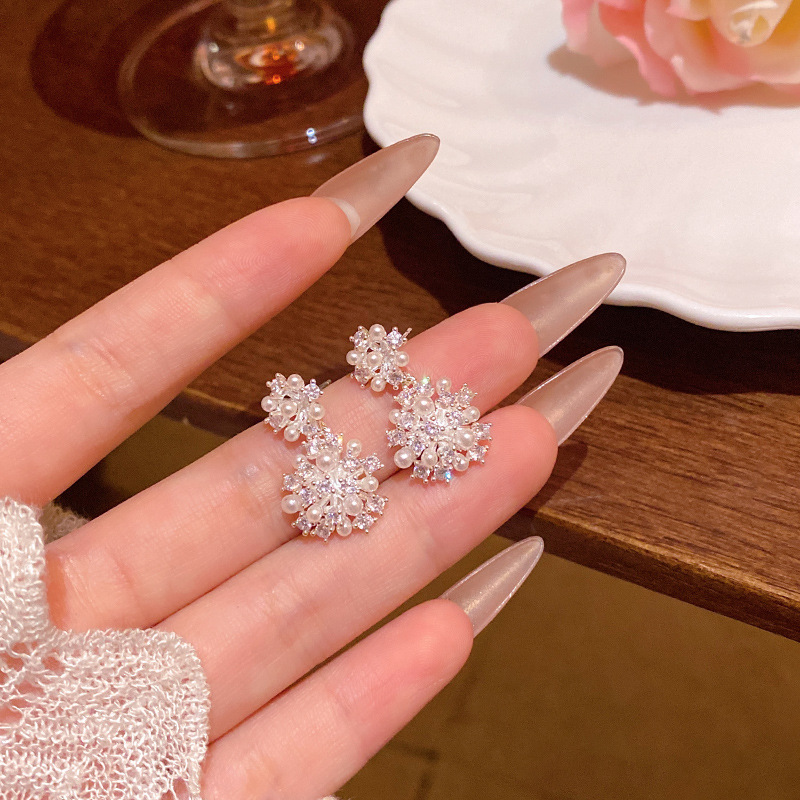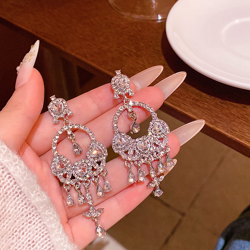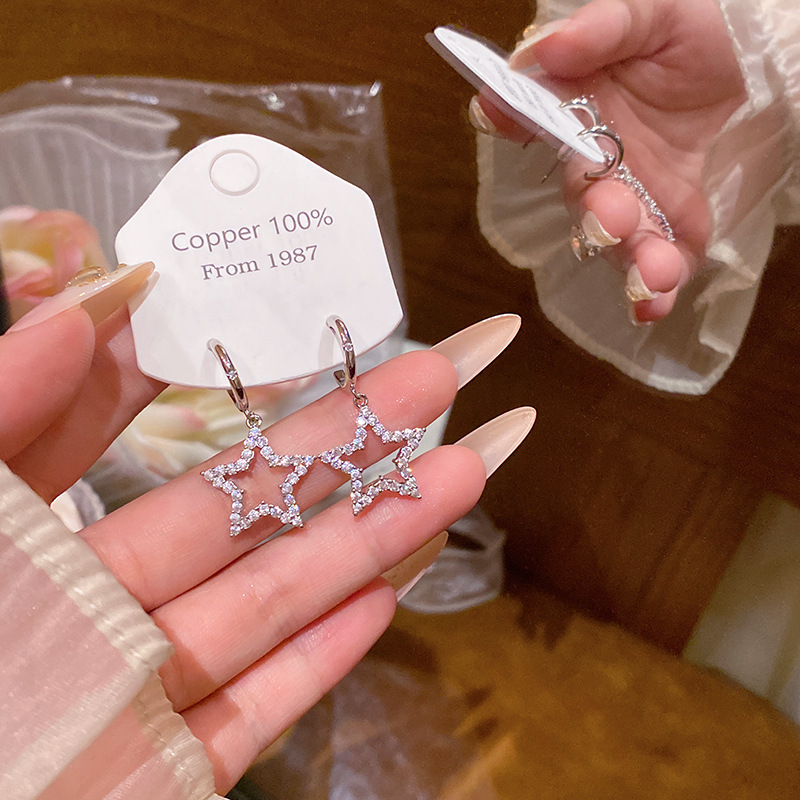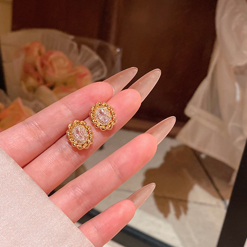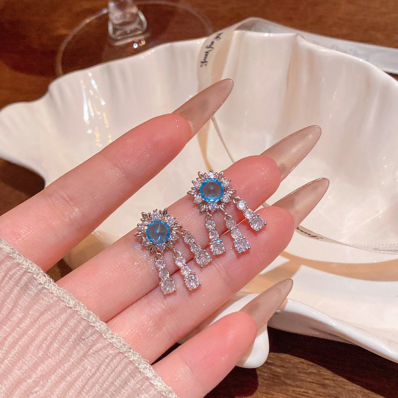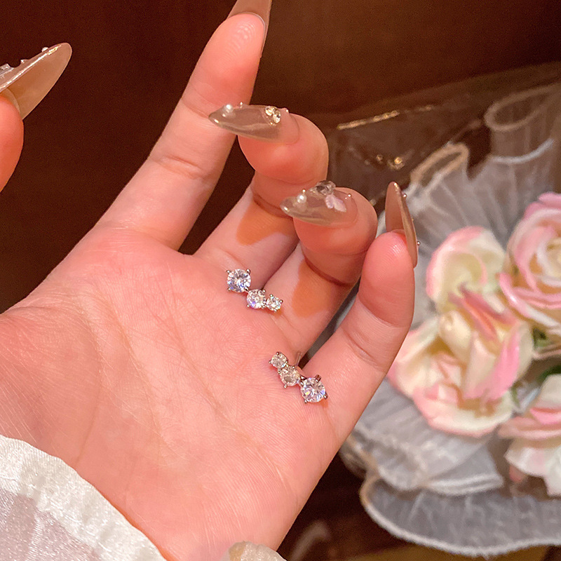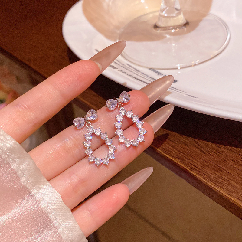 S925银针重工款精致微镶锆石耳环女轻奢小众高级感耳钉网红耳饰品
