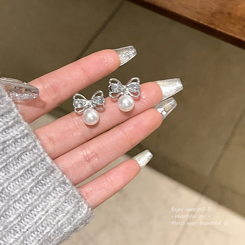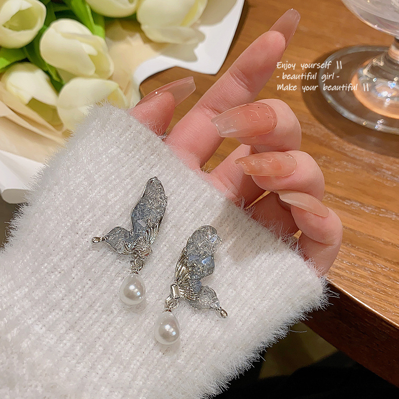 S925银针轻奢小众珍珠耳环女百搭气质猫眼石耳钉高级设计感耳饰品