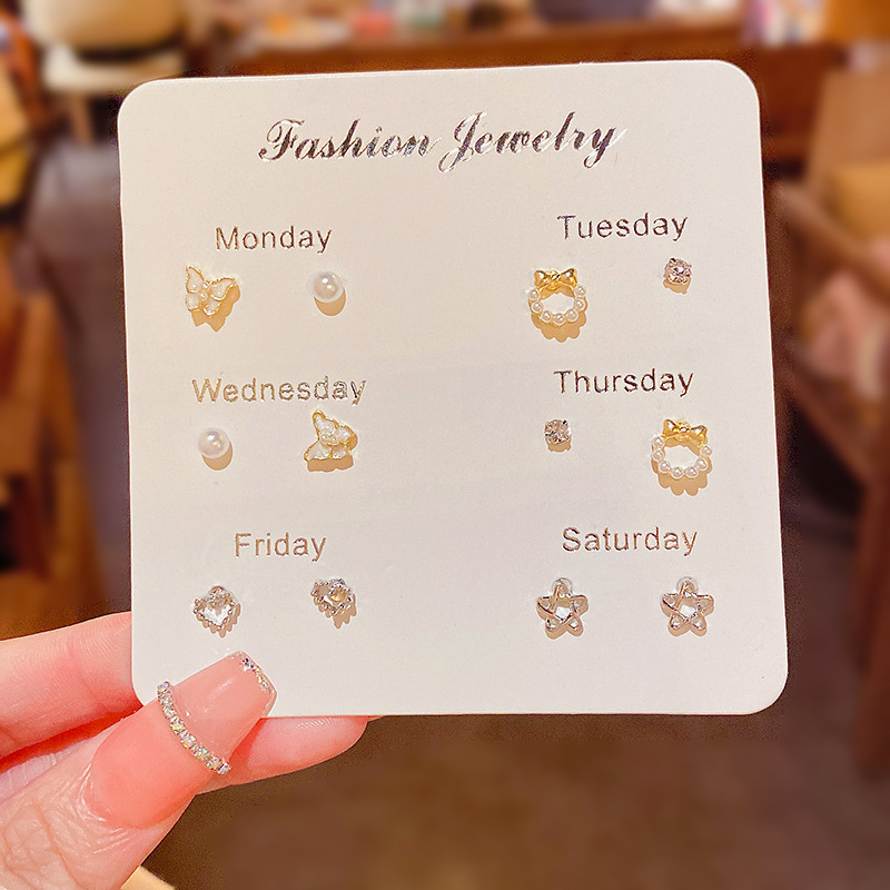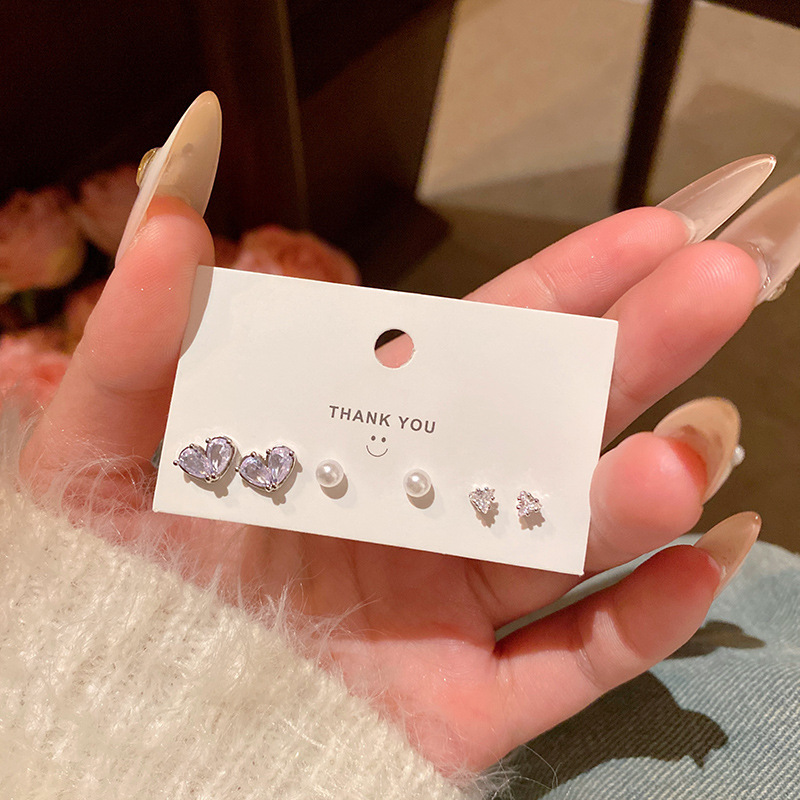S925银针小众简约养耳套装猫眼石耳钉韩国百搭气质珍珠耳环耳饰品