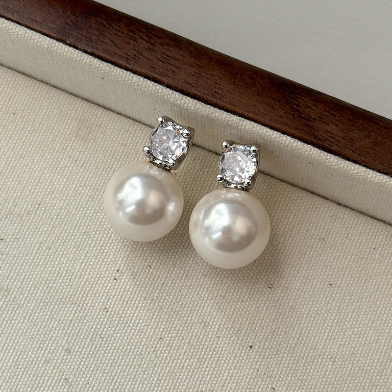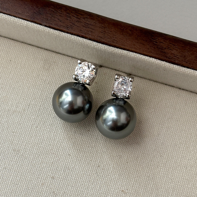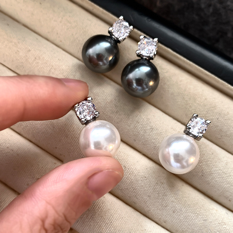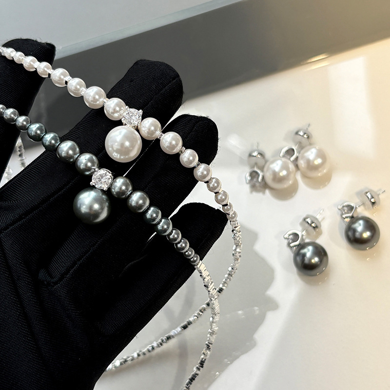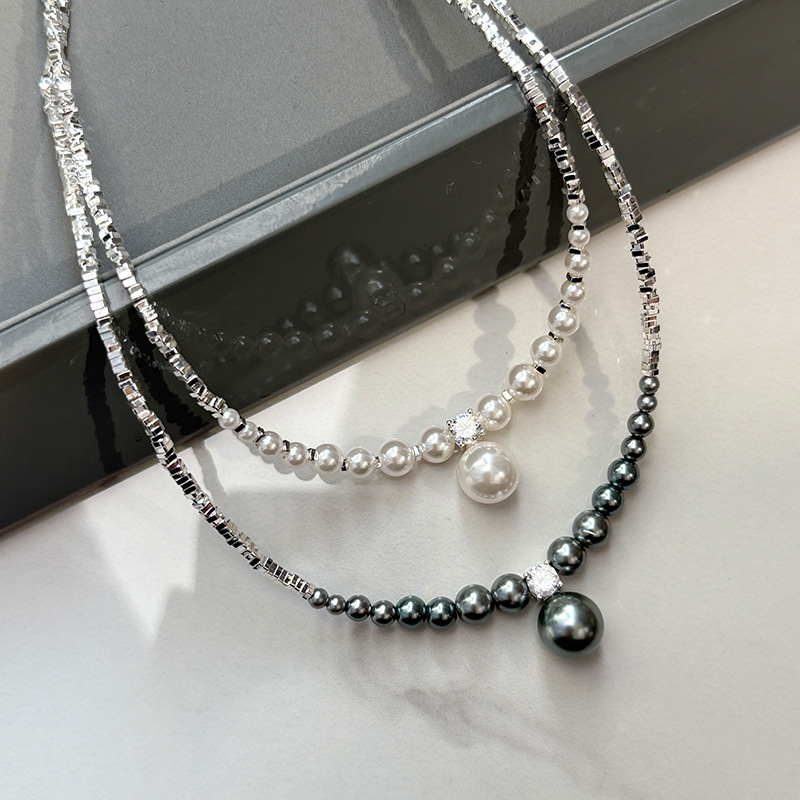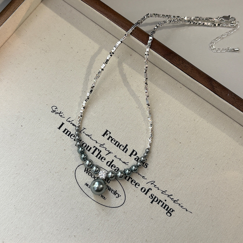 925纯银针玻璃极光真多麻珍珠耳钉轻奢小众高级感珍珠项链女颈链