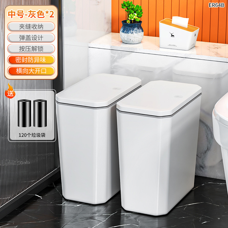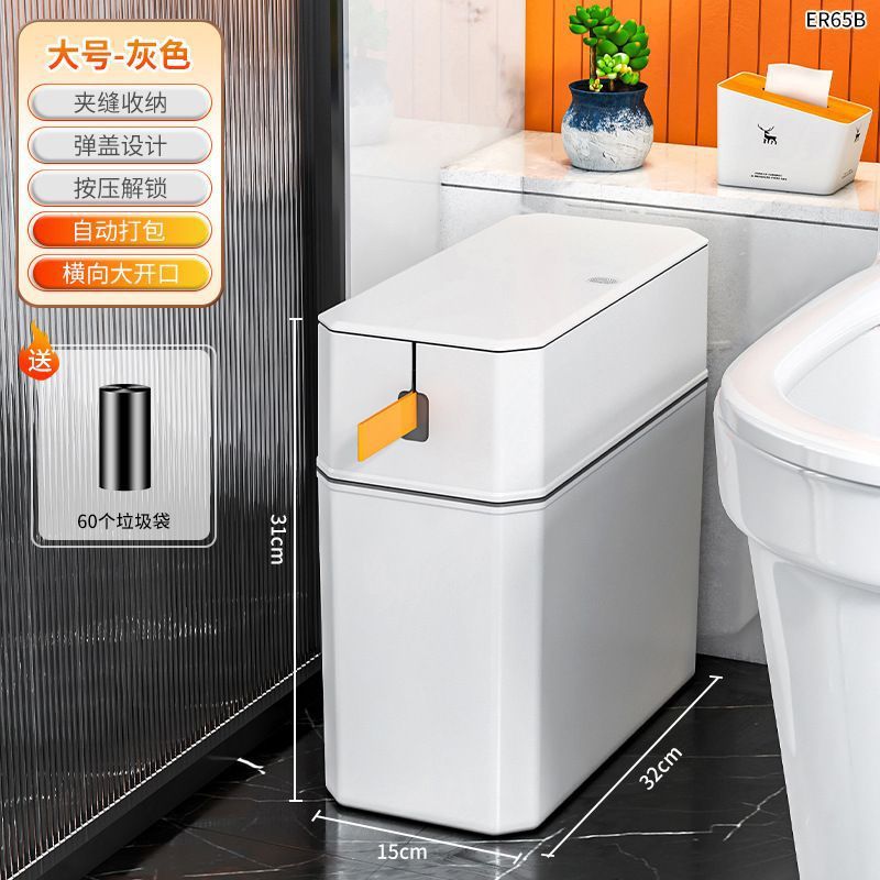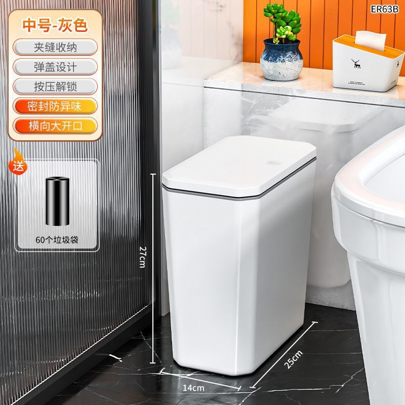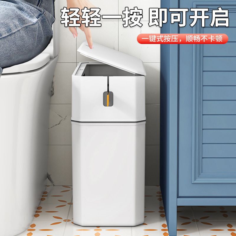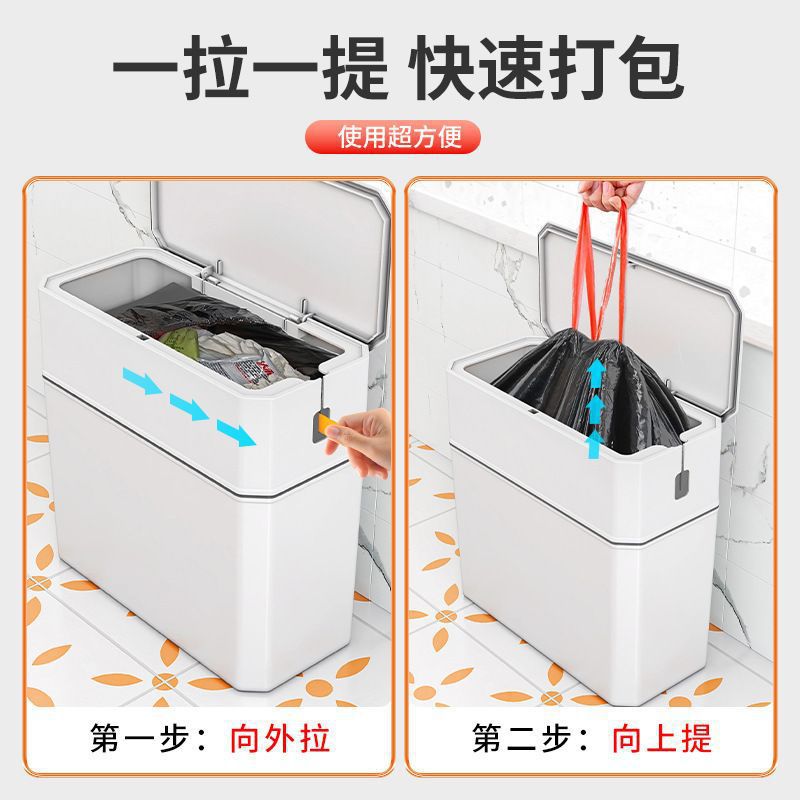 ins风家用抽绳自动打包垃圾桶压圈按压弹盖高颜值卫生间夹缝带盖