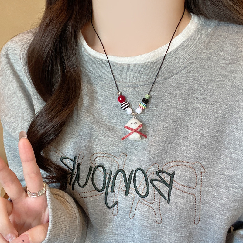 复古波西米亚风陶瓷项链中古异域民族风长款毛衣链禅意锁骨链颈链