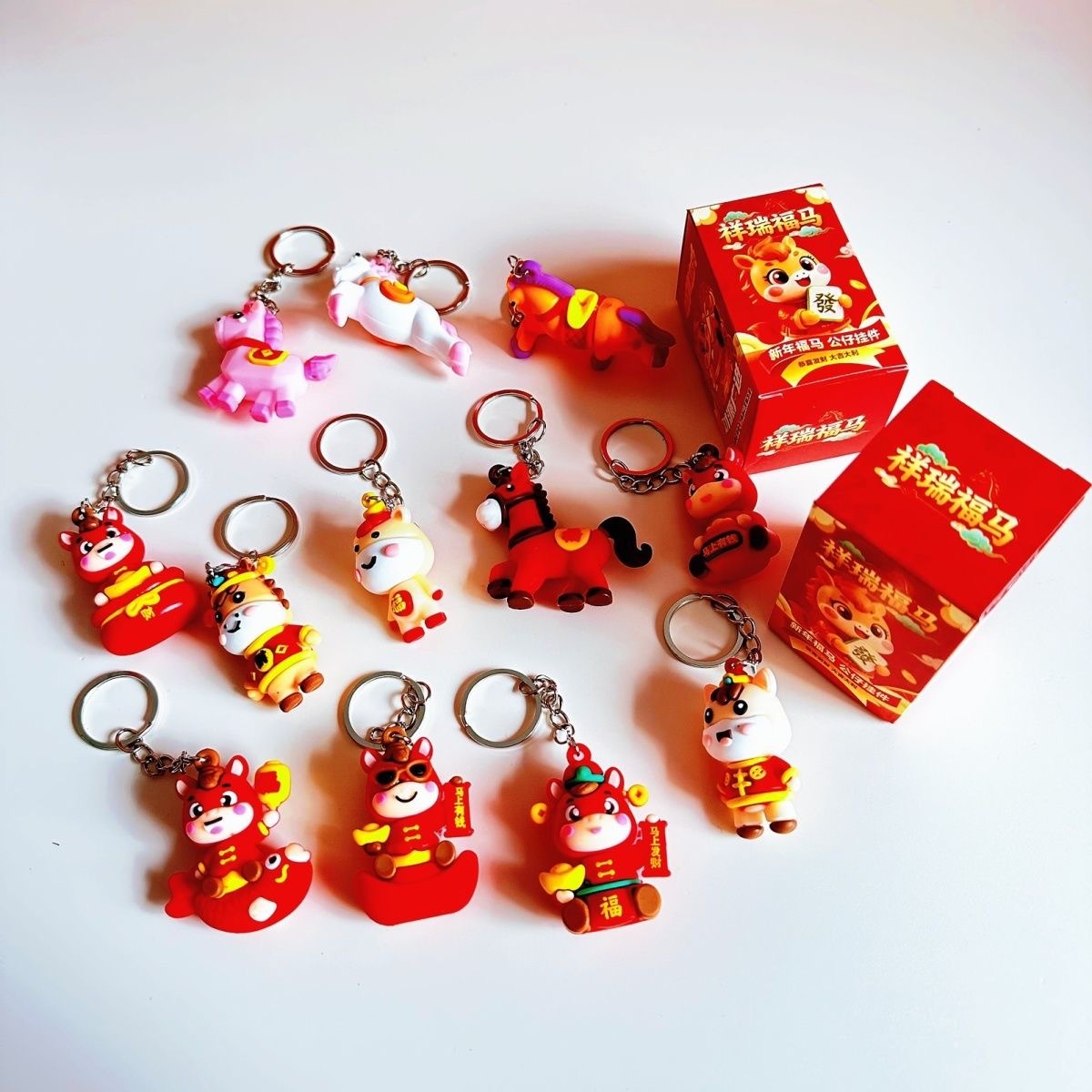 新款2026年马年祥瑞福马公仔挂件盲盒硅胶钥匙扣儿童新年礼物批发