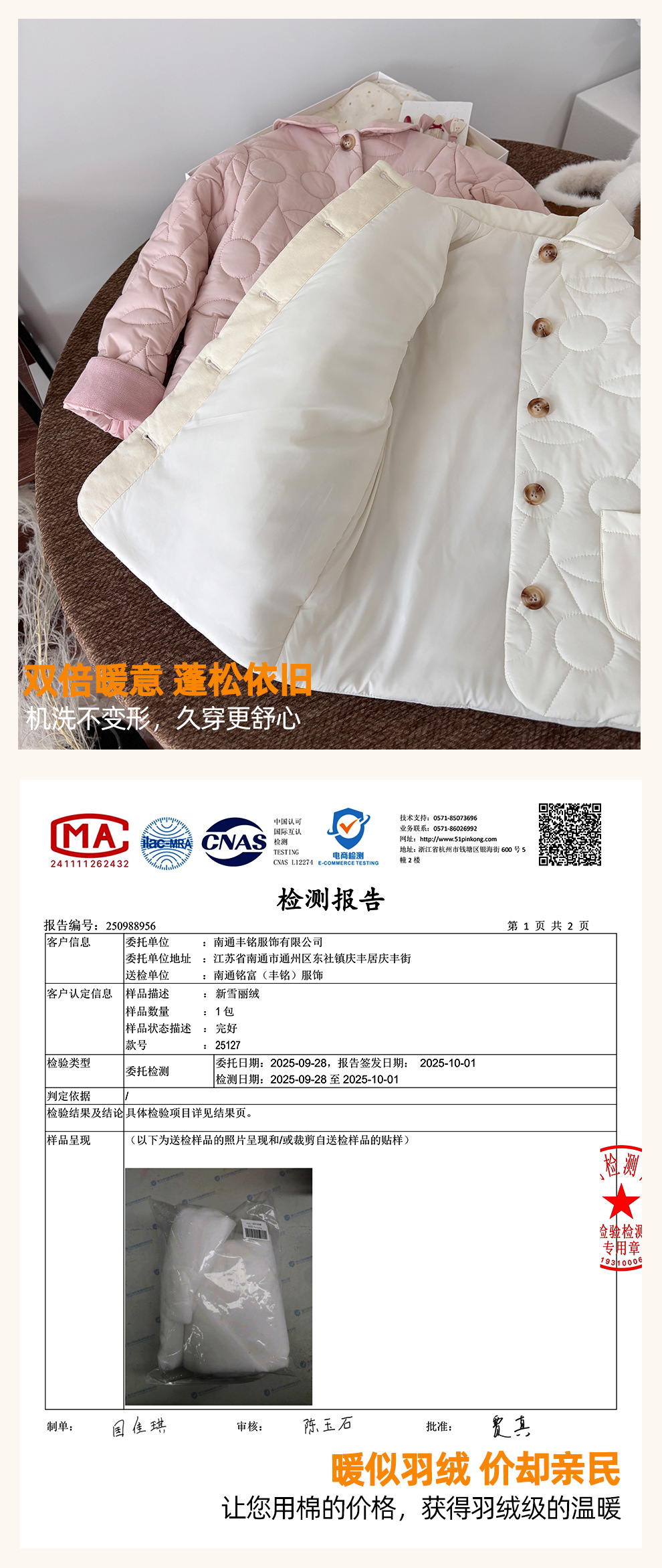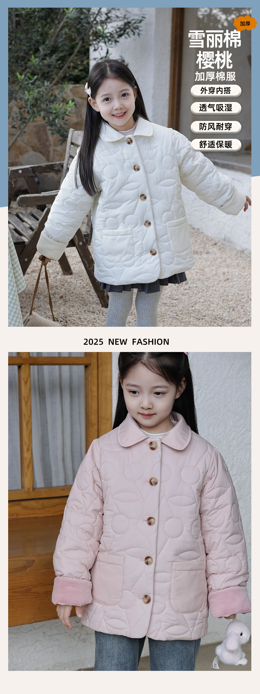 25秋款女童亲子加厚雪丽棉樱桃棉服欧美保暖柔软抗皱防风外穿棉衣