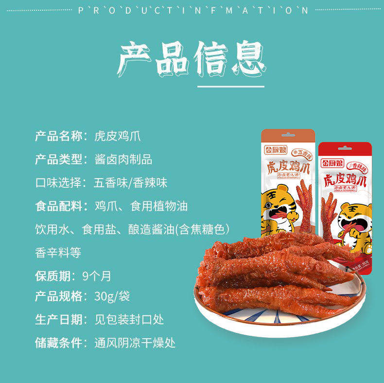 金厨娘虎皮鸡爪30g香辣五香味休闲卤味小零食凤爪零食
