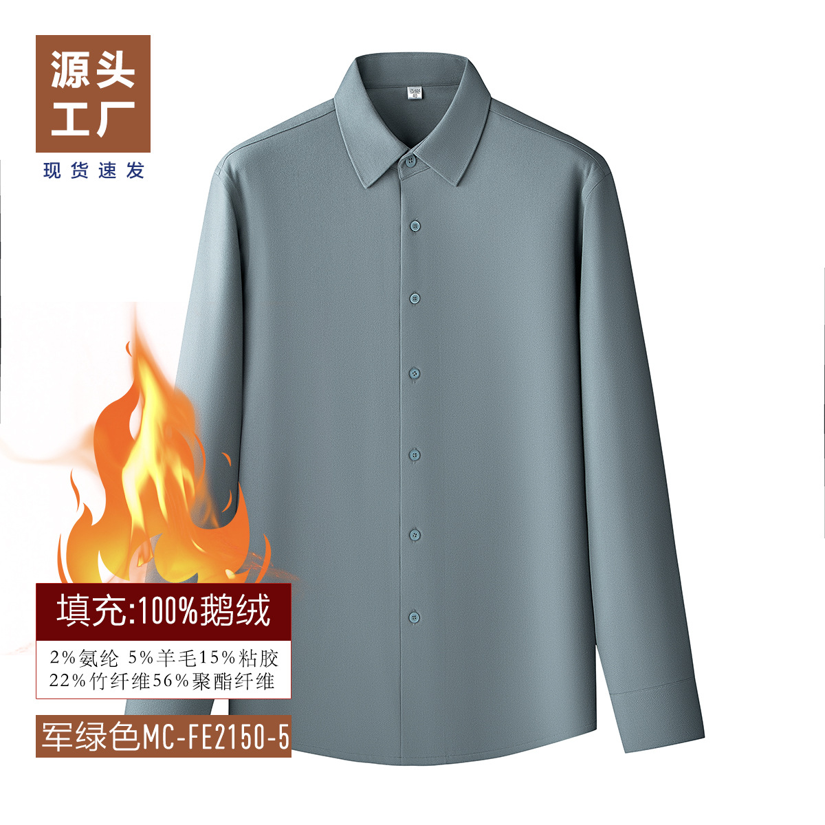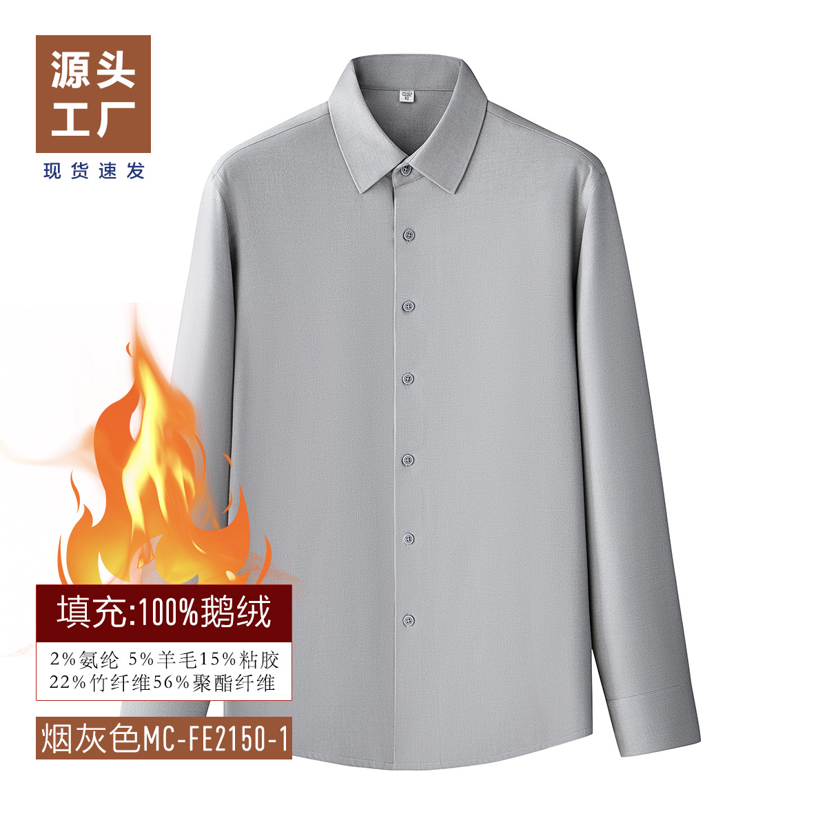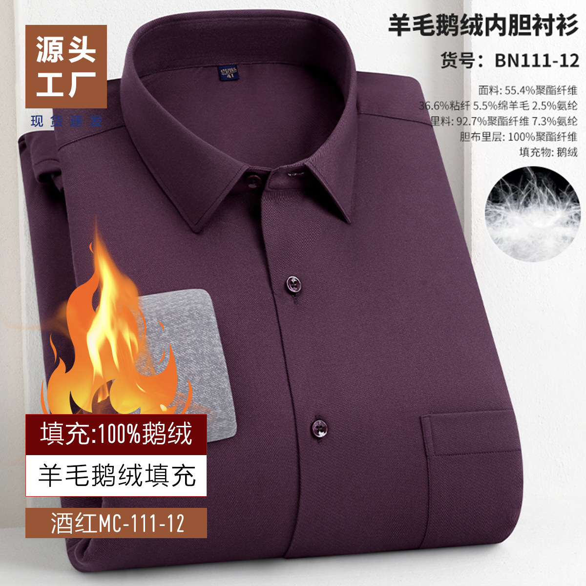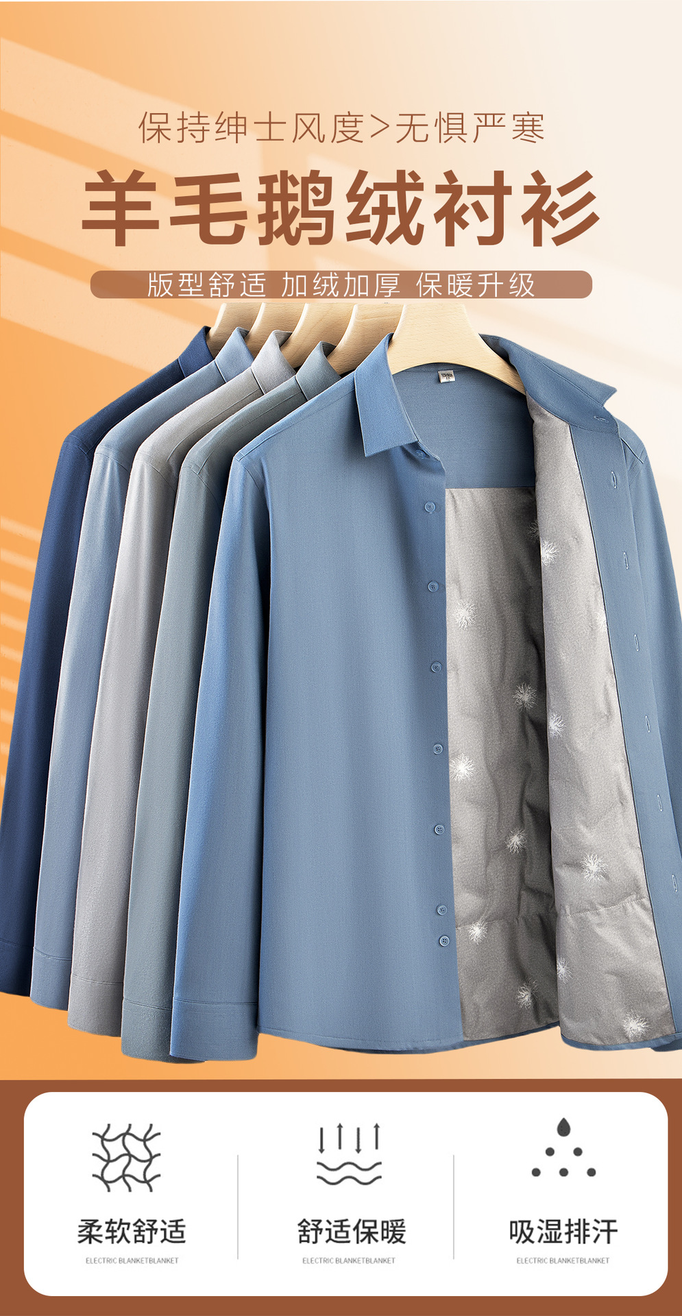 冬季加绒加厚男士衬衫男商务休闲保暖抗皱填充鹅绒竹纤维羊毛衬衣
