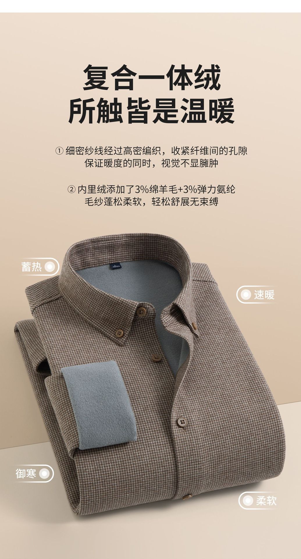【羊毛复合一体绒】冬季加绒加厚衬衫男士长袖休闲商务保暖衬衣男