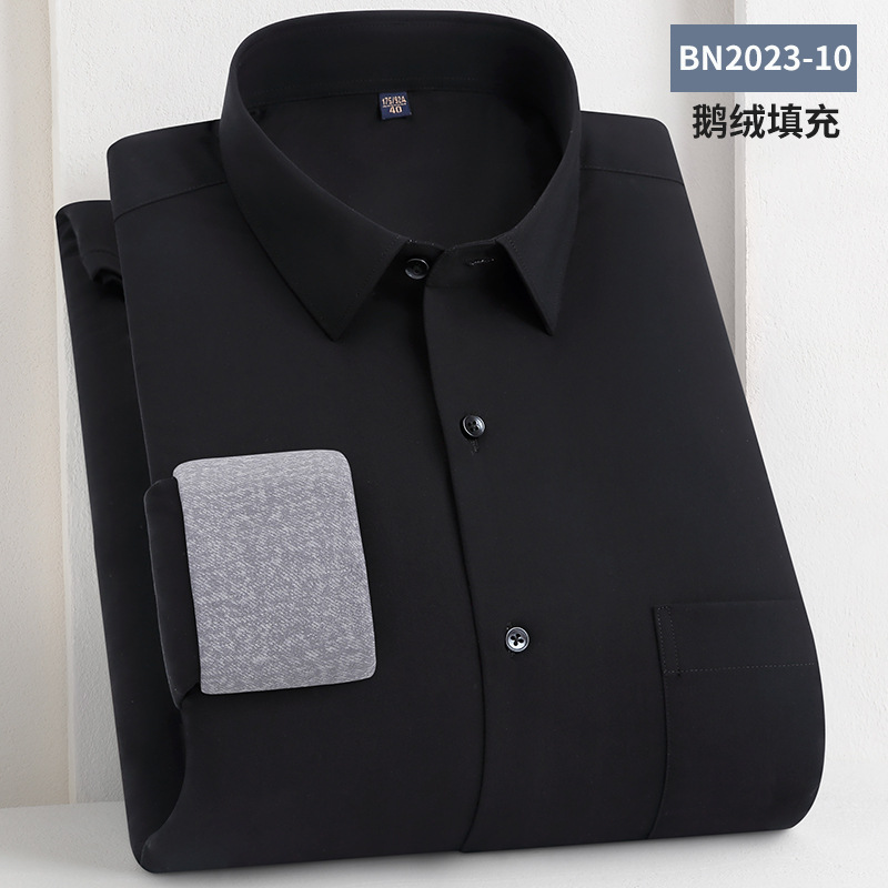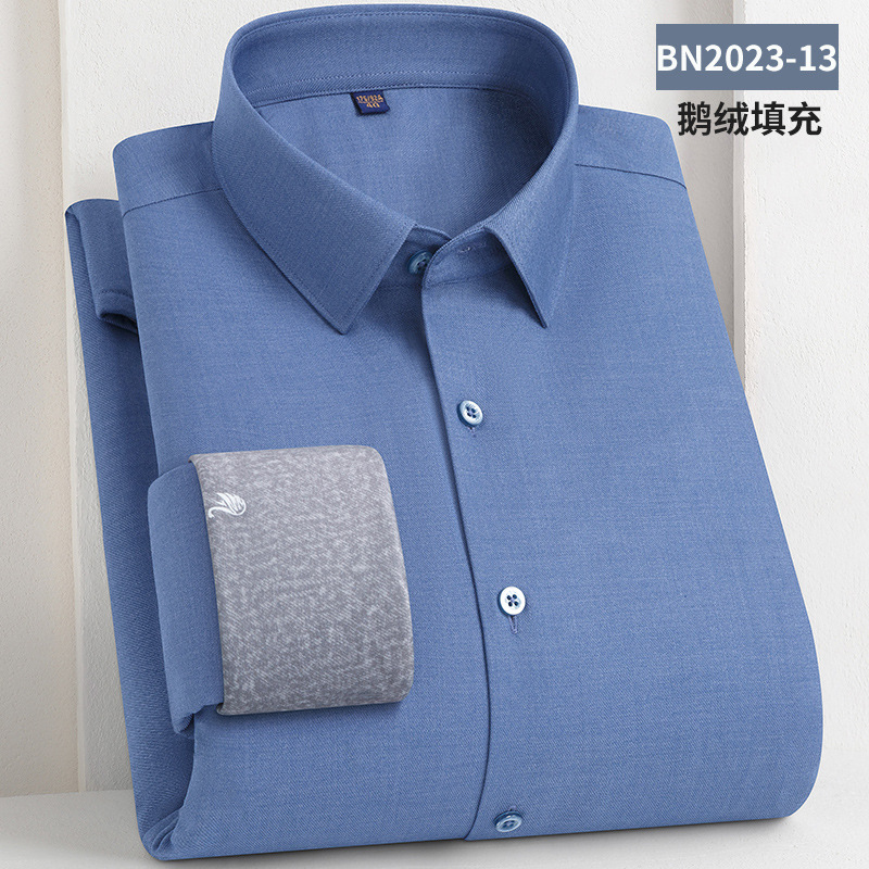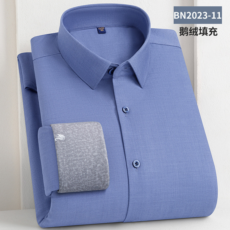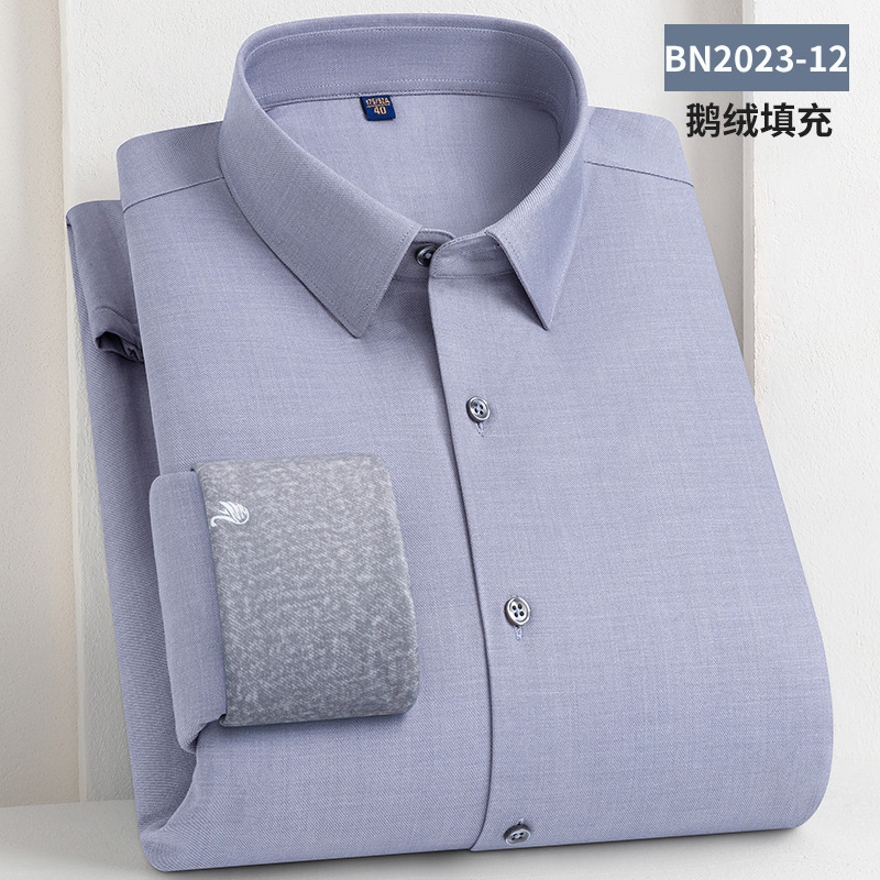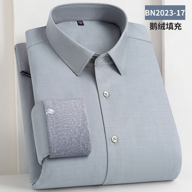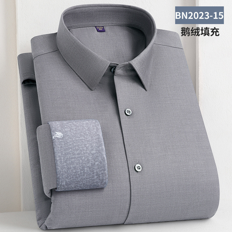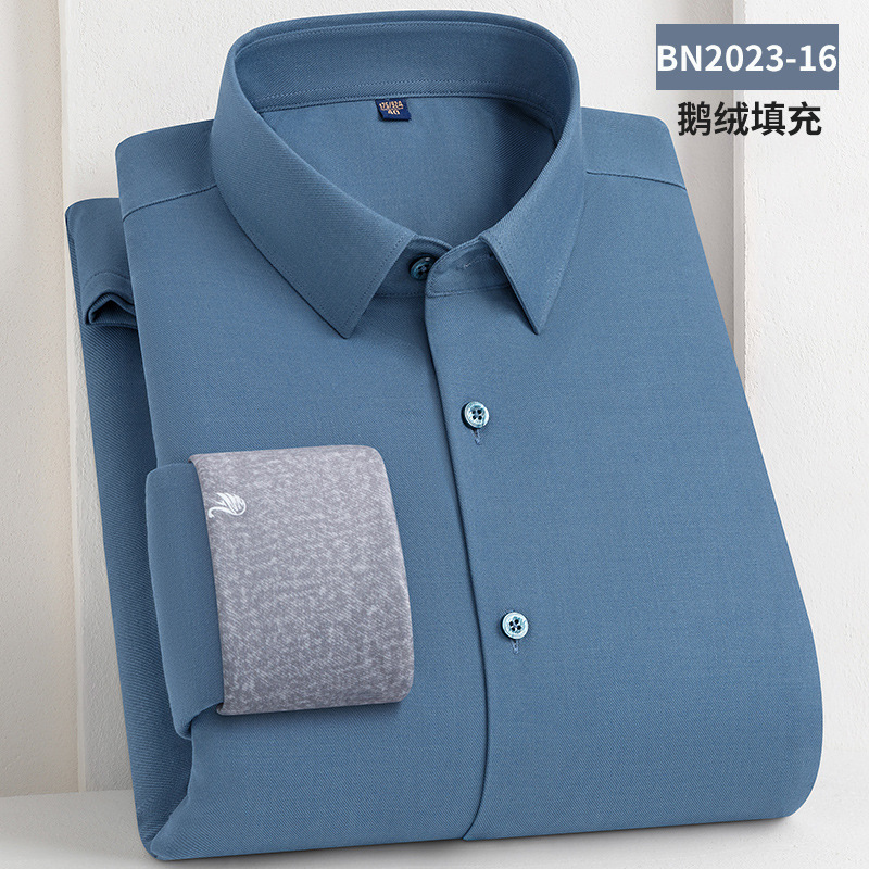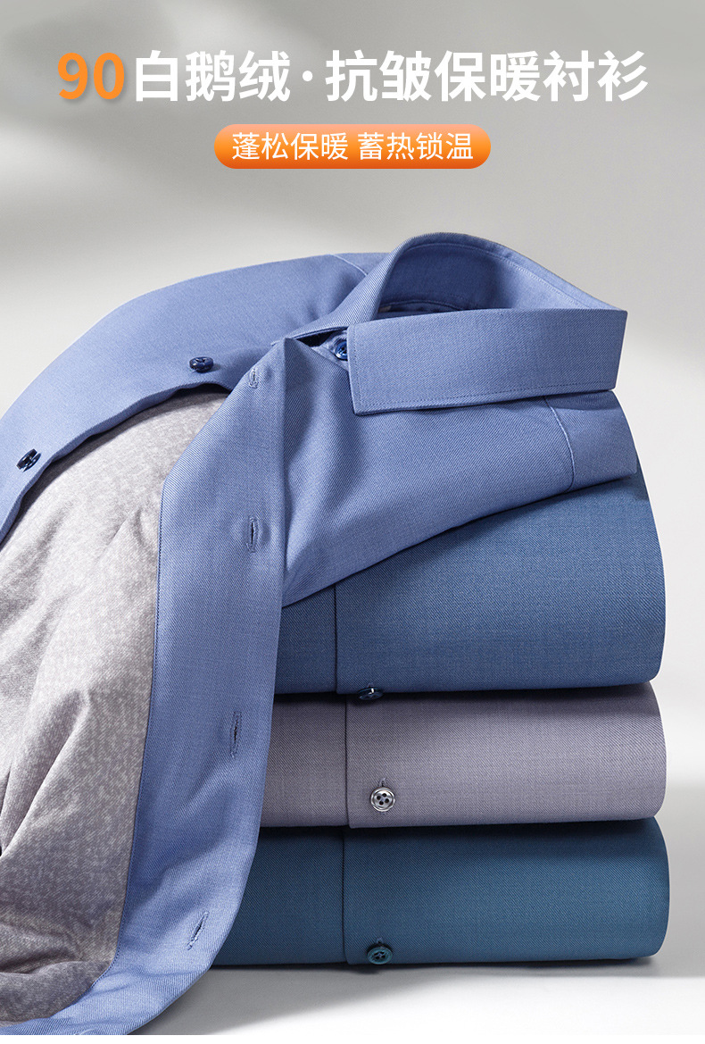 轻奢羽绒保暖衬衫加绒加厚防风冬季商务休闲打底长袖男士鹅绒衬衣