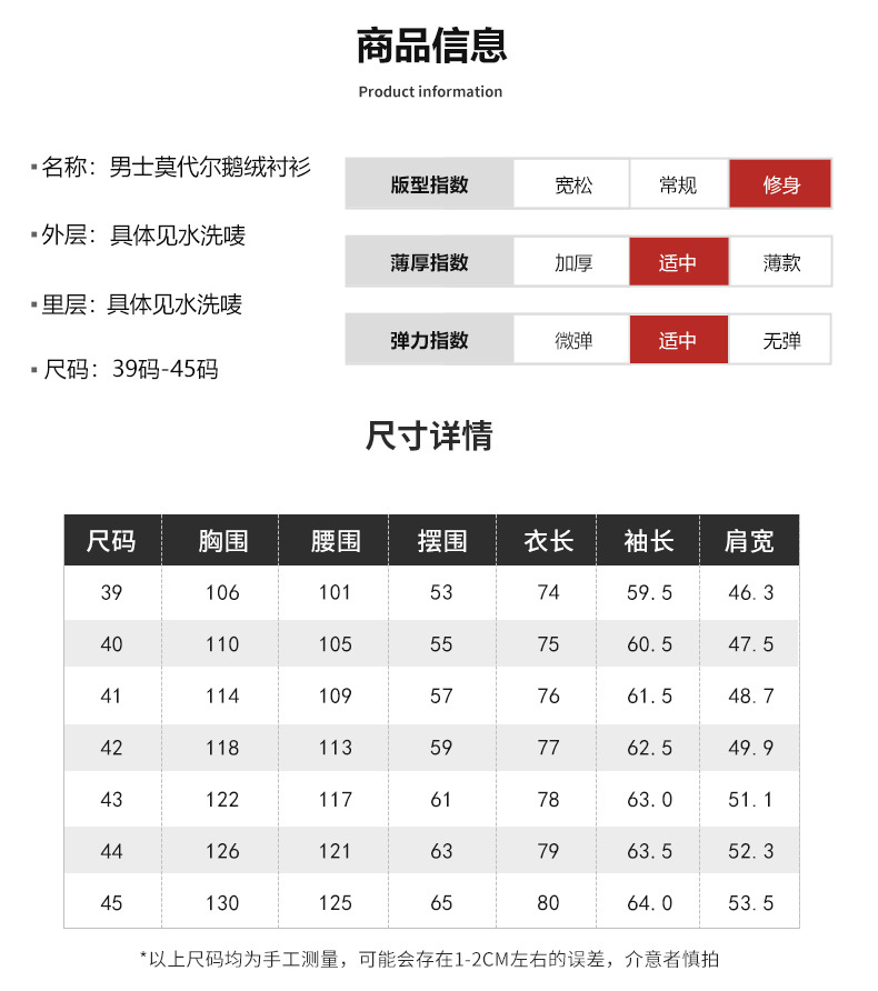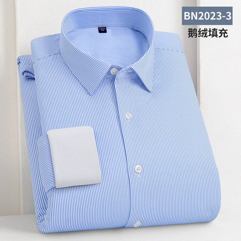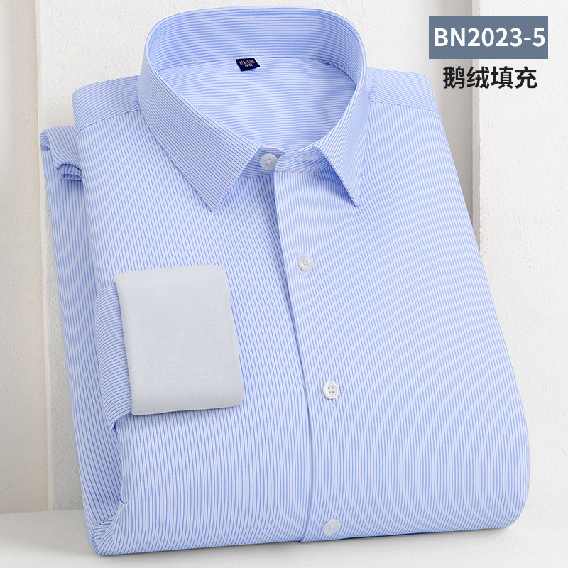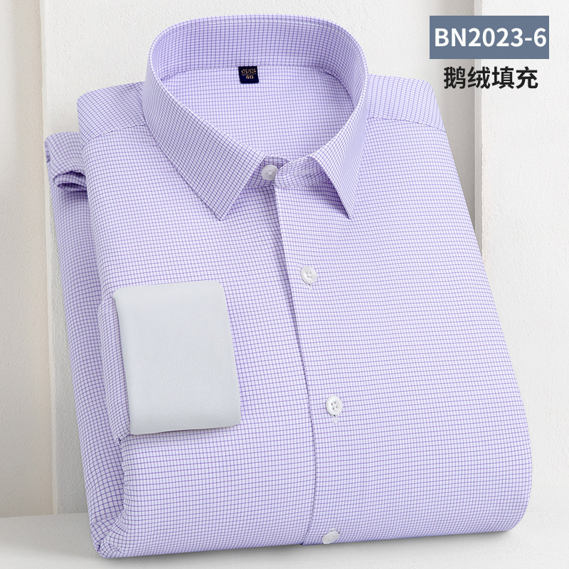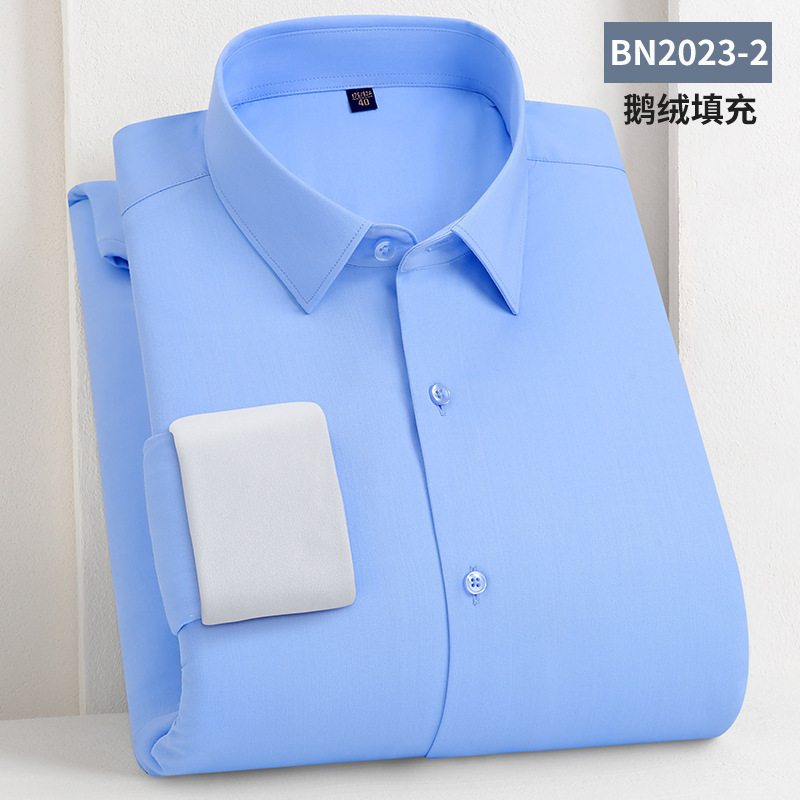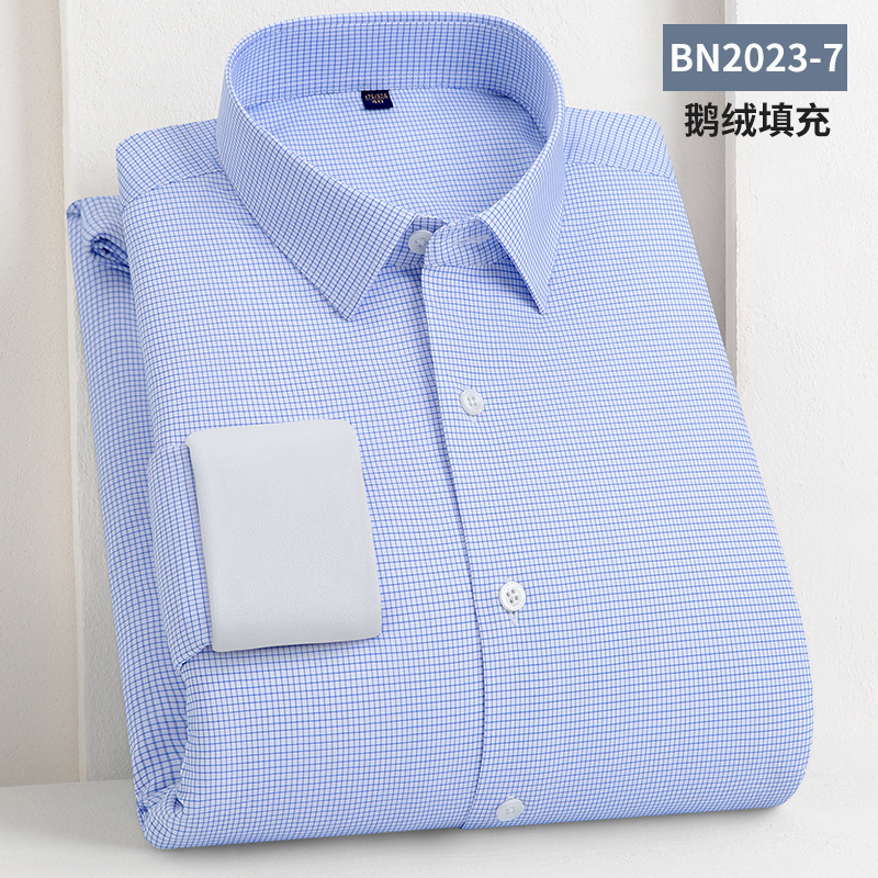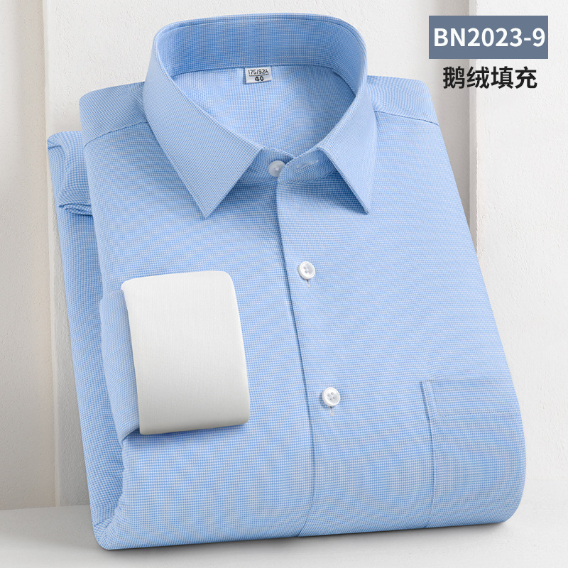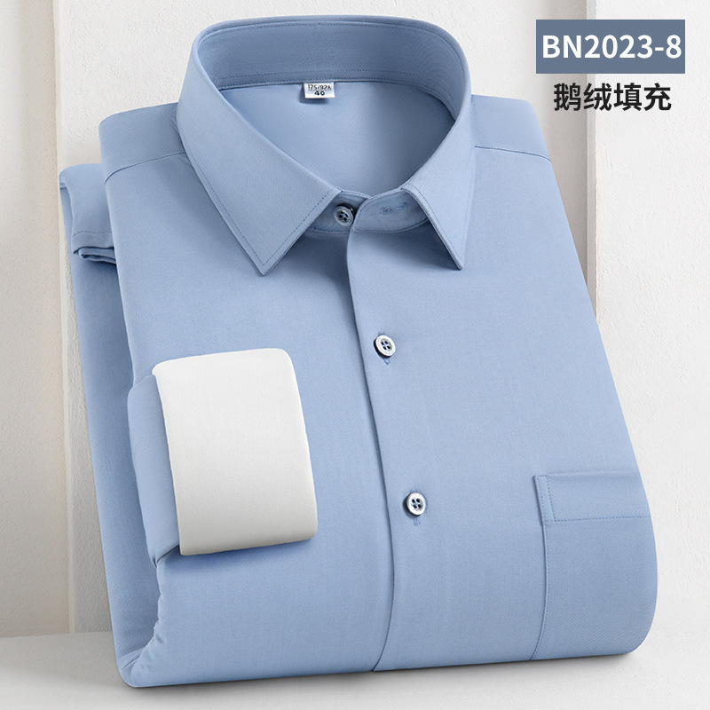 轻奢羽绒保暖衬衫加绒加厚防风冬季商务休闲打底长袖男士鹅绒衬衣