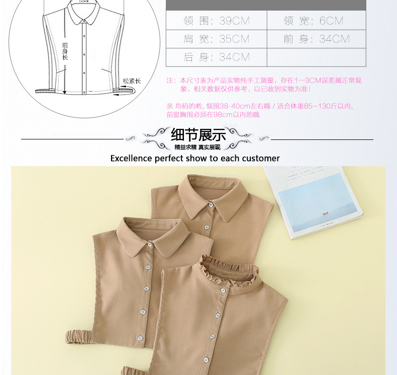 春秋冬季时尚百搭节约领女士尖圆立衬衫衣领棉布多色灯芯绒假领子