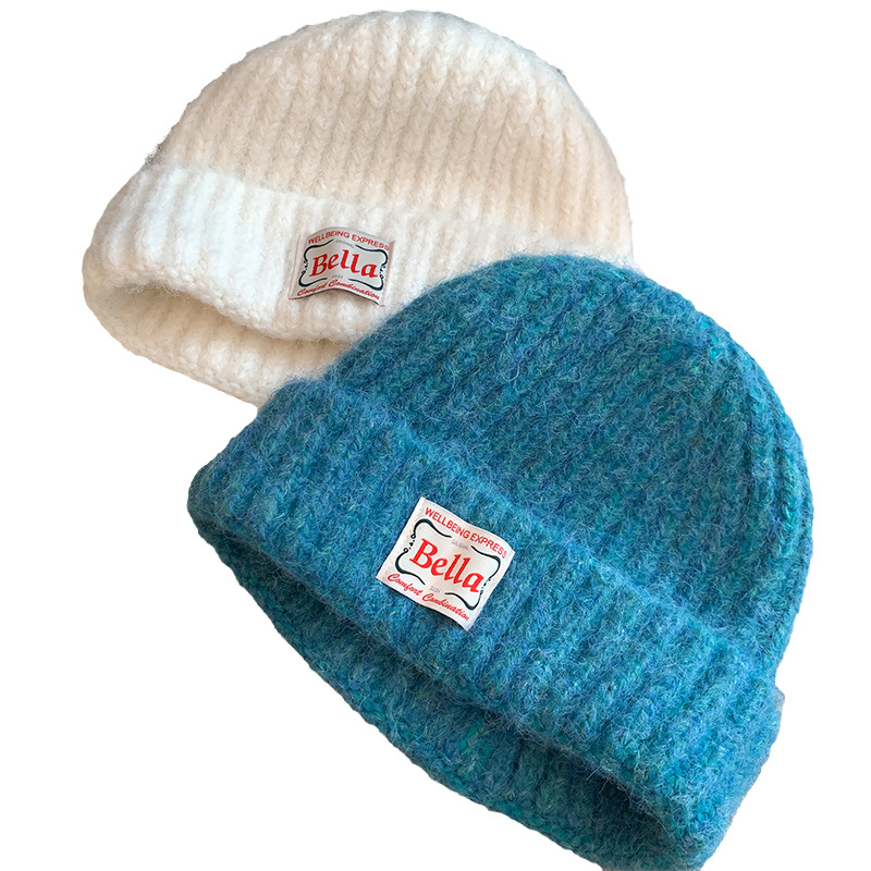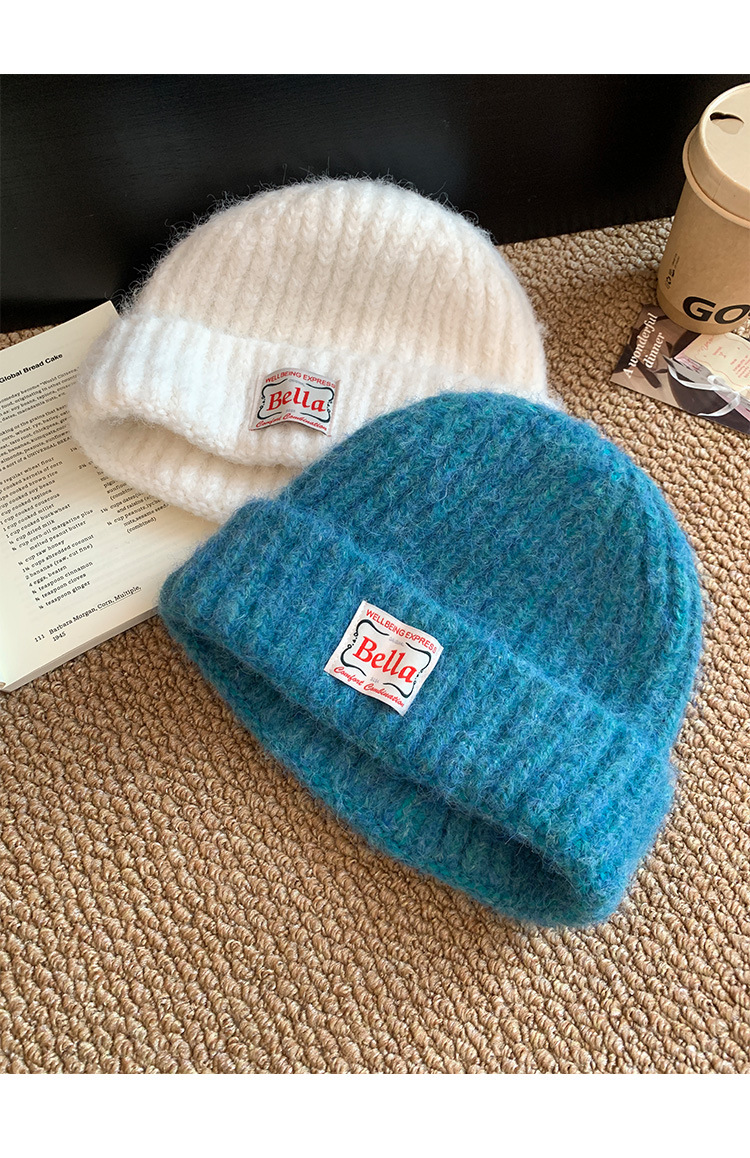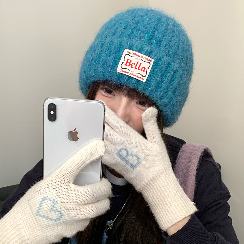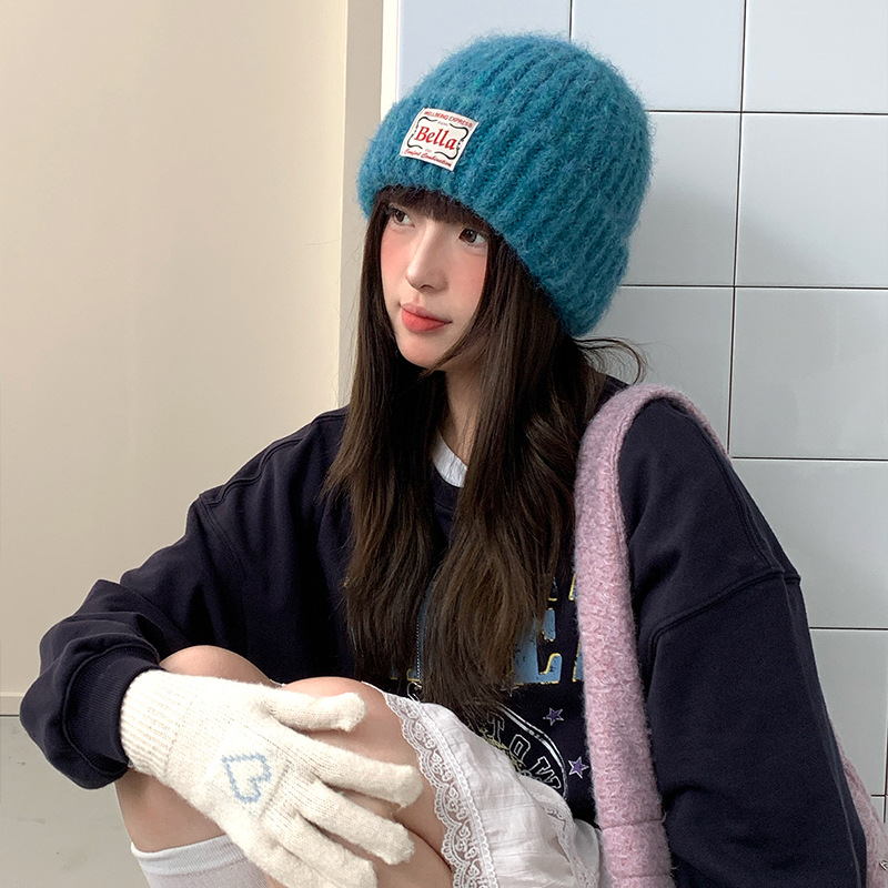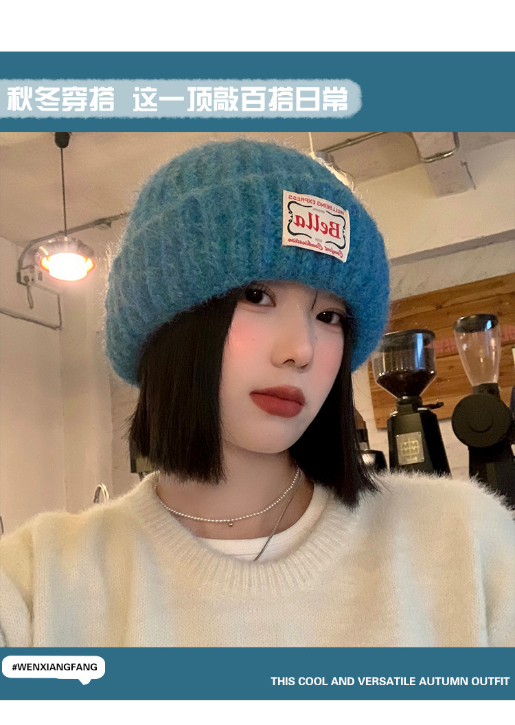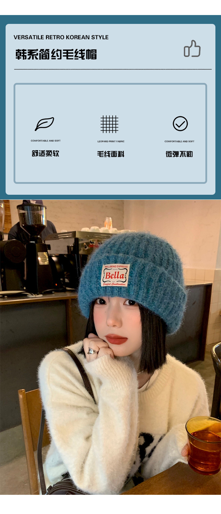 湖蓝色针织毛线帽女2025新款秋冬保暖冷帽大头围防寒加厚护耳帽子