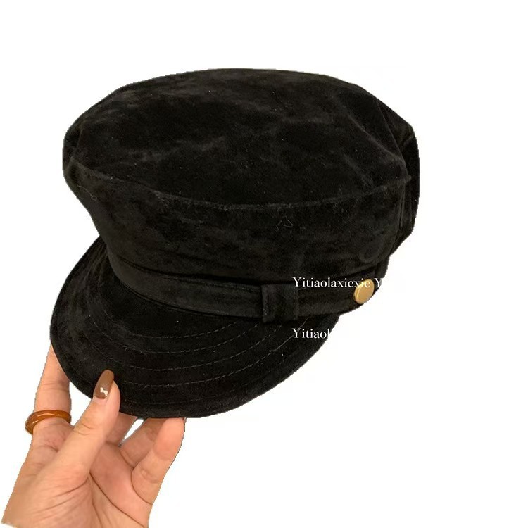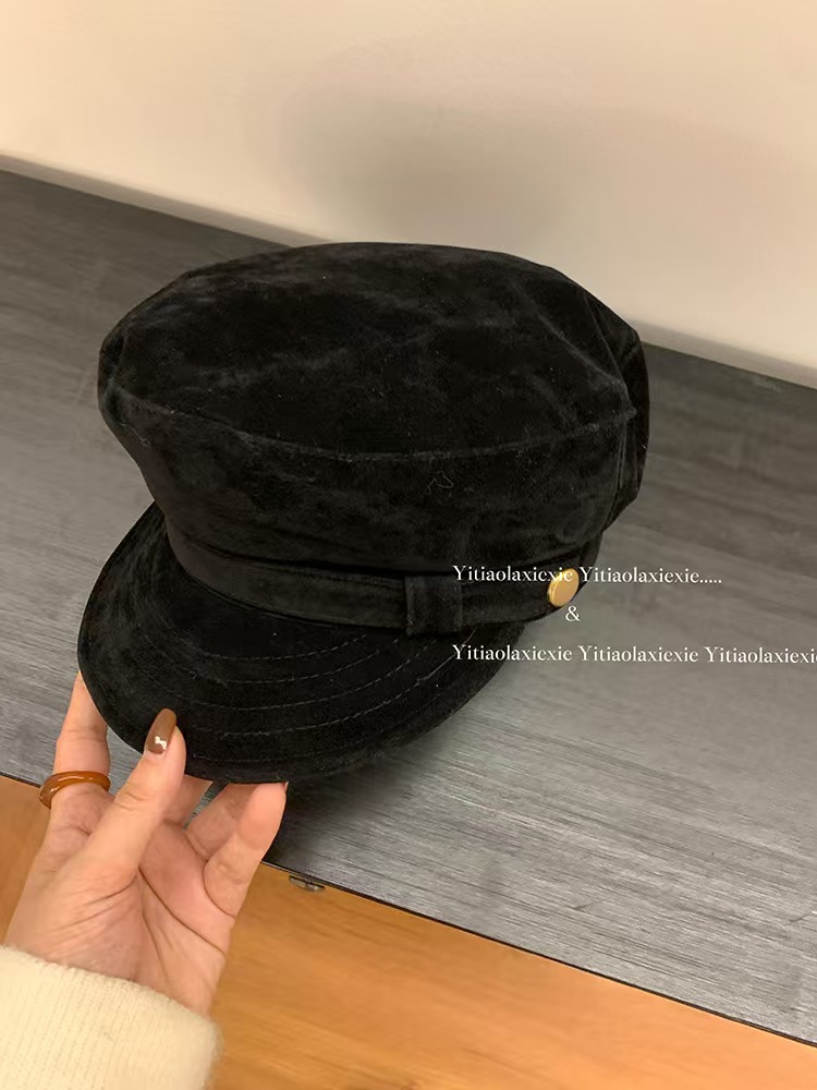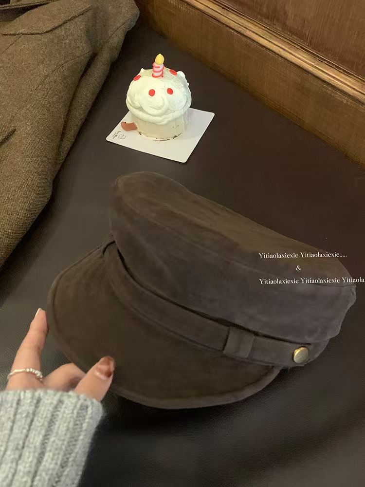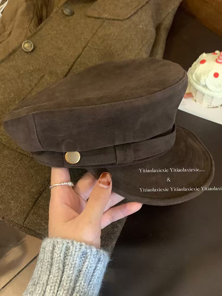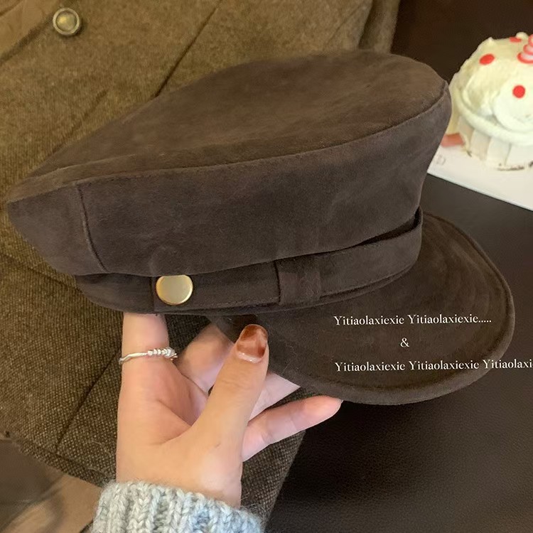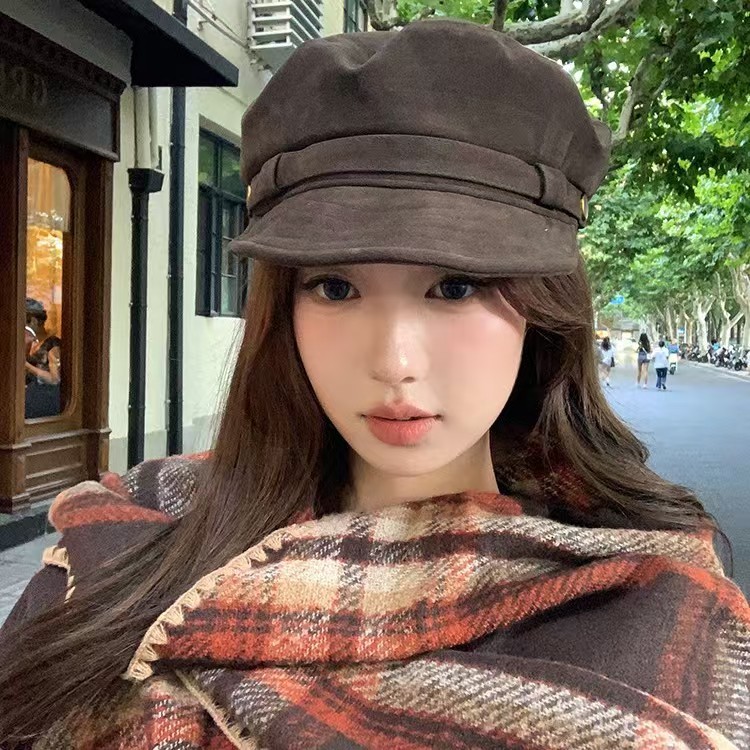 入秋氛围感美拉德~棕色麂皮平顶报童帽女秋冬复古英伦八角贝雷帽